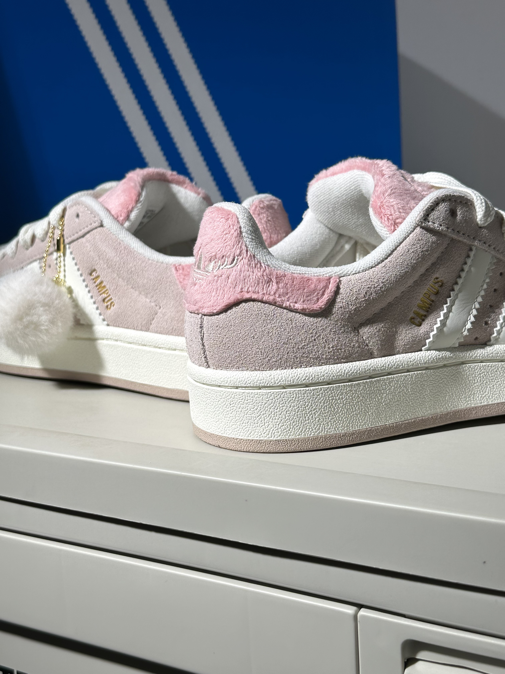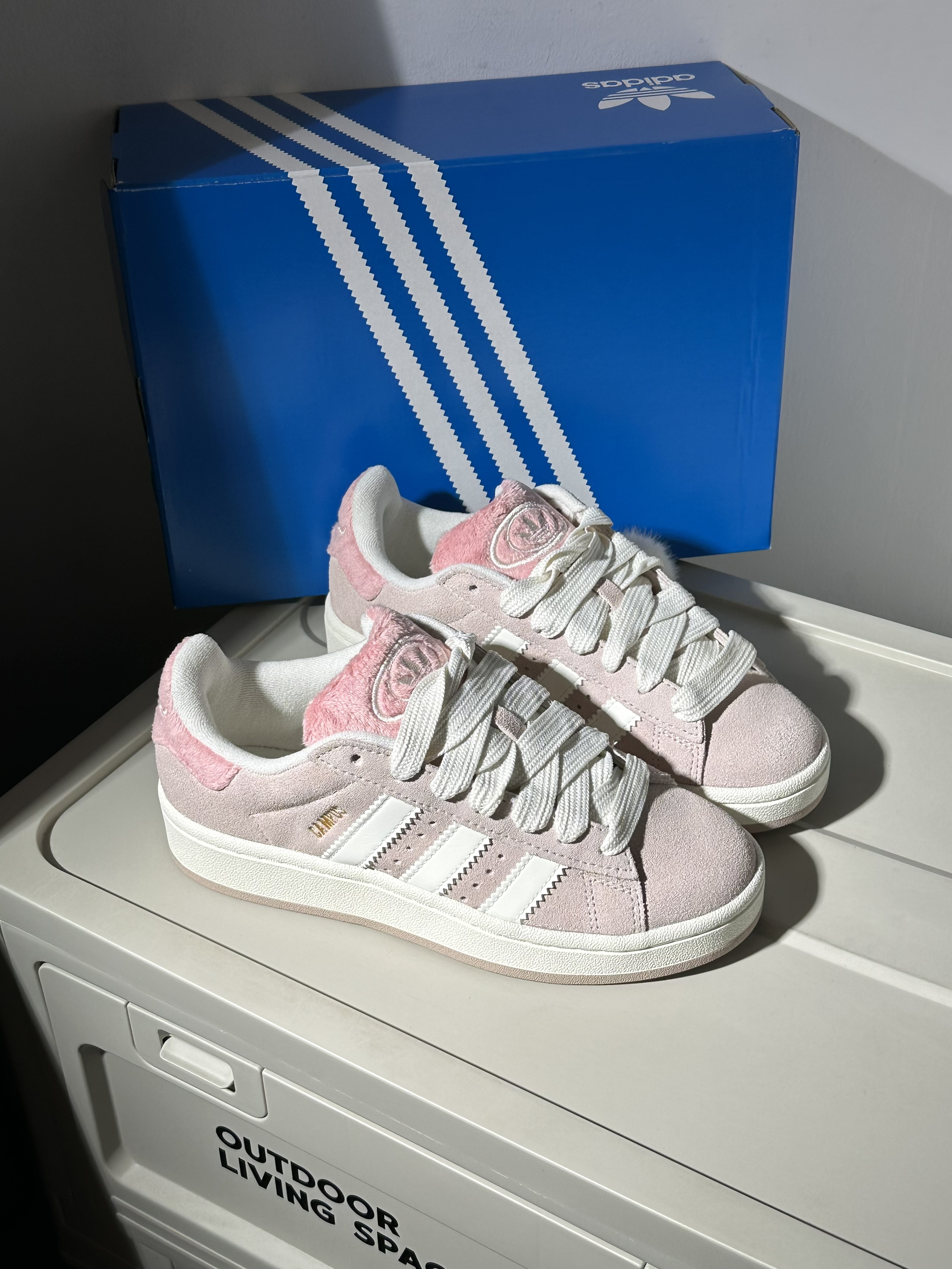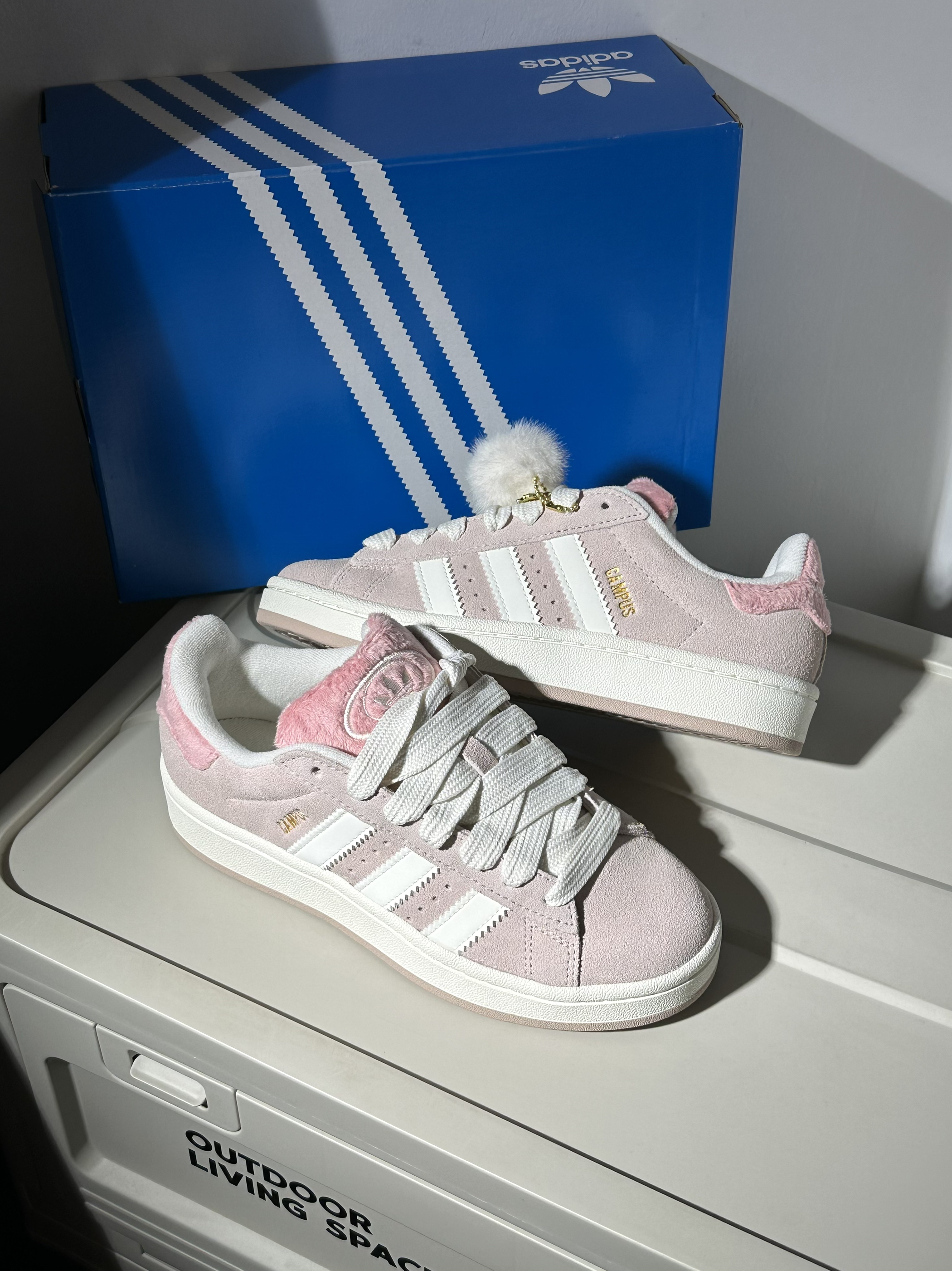 今天跟大家分享一下最近发现的宝藏小板鞋,一起看看鞋子的细节如何吧~🍒 − 🏠配色:最近入手了这双粉白配色的Campus 00s✨,鞋子用到带灰调的淡粉色和米白色为主,再在鞋舌以及后跟部分点缀有樱花粉🌸,整双鞋少女感十足~💗,而且这次后跟部分有独特的鹿角设计,还附送有一个白色小毛球🤍,很多这样有元气感的小细节设计~🧉,并且鞋子整体用到低饱和度色调为主,所以搭配起来也很简单,可以搭出很元气温柔的感觉~...