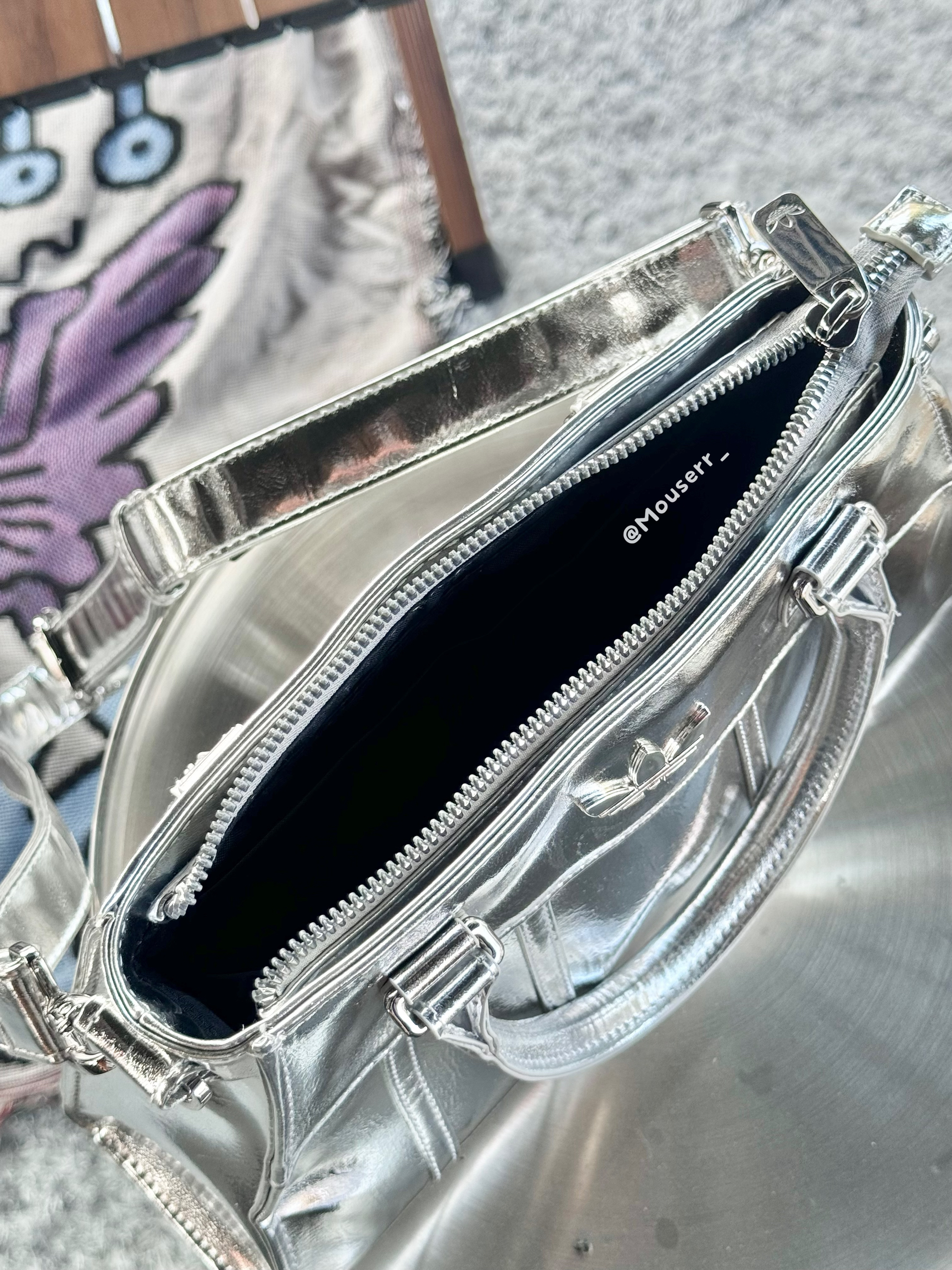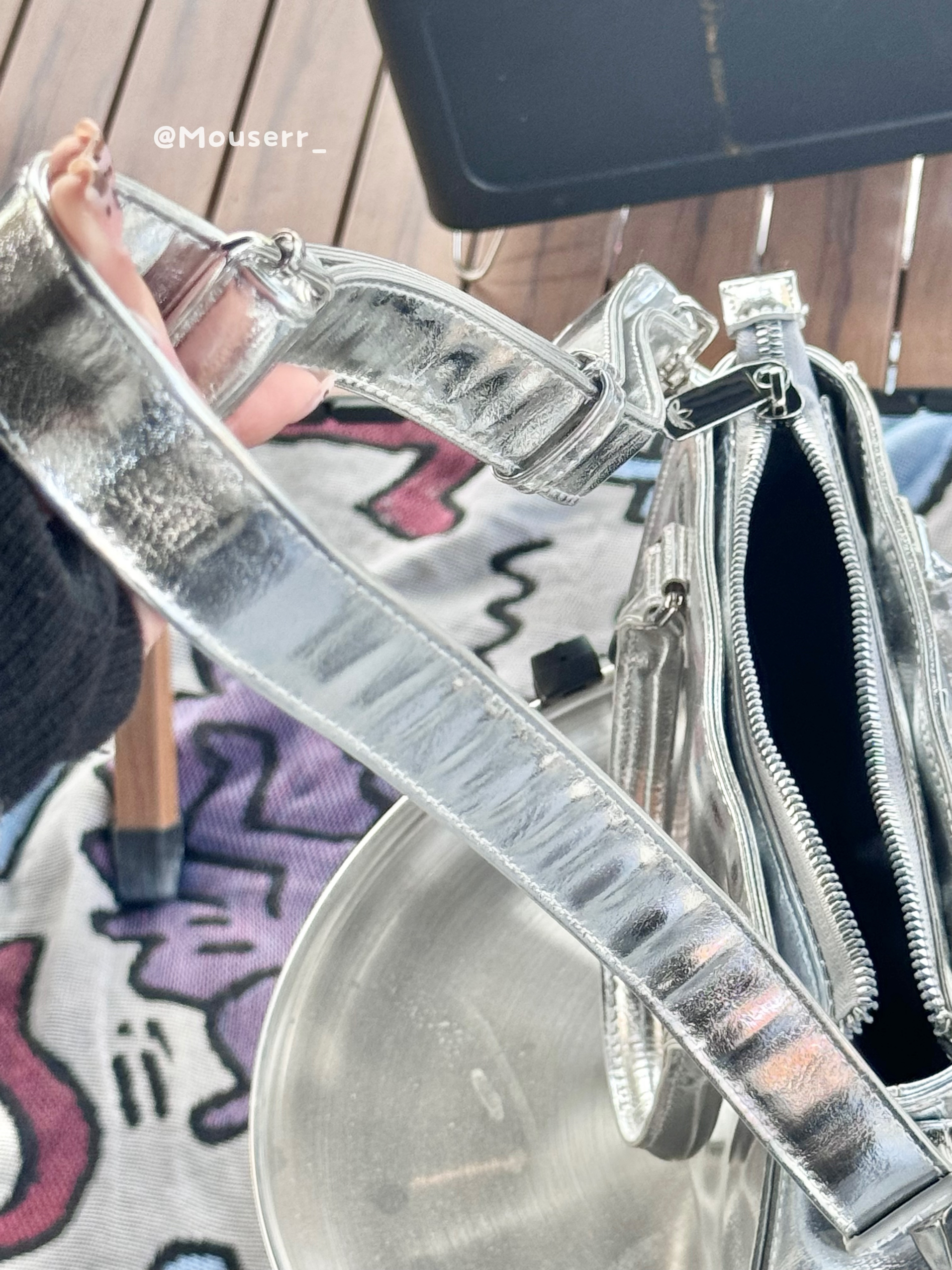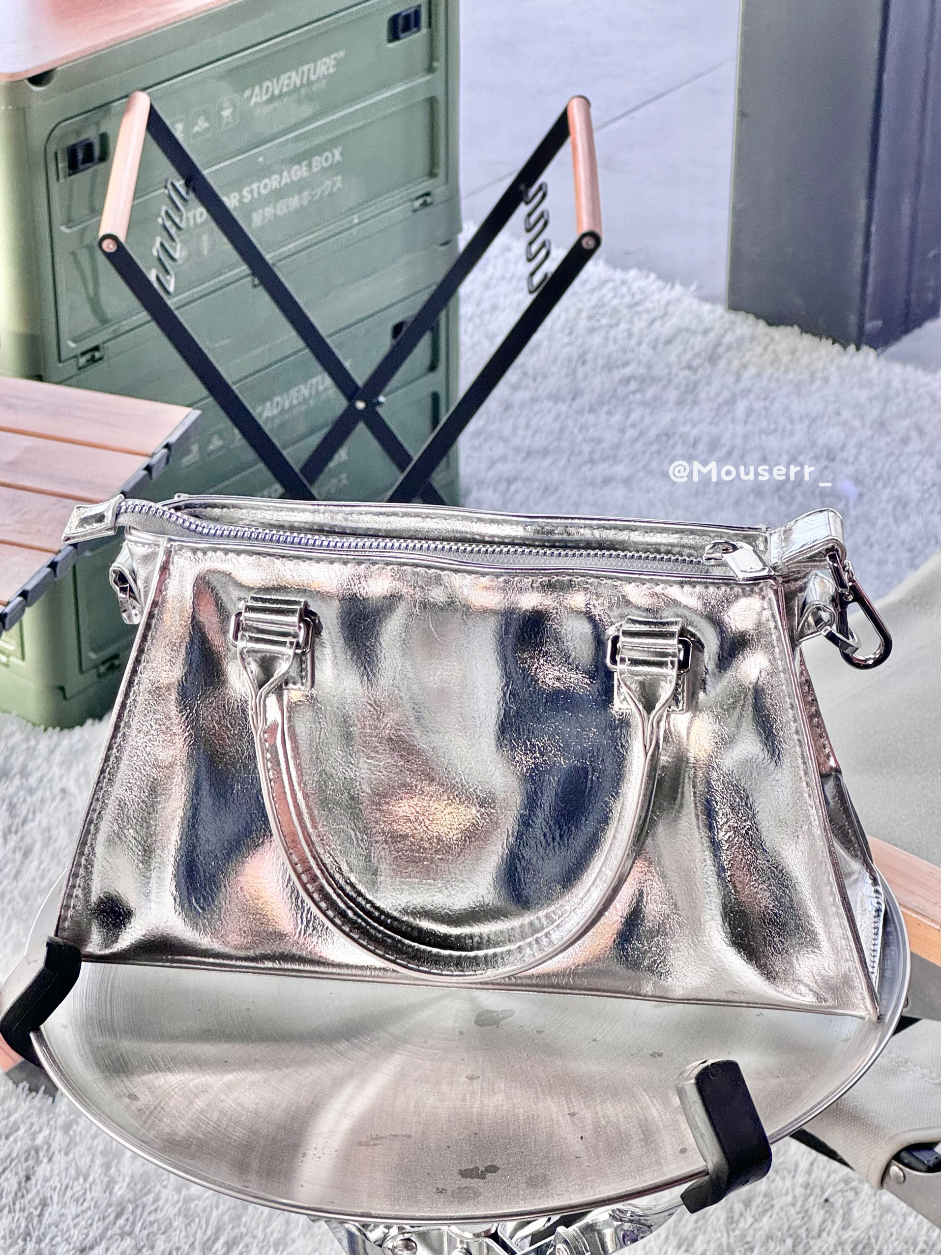 [狗头_blue]宝子们,今天来给你们分享一款超级吸睛的银色手提包啦~ 👀他是亮眼的银色,整个包身采用了亮面材质,在光线下闪烁着迷人的光泽。它有两个手提带,搭配上金属质感的拉链,设计感十足。 🌟这款手提包的款式很百搭,无论是搭配休闲装还是正装,都能瞬间提升时尚感。而且它的容量看起来也很可观,手机、钱包、化妆品等日常用品都可以轻松装下~