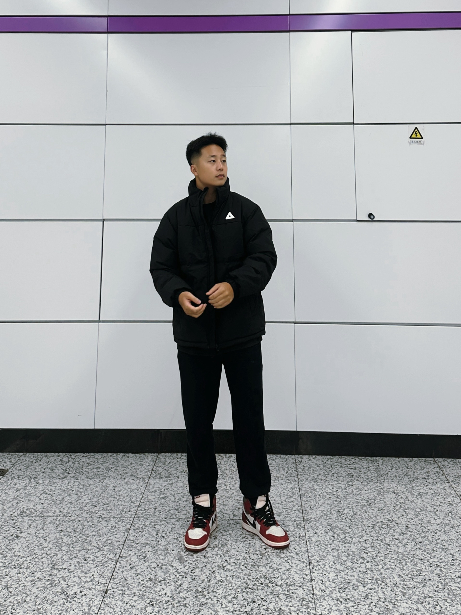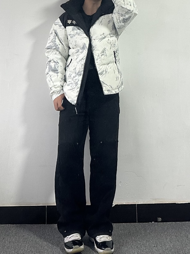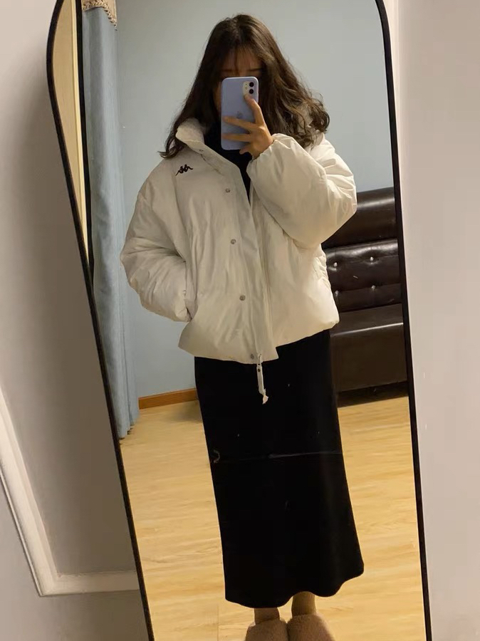 北方最近晚上气温都零度了 已经穿上羽绒服了🚨 这件立领很舒服而且抗风有风的情况下 也吹不进脖子,还可以把半张脸缩进去 整体白色印花也很帅气🎧 比普通黑色羽绒服更亮眼 @小陈腿很粗🪇