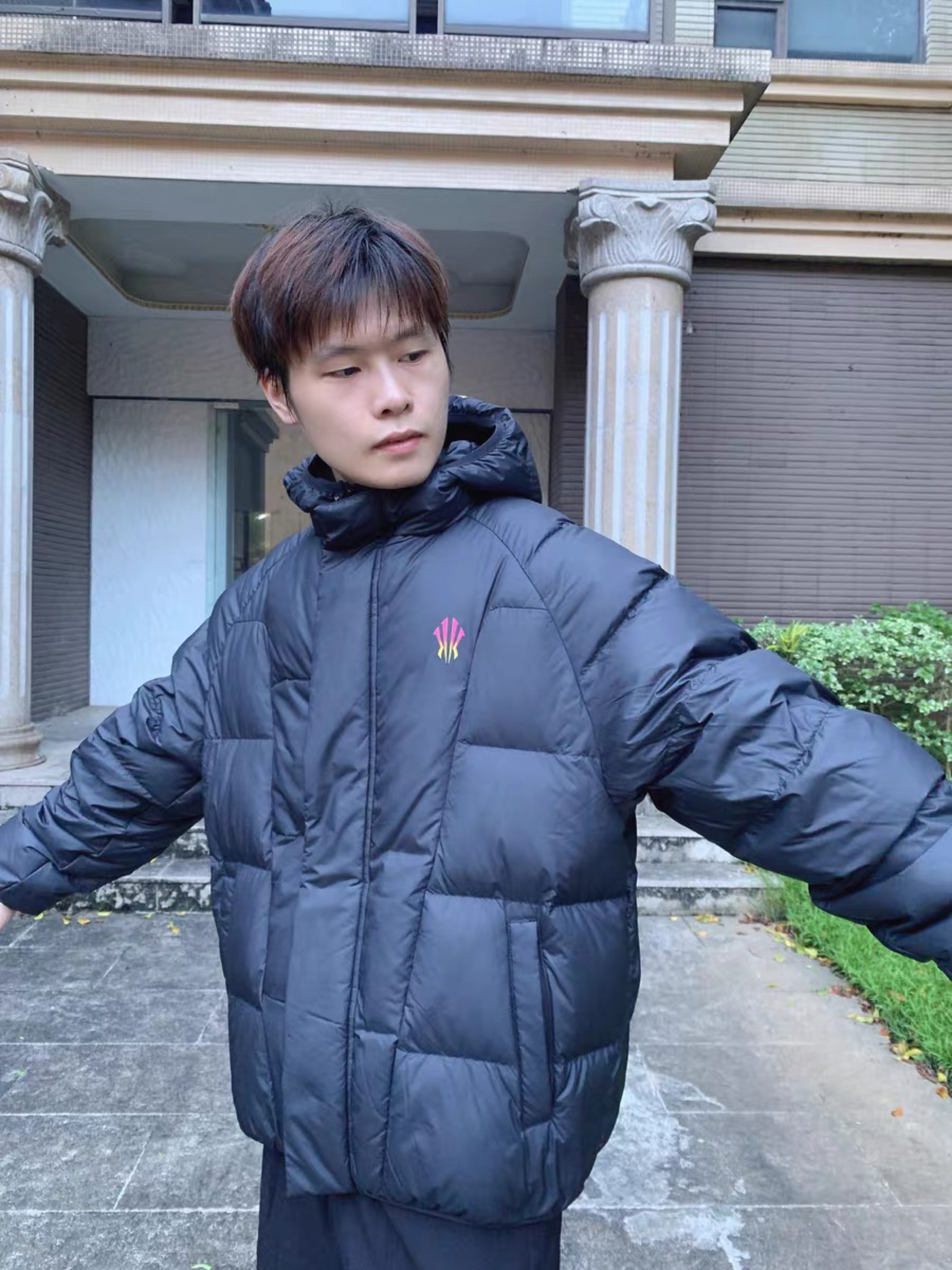 这件红色印花连帽卫衣。🐾 卫衣是加绒的,秋冬穿正合适。 胸前logo刺绣很精致。👍 衣服非常的柔软。颜色很正! 过年时穿起来是不是很喜庆。 @小鹏骑车上山😉