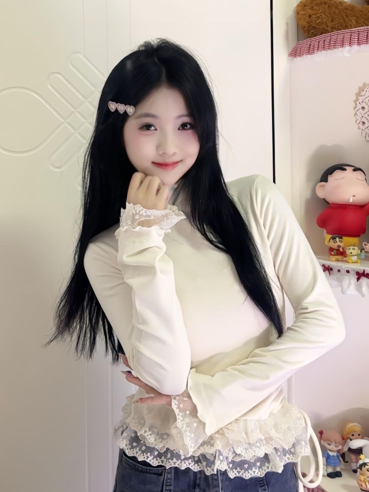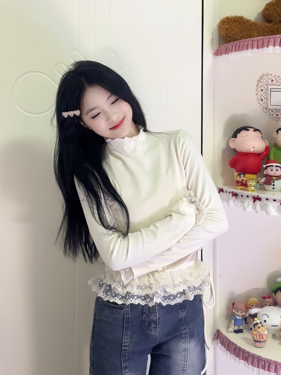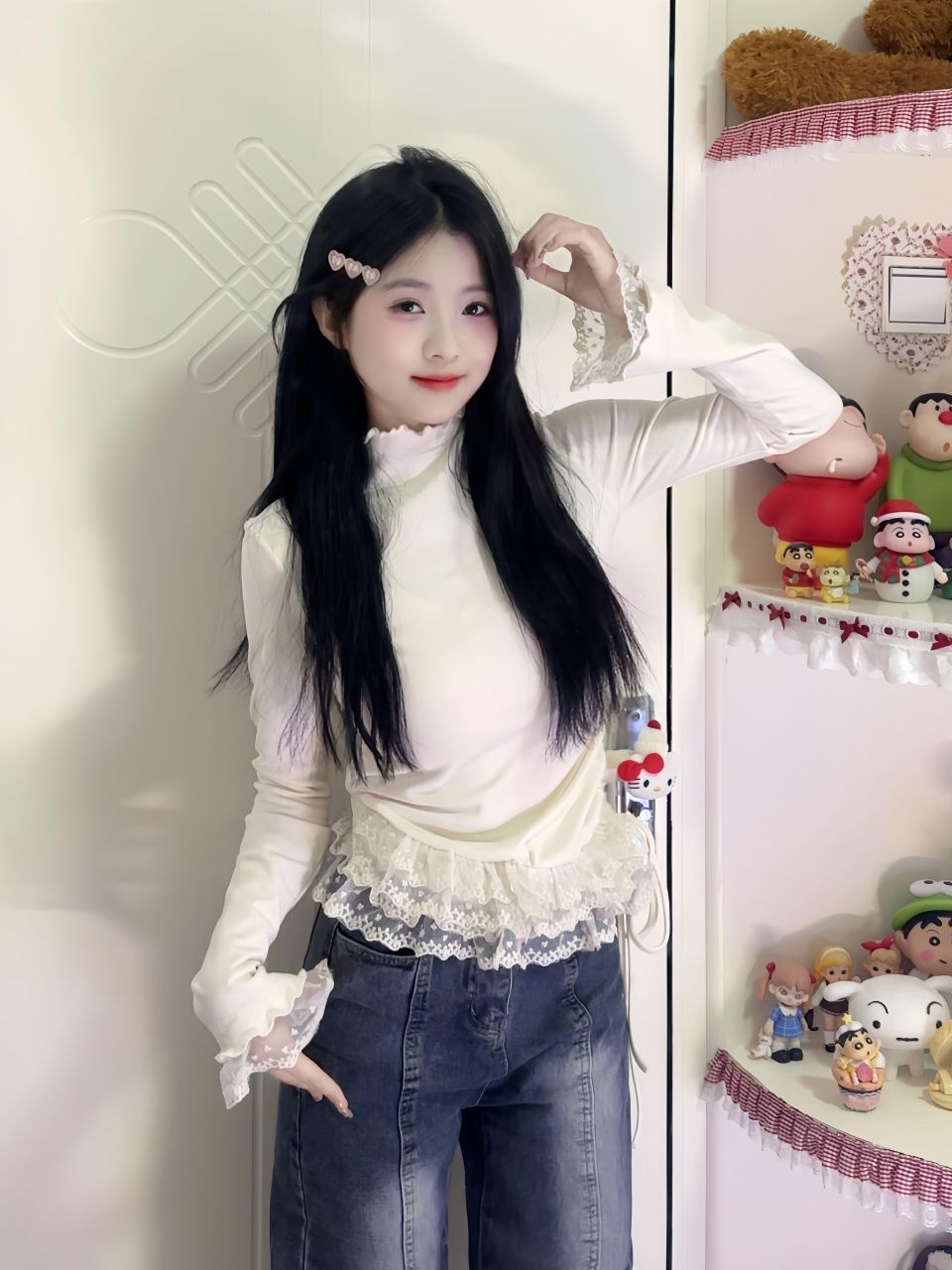 真的很喜欢这个花边 可以穿个短外套露出这个花边增加层次感 冬天脱掉外套里面也会很洋气
