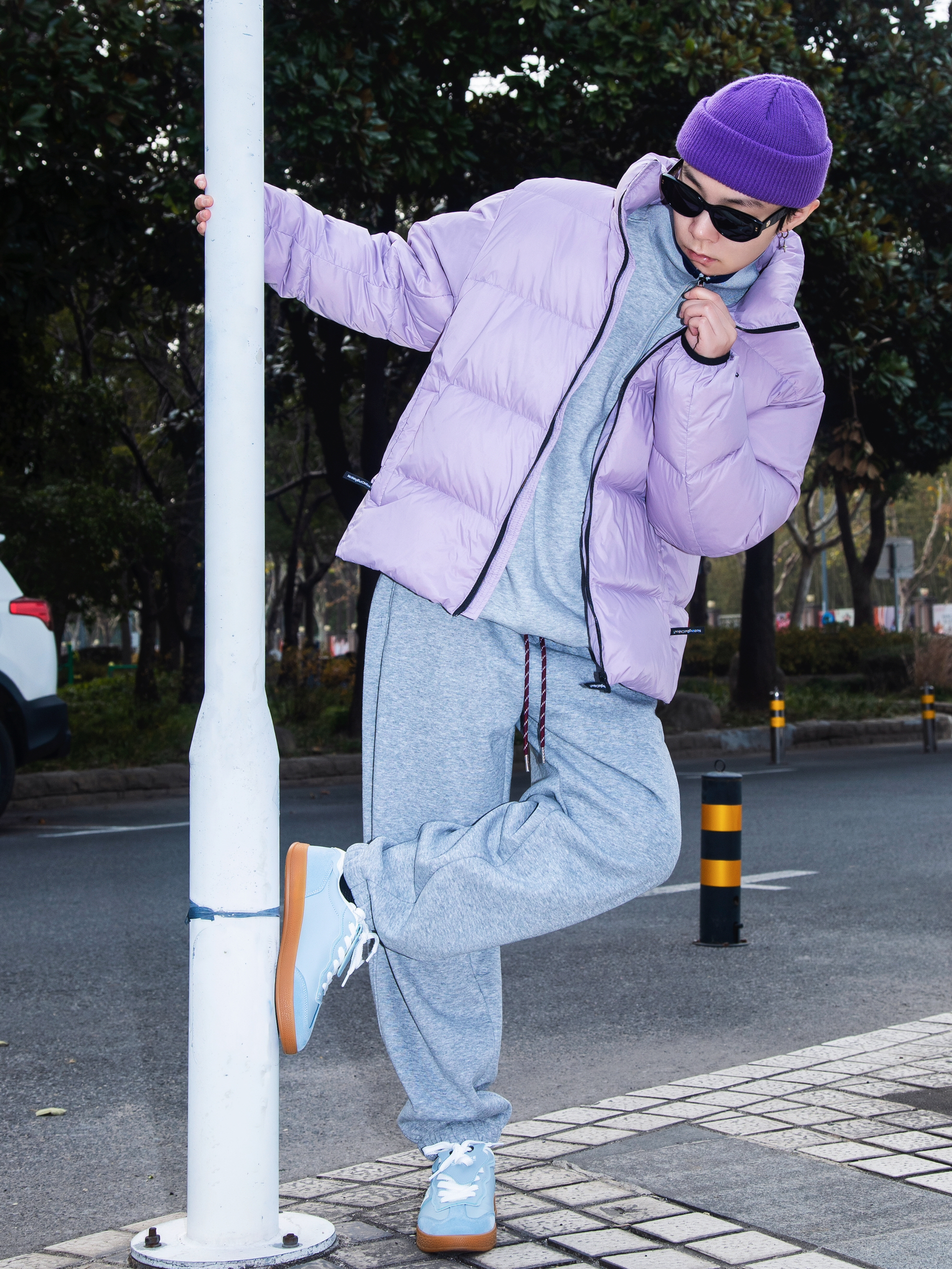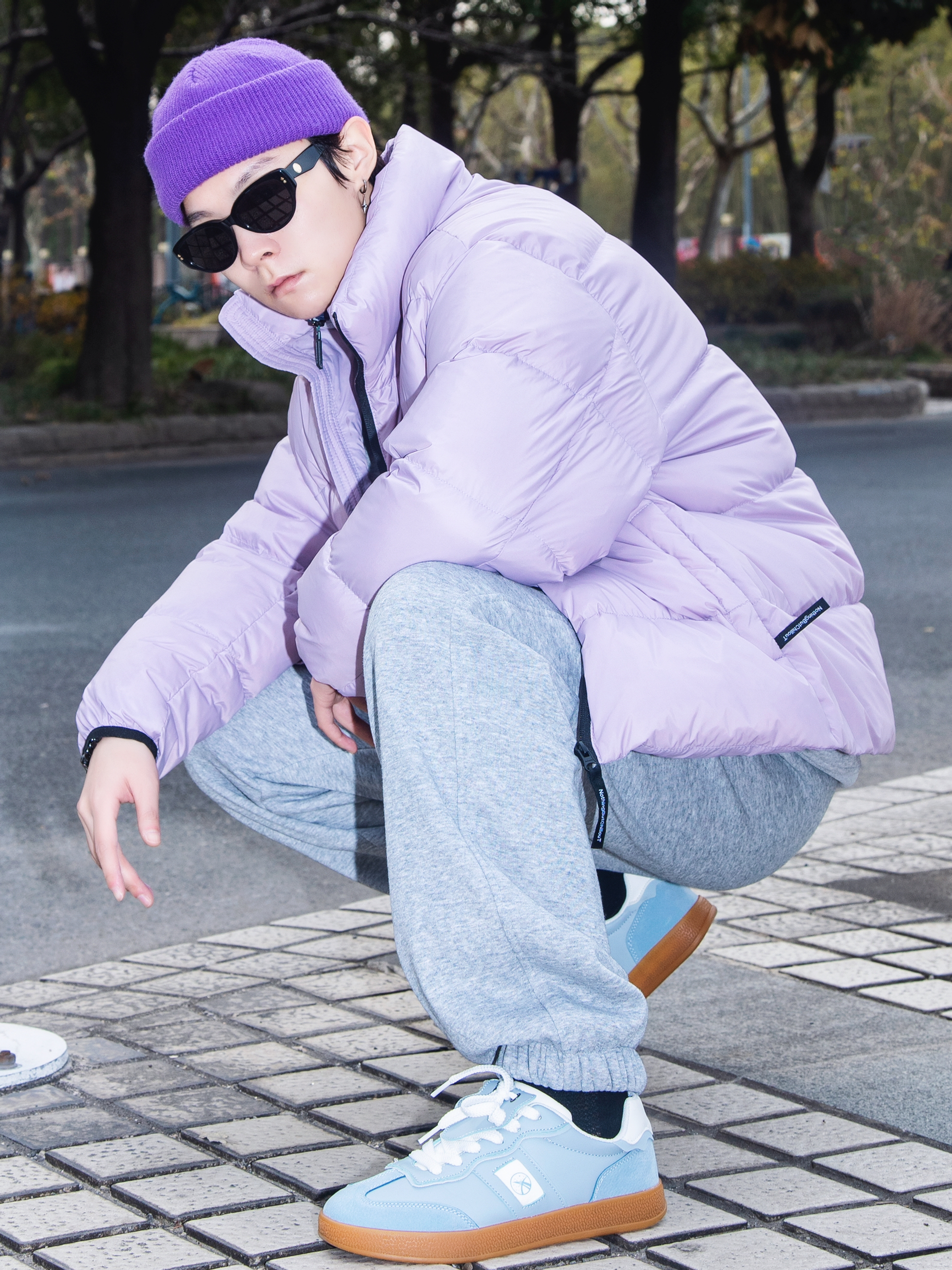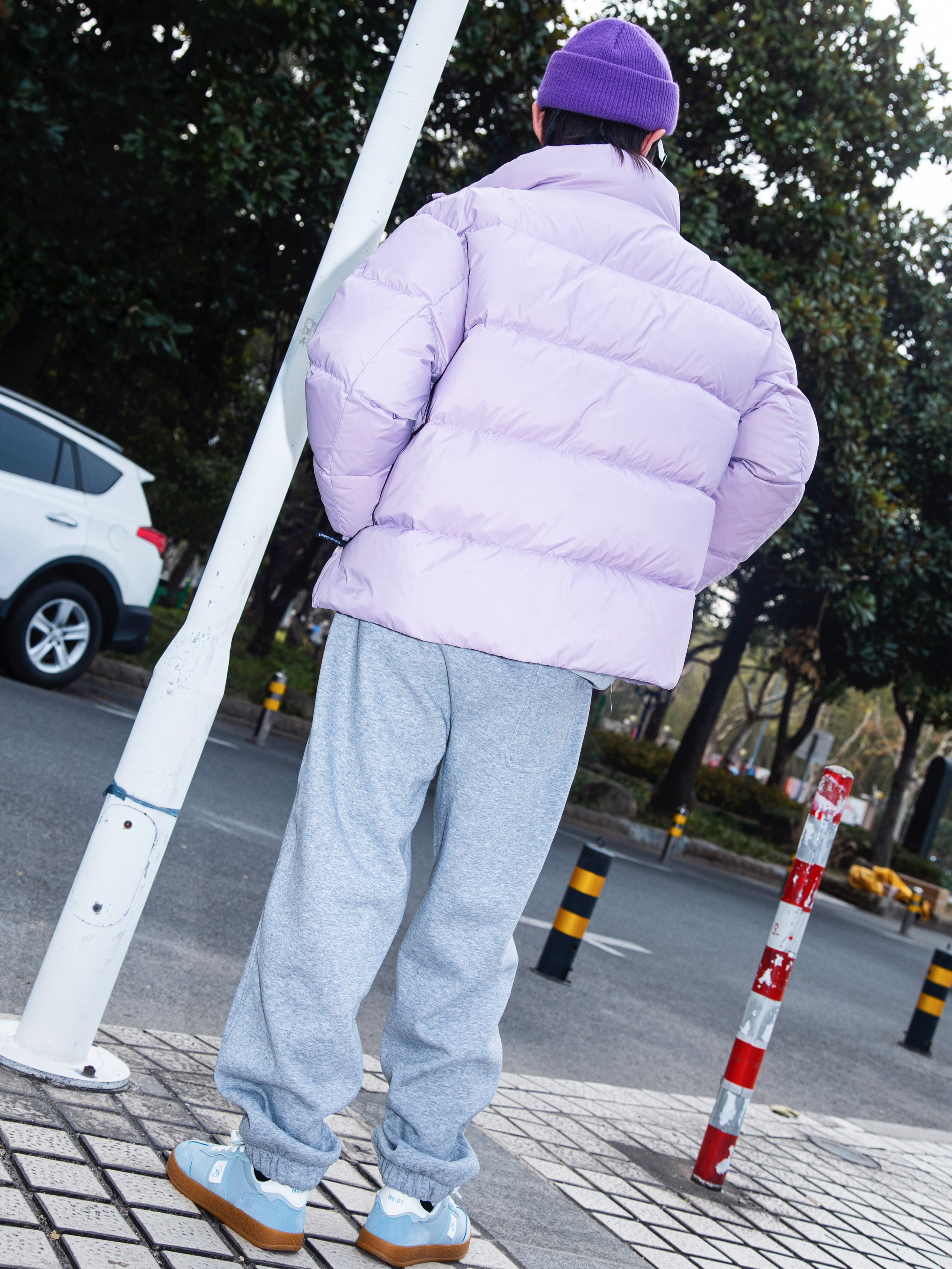 这个冬天离不开棉服和羽绒 分享一套浅色系排骨羽绒服穿搭 穿搭指南: 上身一件灰色立领卫衣 重磅加厚 把拉链拉起来 潮酷感十足 外搭一件紫色排骨羽绒服 又轻薄又保暖 再也不用担心臃肿过冬 下身一条灰色束脚卫裤 有垂感的版型自显高级 上脚一双中国航天跆拳道鞋 浅蓝配色 鞋身轻盈 牛津鞋底 上脚一整个简介复古味儿 戴一顶紫色冷帽呼应一下 这一套排骨精穿搭申请出战