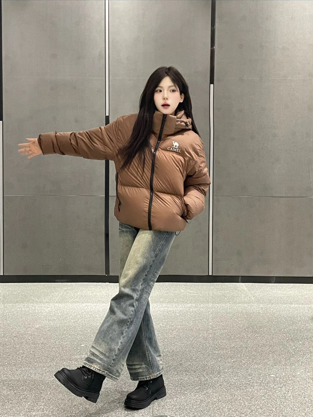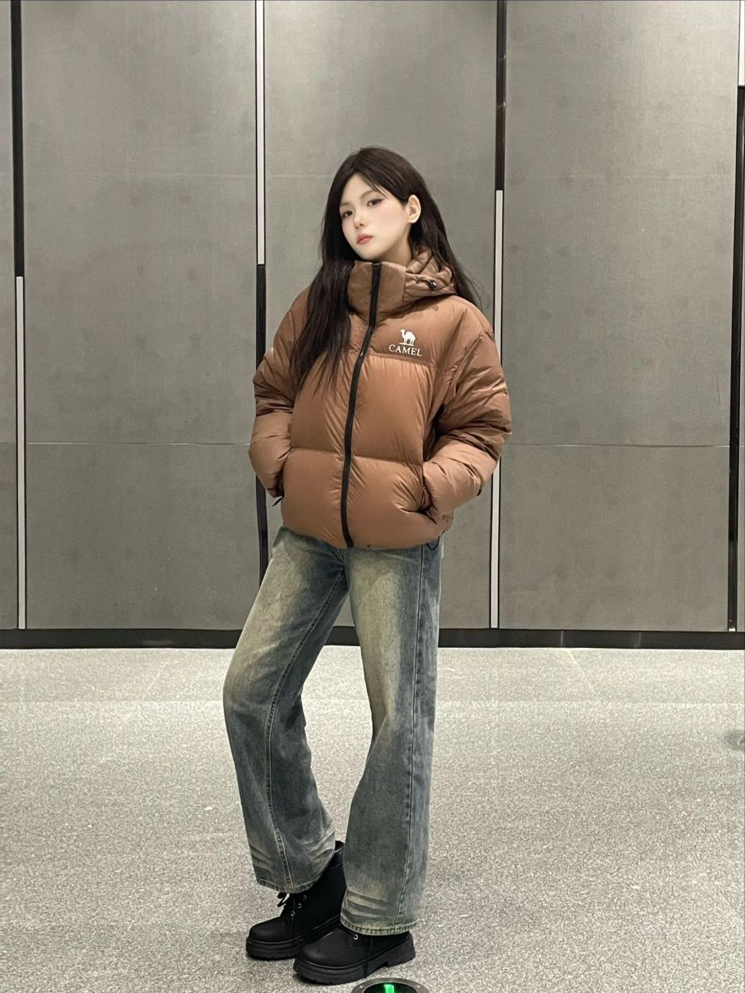 🍈🍈Camel/骆驼 2024AW 黑钻3.0系列防风防水御寒纯色加厚连帽高蓬鸭绒羽绒服 女装 🍈跟着肯豆学穿搭妥妥感觉至上,今天我穿的是骆驼棕色肯豆羽绒服~ 短款的设计小个子放心入~简单搭配一条牛仔裤,休闲又好看。🍈🍈上脚一双帅气的黑色马丁靴,哑光的皮面防水又耐脏秋冬穿刚刚好,黑色经典百搭,不会出错的一款。 🍈再加上蜡笔小新的点缀,可爱又有点小帅气,冬日穿这套出门也太时髦啦~图片来自于博主睡...