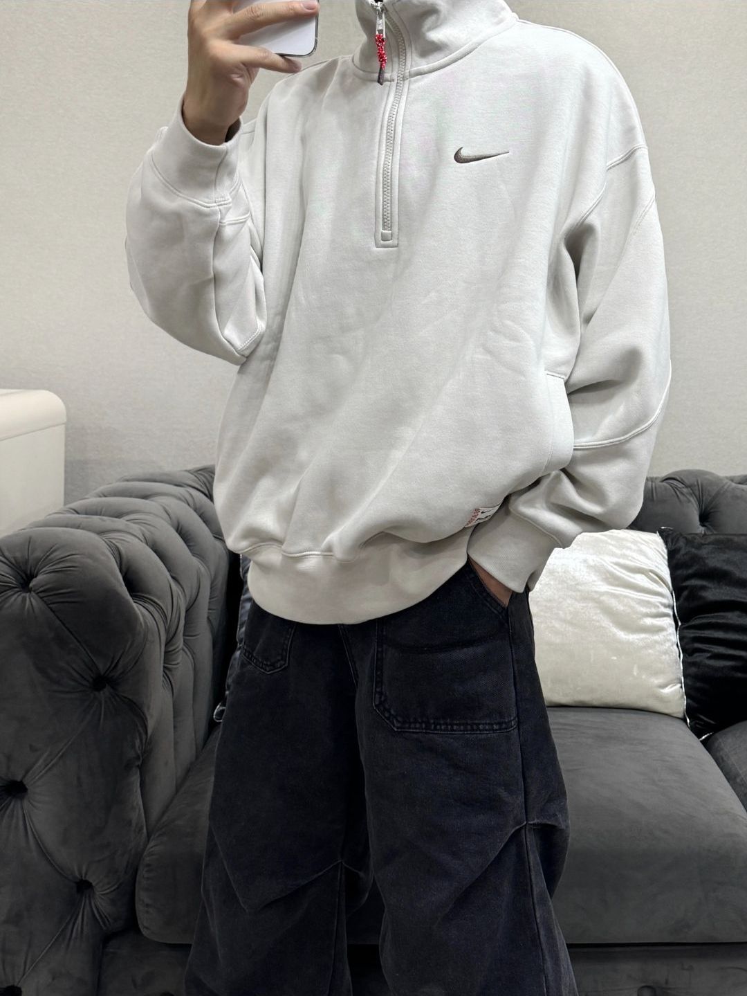💧💧Nike/耐克 NSW灵蛇迎新系列加绒套头立领卫衣 💧期待几天的蛇年新卫衣也是穿上了。喜欢就得趁早下手、上身很帅哈~配了一条水洗做旧高街牛仔裤, 褶皱的设计很有层次感,穿着松弛也不缺潮流。💧过年这一身还OK吧?立领造型真的很显精神显脸小啊, 不管是不拉拉链的松弛感随意穿法。还是完全拉上后的板正精气神~💧图片来自于博主紫茶茶