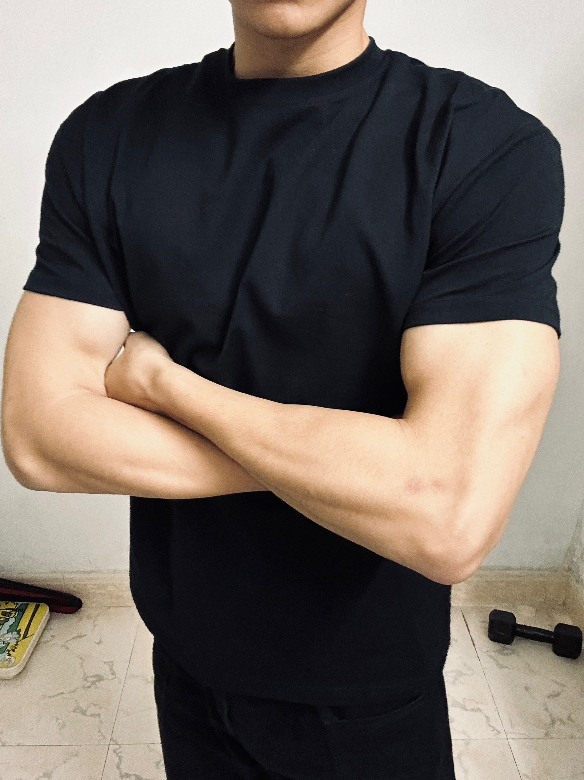 GTAL的t恤真的显大显肩宽 版型是短宽版型 面料柔软 重磅有质感 收袖口的设计让肩膀跟手臂更显线条更有立体感 身高|体重:182|75kg