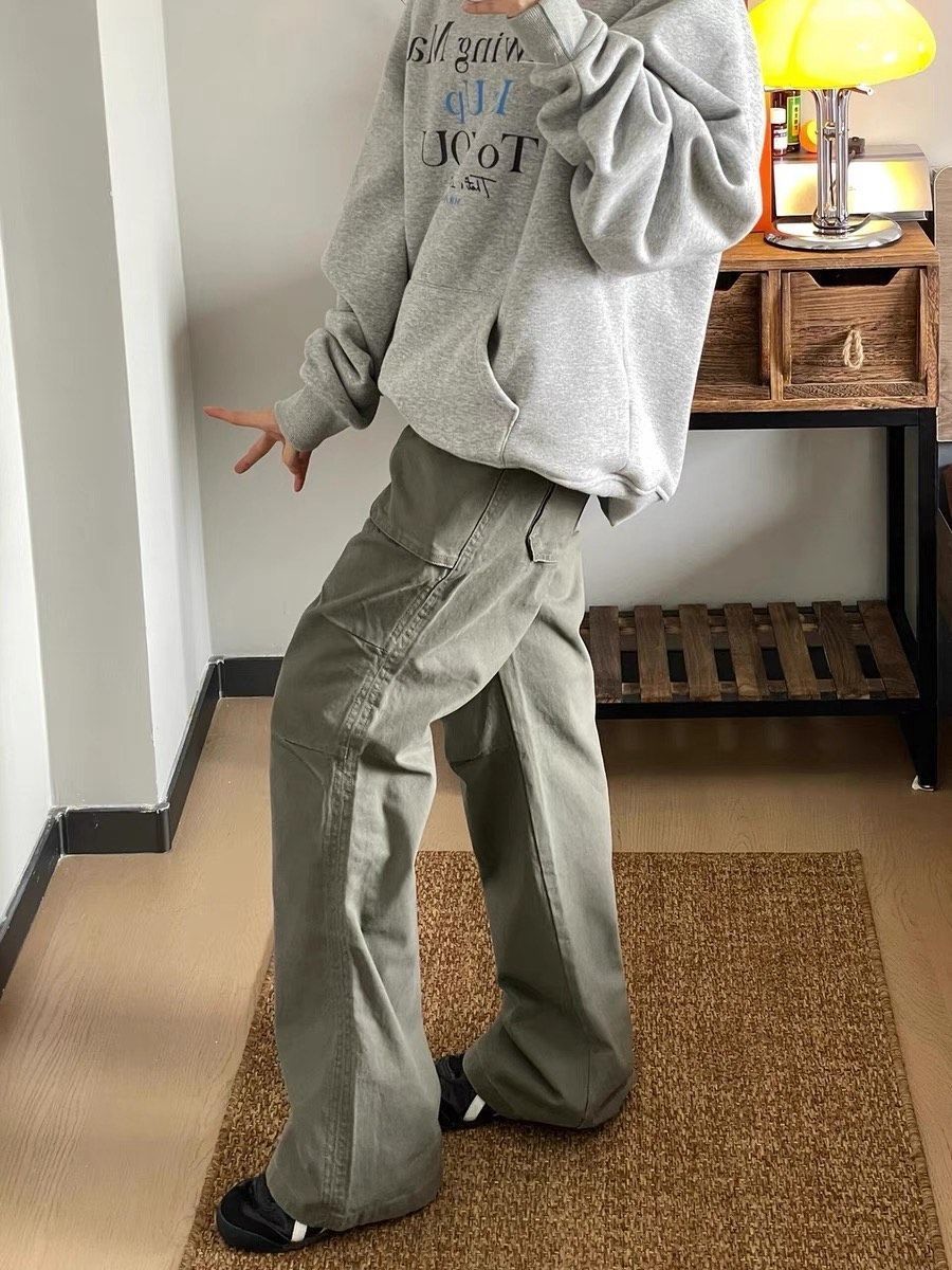 本篇笔记关联了美式做旧复古水洗多口袋褶皱直筒阔腿微喇工装长裤 基础色等商品,为用户提供真实的使用体验和购买参考。