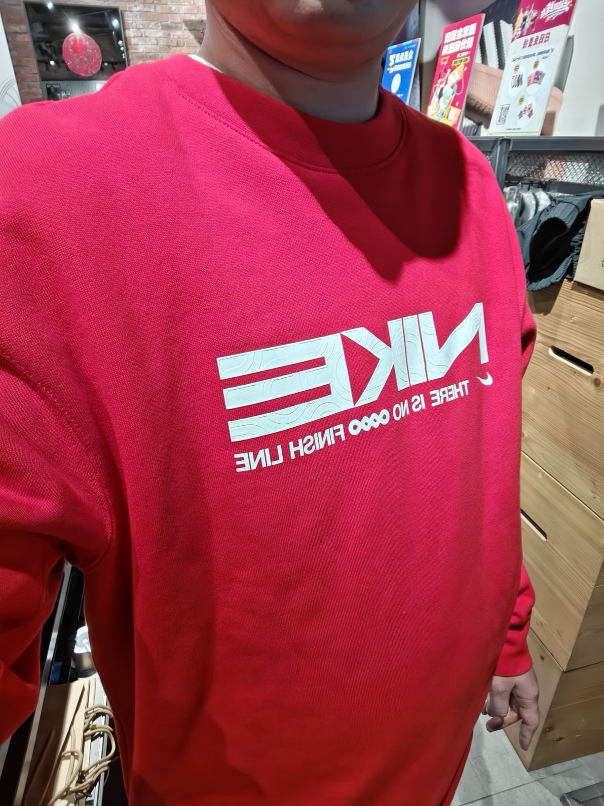 耐克蛇年限定套装 圆领大红卫衣满满新年气息! 白色图案印花加白色打底叠穿使穿搭更有味 裤子左右 两边各有不同logo,侧边红色细节拉 链 简单经典跑鞋一双