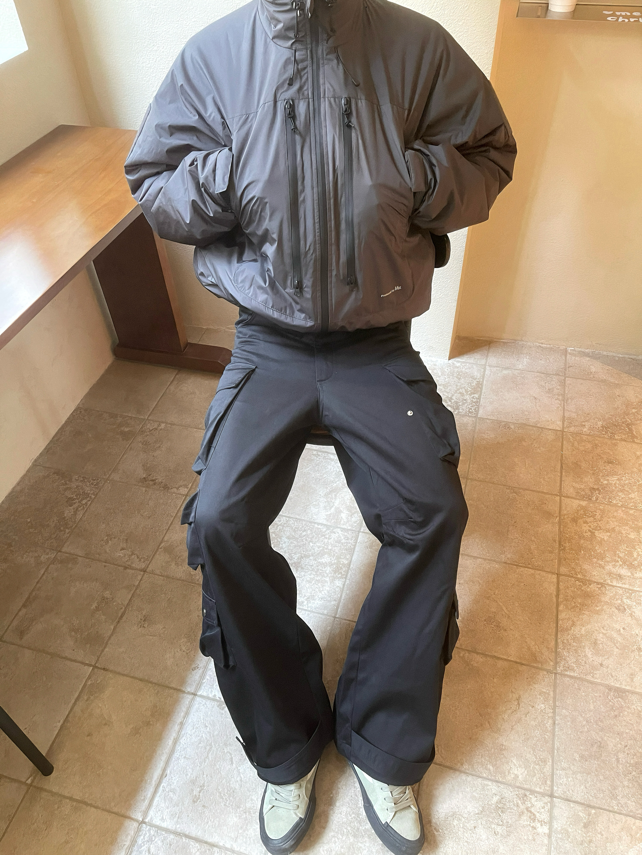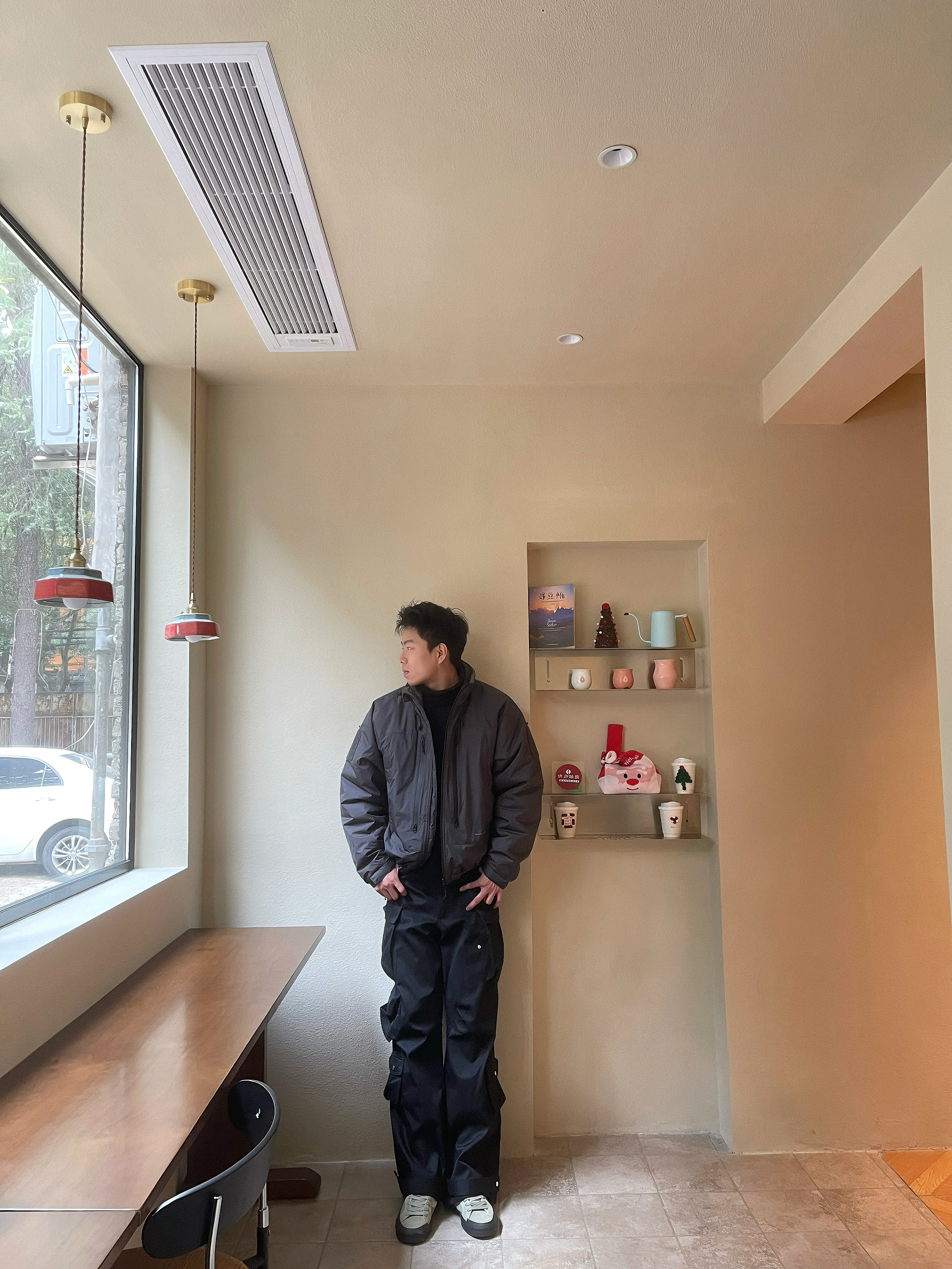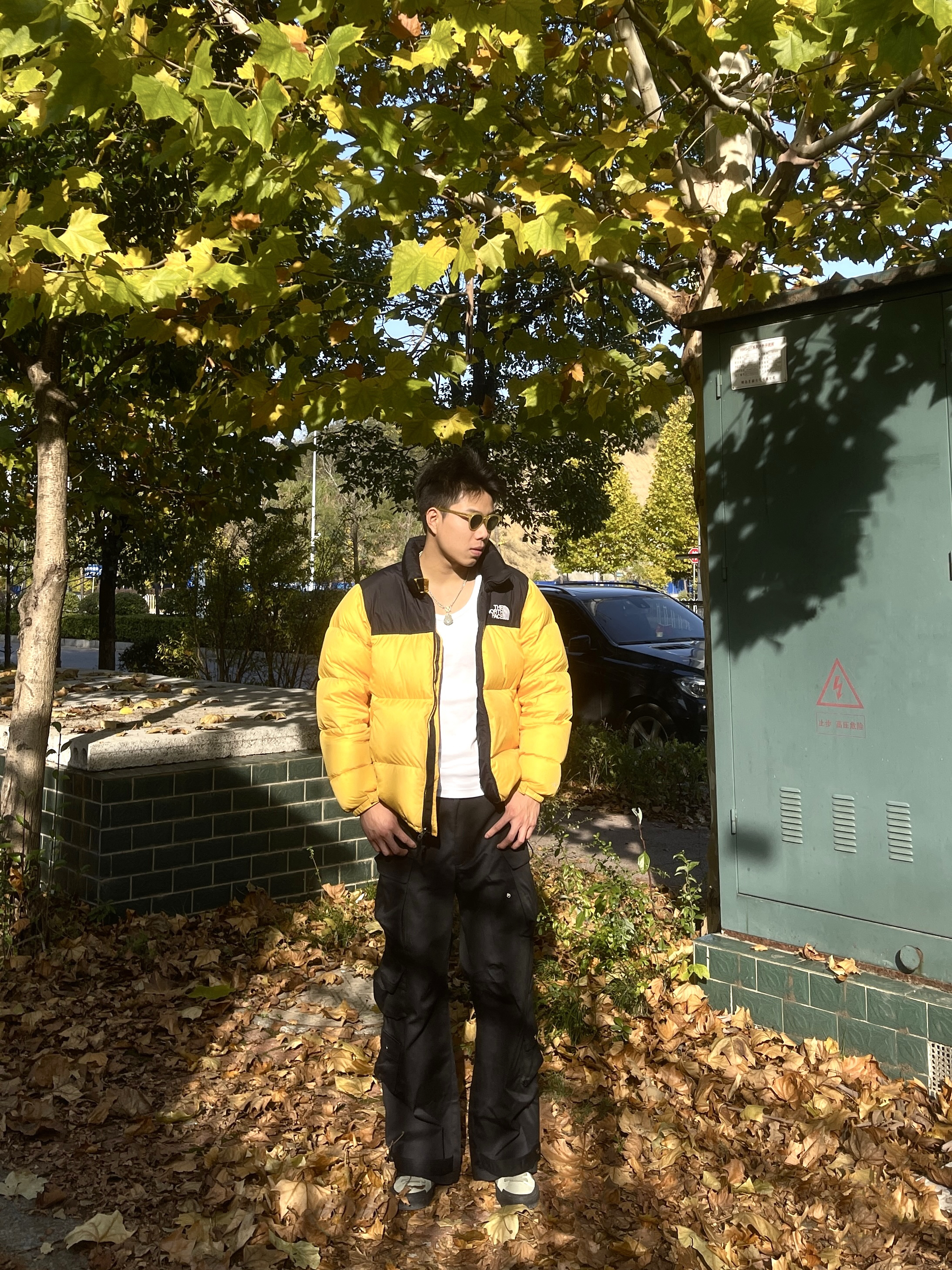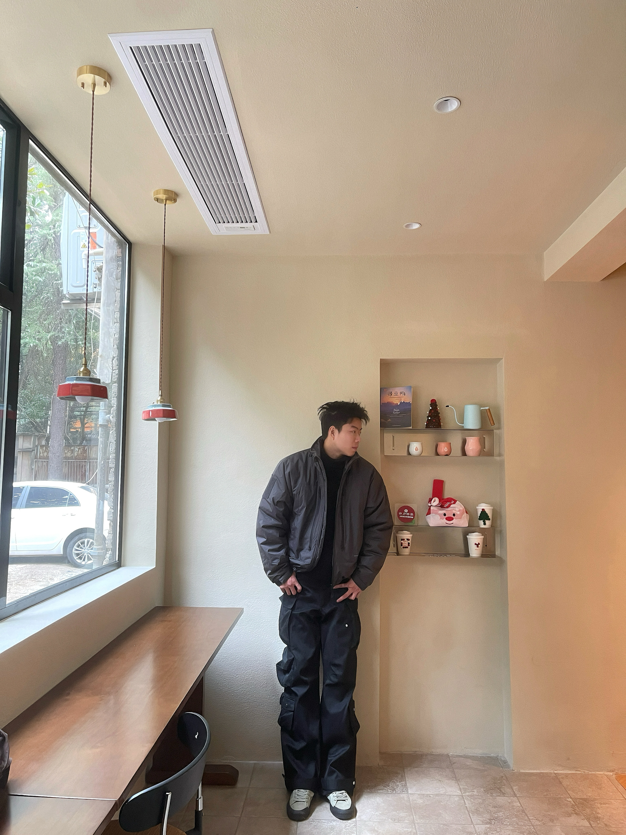 bomber风穿搭指南分享 1. 外套:灰色短款棉服,蓬松保暖,高领设计,利落不拖沓,适合配高腰下装。 2. 裤子:黑色工装裤,宽大裤腿,多口袋实用且具工装风,上衣选修身款平衡比例。 3. 鞋子:浅绿色休闲鞋,为深色穿搭提亮,款式简约百搭。 4. 色彩搭配:主色调灰黑,简约时尚,适合日常及轻松户外。