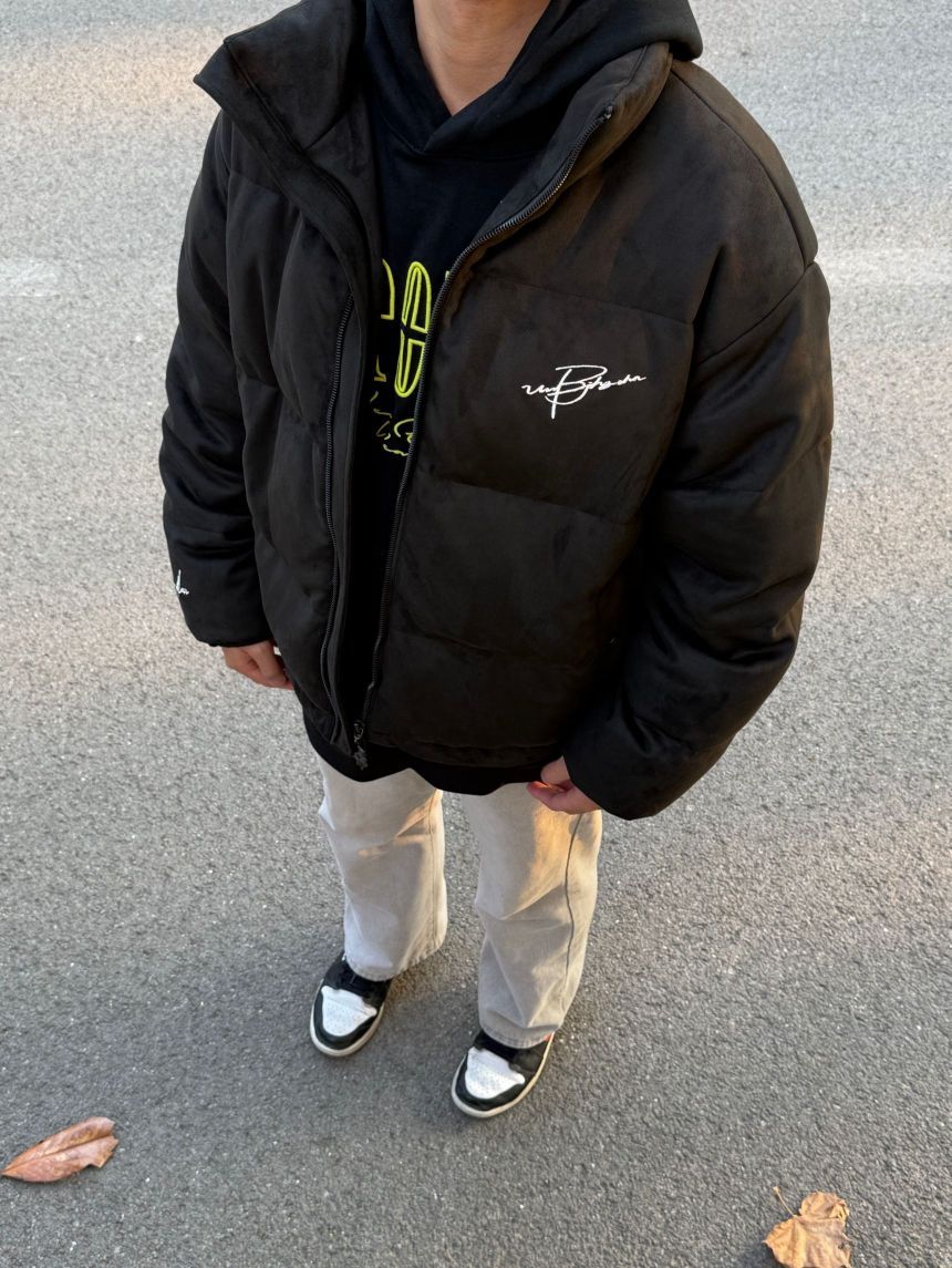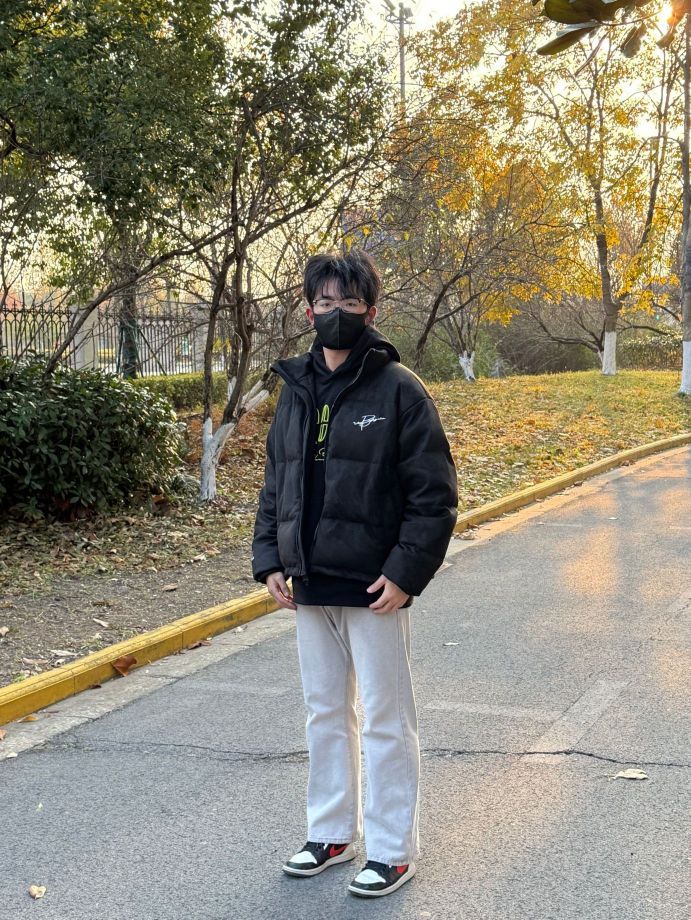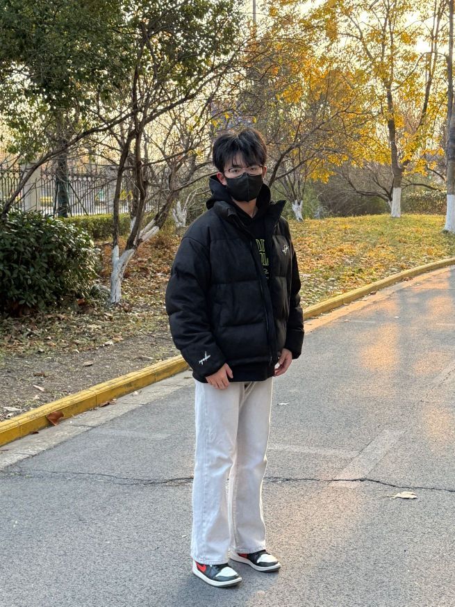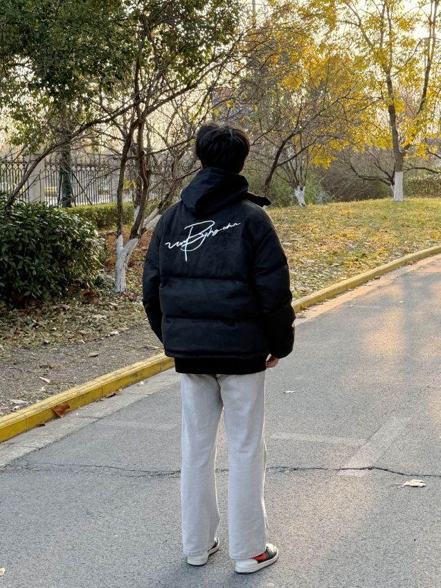 🧍♂️ 穿搭风格:休闲风 👔 上衣:BJHG羽绒服 宽松舒适 立体轻便 休闲百搭 背后花纹低调又不失风格 👖 下装:水泥灰牛仔裤 百搭修身 休闲感拉满 👟 鞋子:aj1黑白熊猫 经典板鞋 休闲百搭