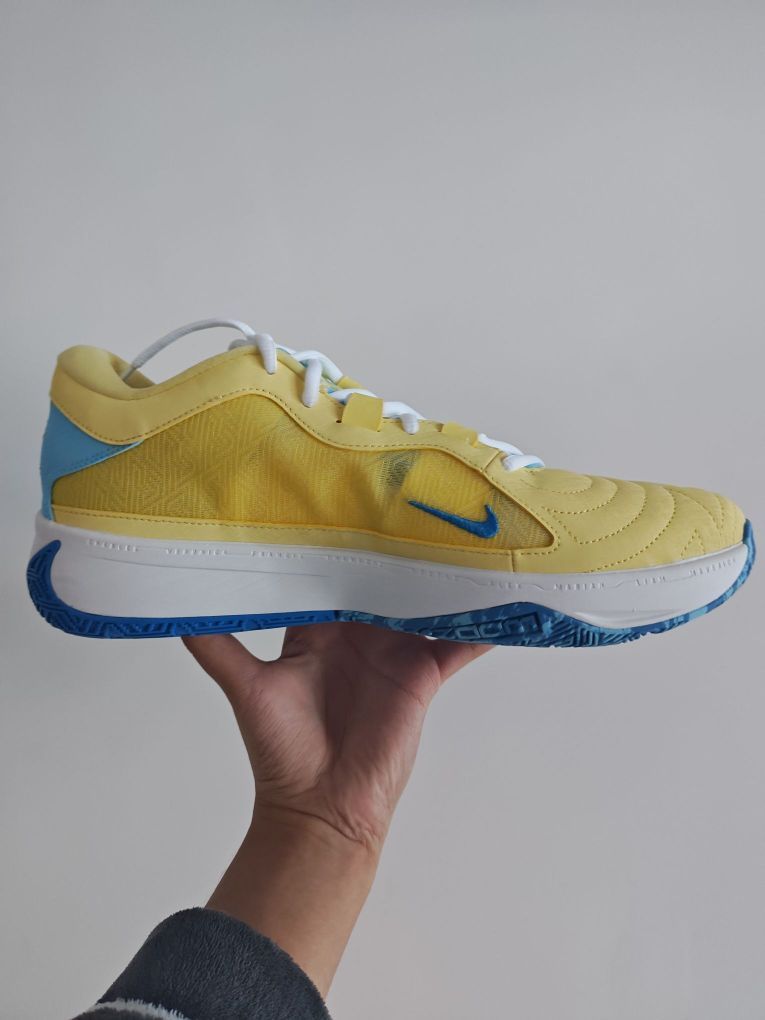 优点 - 外观设计:黄蓝配色明亮欢快,上脚亮眼吸睛,视觉冲击力强。 - 鞋身材质:鞋面采用合成革加织物材质,强度较高,质感不错,且兼顾了一定的透气性。 - 包裹性:鞋带系统复杂,有额外扣子,能让鞋面更好地贴合脚面。后跟填充厚实,换篮球袜后合脚性好,整体包裹紧致但不压迫,鞋脚一体性优秀。 - 缓震性能:中底全掌泡棉加前掌Zoom气垫的配置,泡棉调教轻质舒适,前掌扇形气垫放置合理,弯折发力有反馈和...