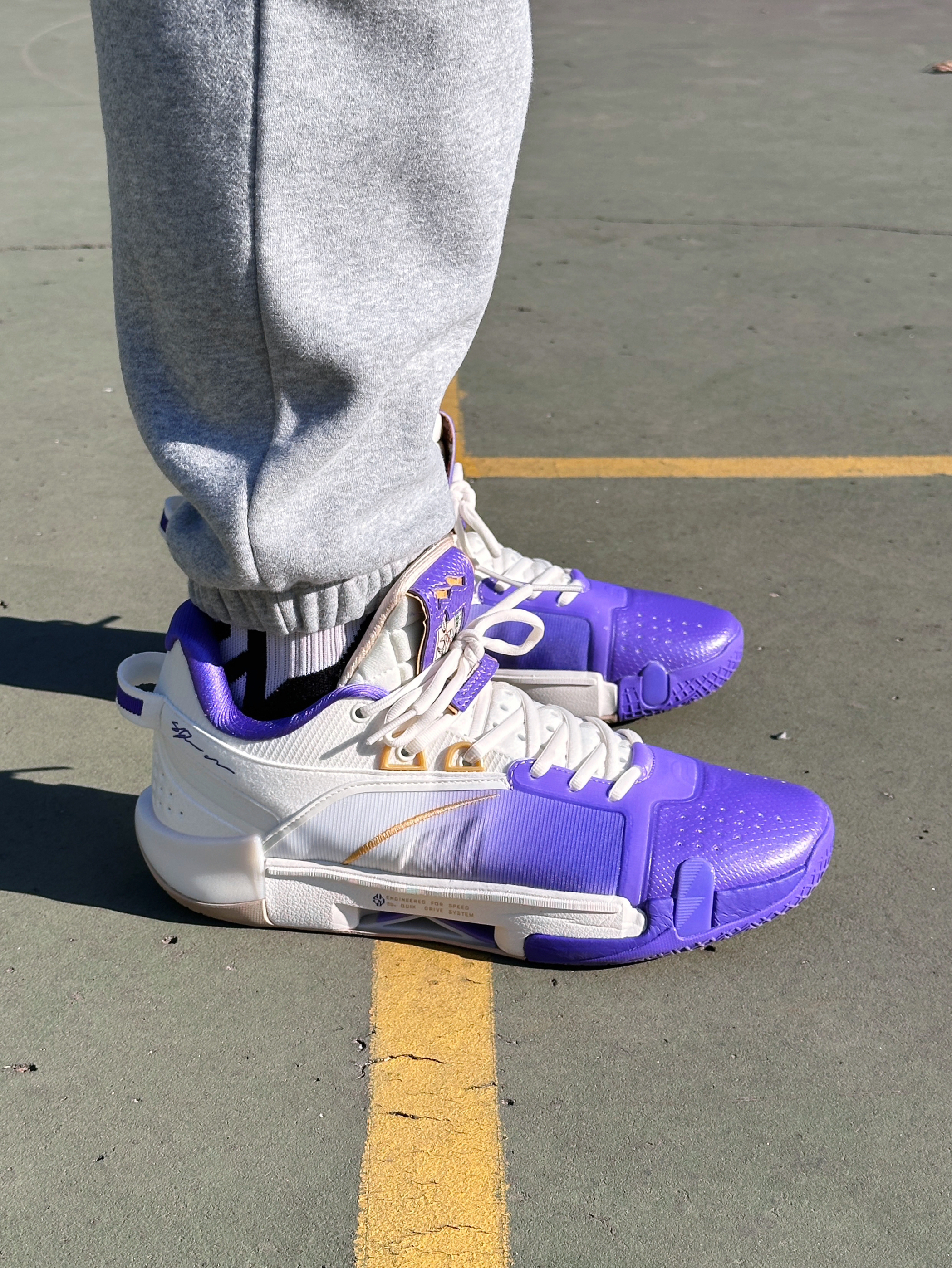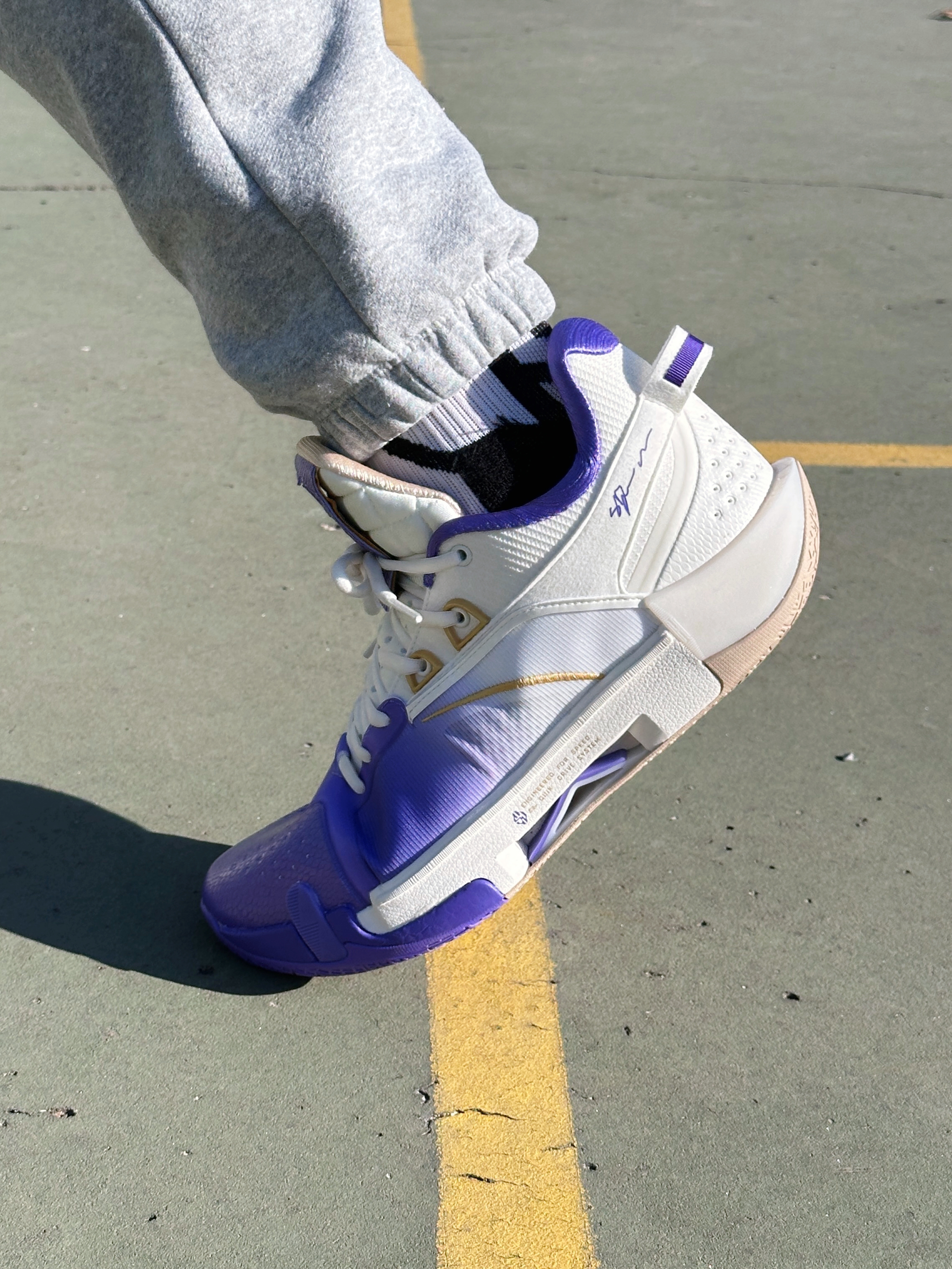 对于 361 来说它可能就是目前最稳定的后卫篮球鞋了! 上脚以后我是 45 的窄脚型 低脚背 扁平足,我穿 45 的鞋正合适,尺码正常不偏码,鞋楦做的正常标准,尤其是前掌的空间充裕,不存在拇指外翻和顶脚趾的情况,高度也合适,不会压脚背,所以脚型适配度很友好!静态穿着的时候呈现出轻微前高后低的重心感受,前掌填充的 CQT 碳临界 非常明显,又弹又软!整体没有异物感,不用磨合,上脚就能打! ...