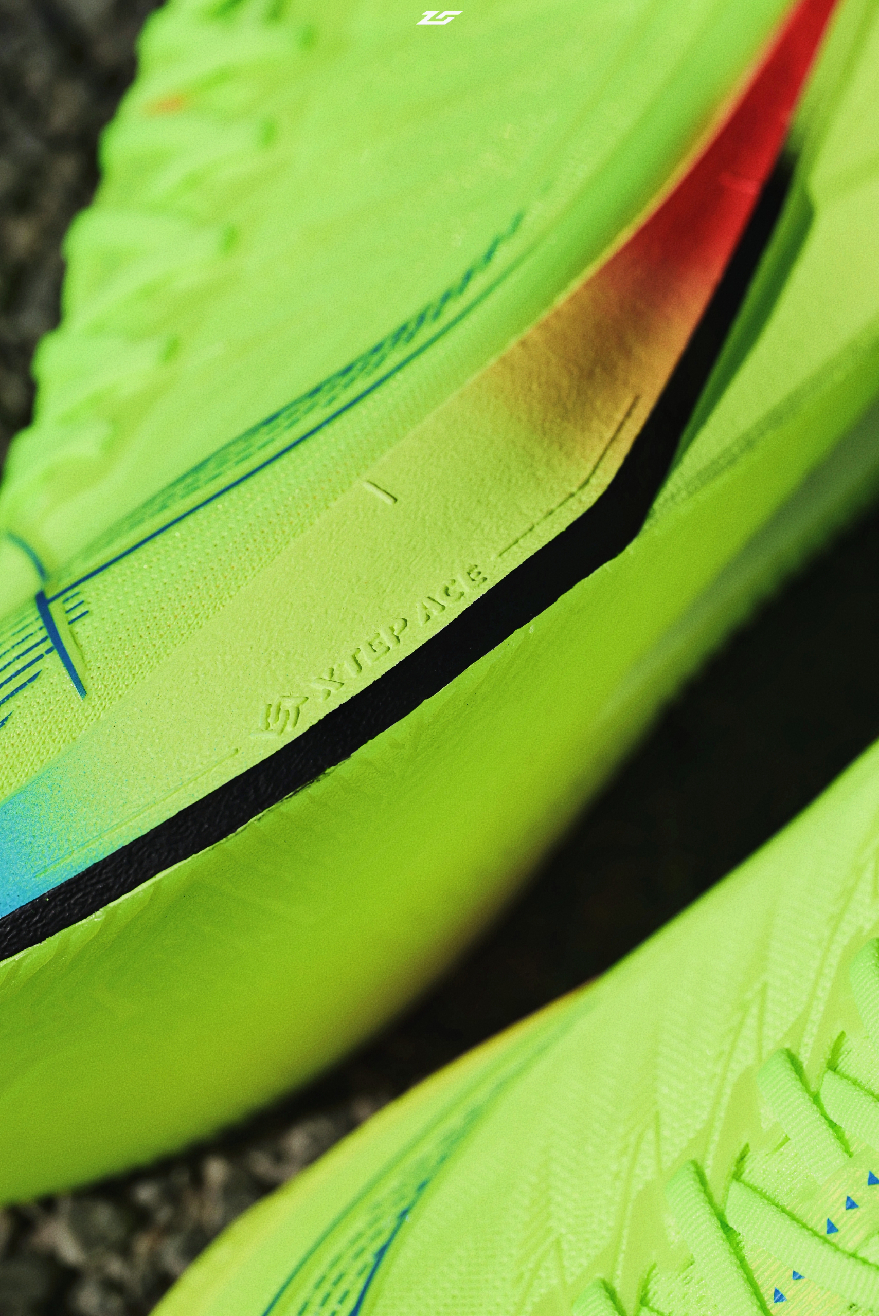 260X迭代升级,上来就是炸裂配色,鞋型设计和一代毫无关系,更像160X 6.0,整体颜值可以说是不增不减。 这次的贾卡鞋面质感好上许多,鞋内空余也更舒服点,重量比前代微轻。 中底还是珠粒发泡的XTEP ACE,脚感试穿要更软一点,配合T400碳板,推进力依旧强劲。 穿完再来分享。
