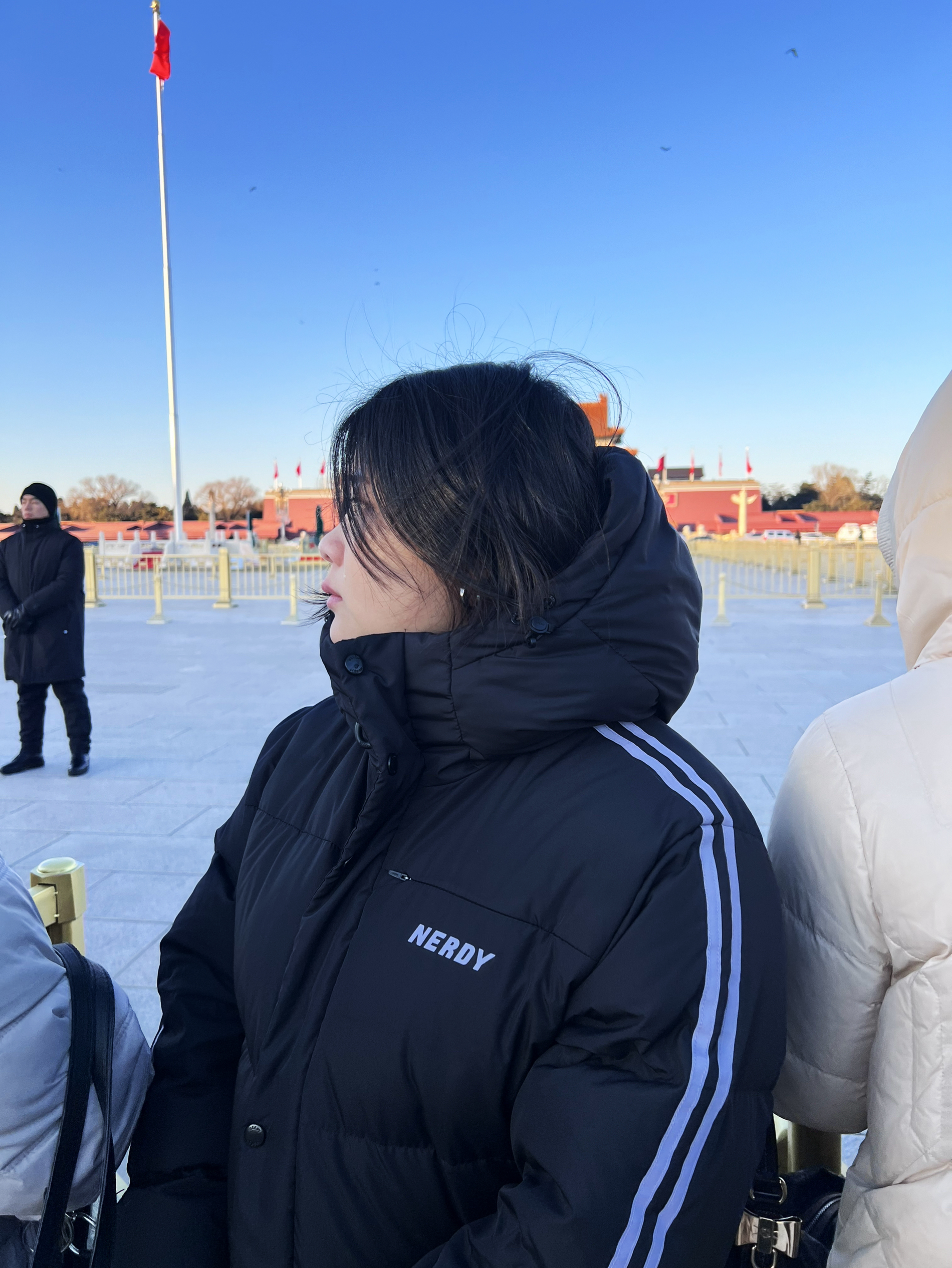南方小土豆到北京,特意买的长款羽绒服。炒鸡合适,长款防风,零下也不怕,爱了,爱了!