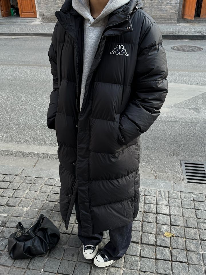 衣柜里少不了一件长款羽绒服 185 140 XL 上身KAPPA卡帕长款羽绒服 胸前和后背都有印花logo的设计简约又好看 实物到手也很轻盈 上身保暖度舒适度都很好!这个冬天有这一件长款羽绒服就够了! 搭配一条今年很火原牛加一双匡威1970s即可轻松出门!早八穿或者通勤穿都没问题!