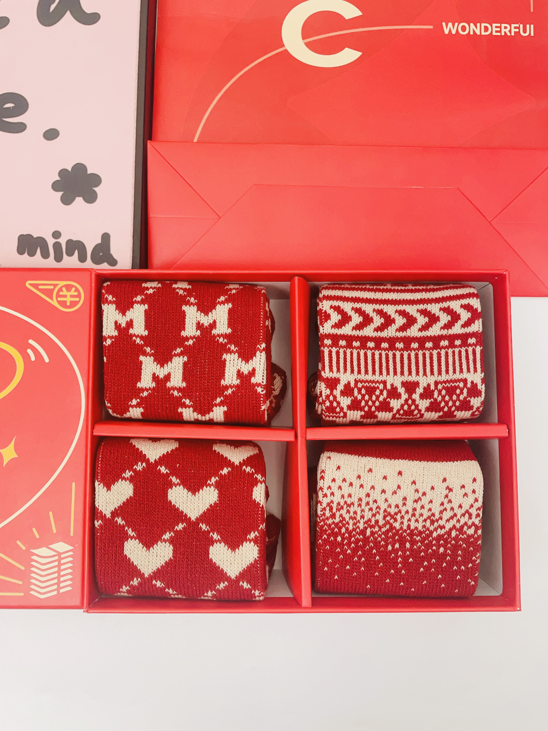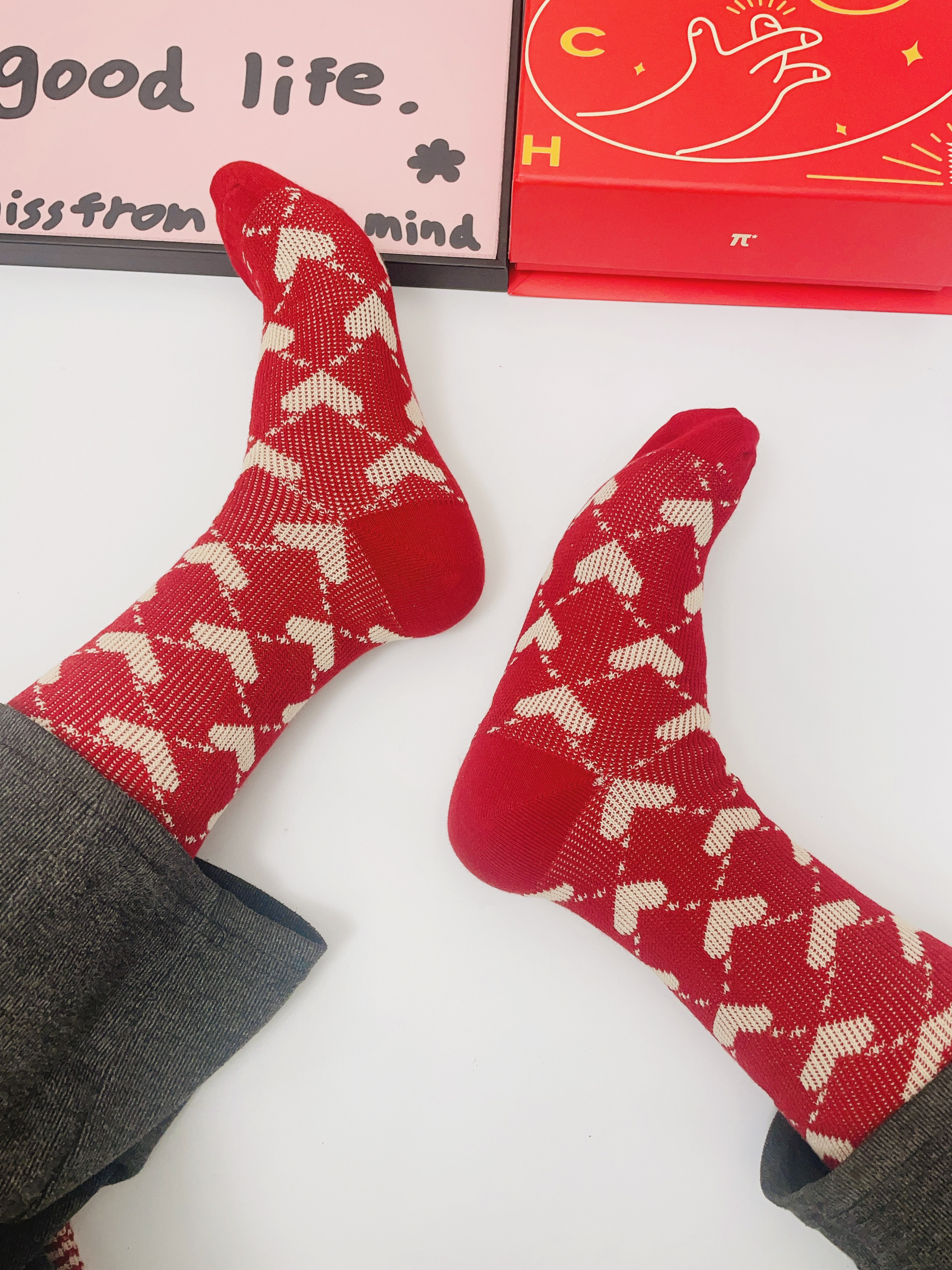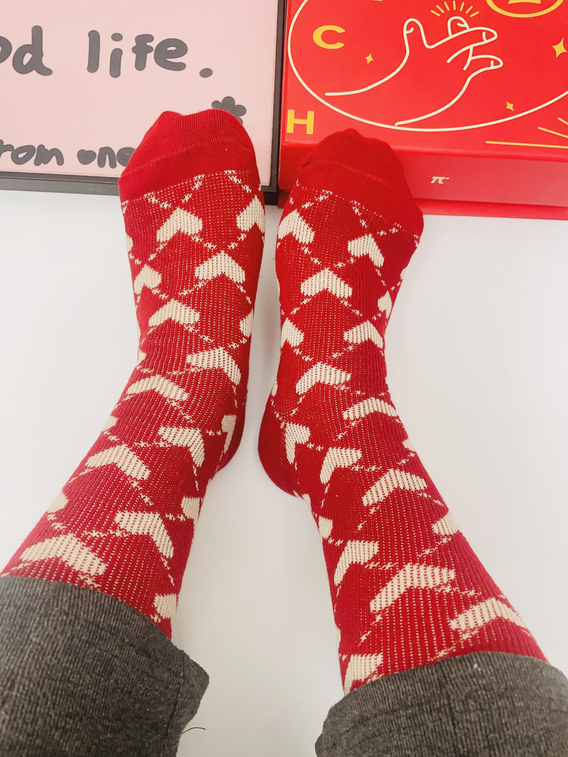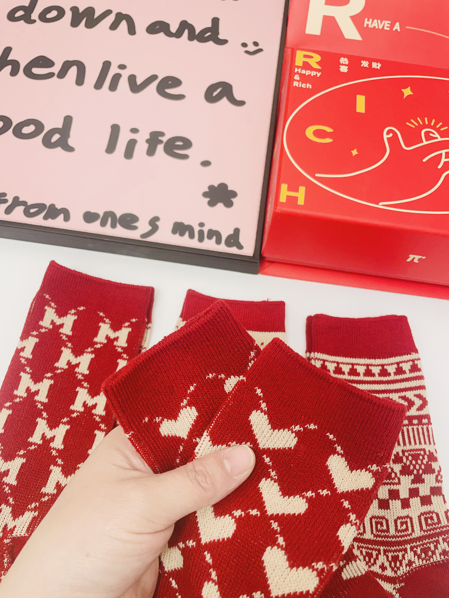 现在年底了快要过年啦 当然要准备新的袜子穿啦 刚好看到派米这款红色袜子 礼盒包装精致 打开有四双红袜子 每一双都红红火火hin喜庆 摸着面料柔软 上脚穿舒适 新年搭上我的新鞋子噂嘟可