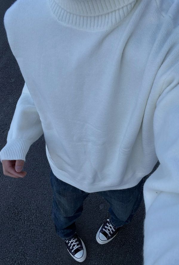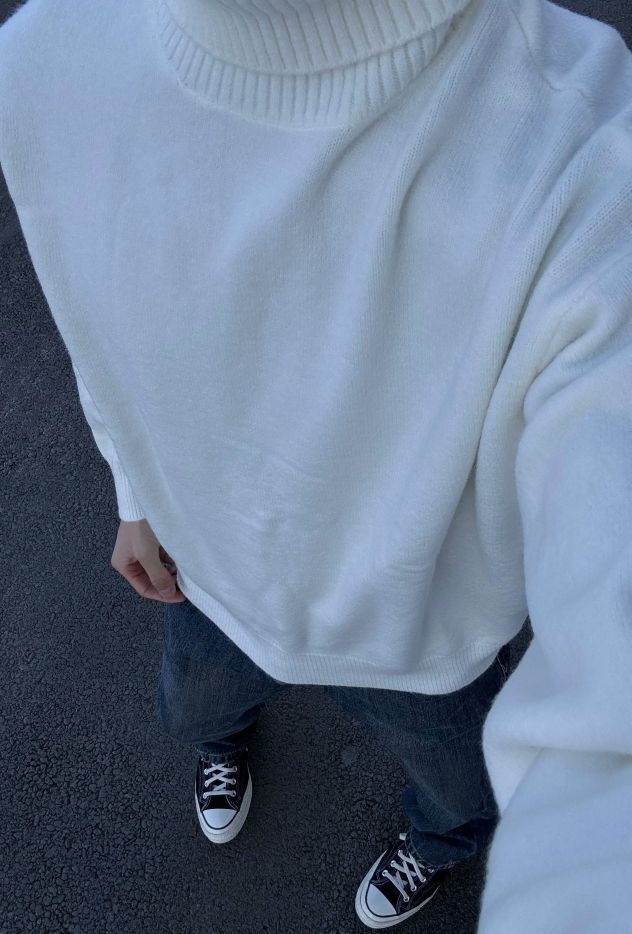 身高|体重:178cm|145斤 🧍♂️ 穿搭风格:秋冬慵懒风 👔 上衣:纯白高领毛衣 👖 下装:水洗牛仔裤 👟 鞋子:匡威帆布鞋