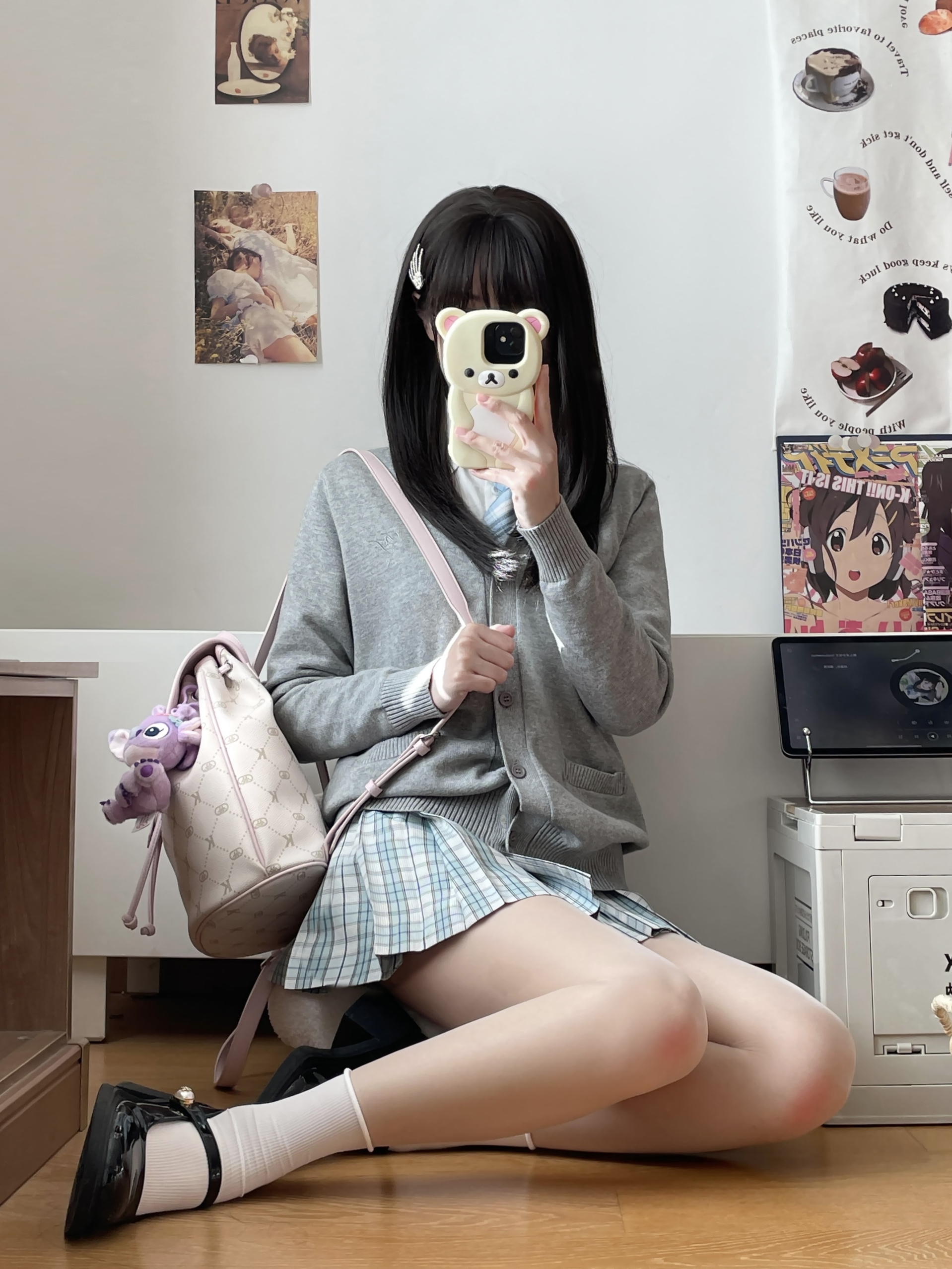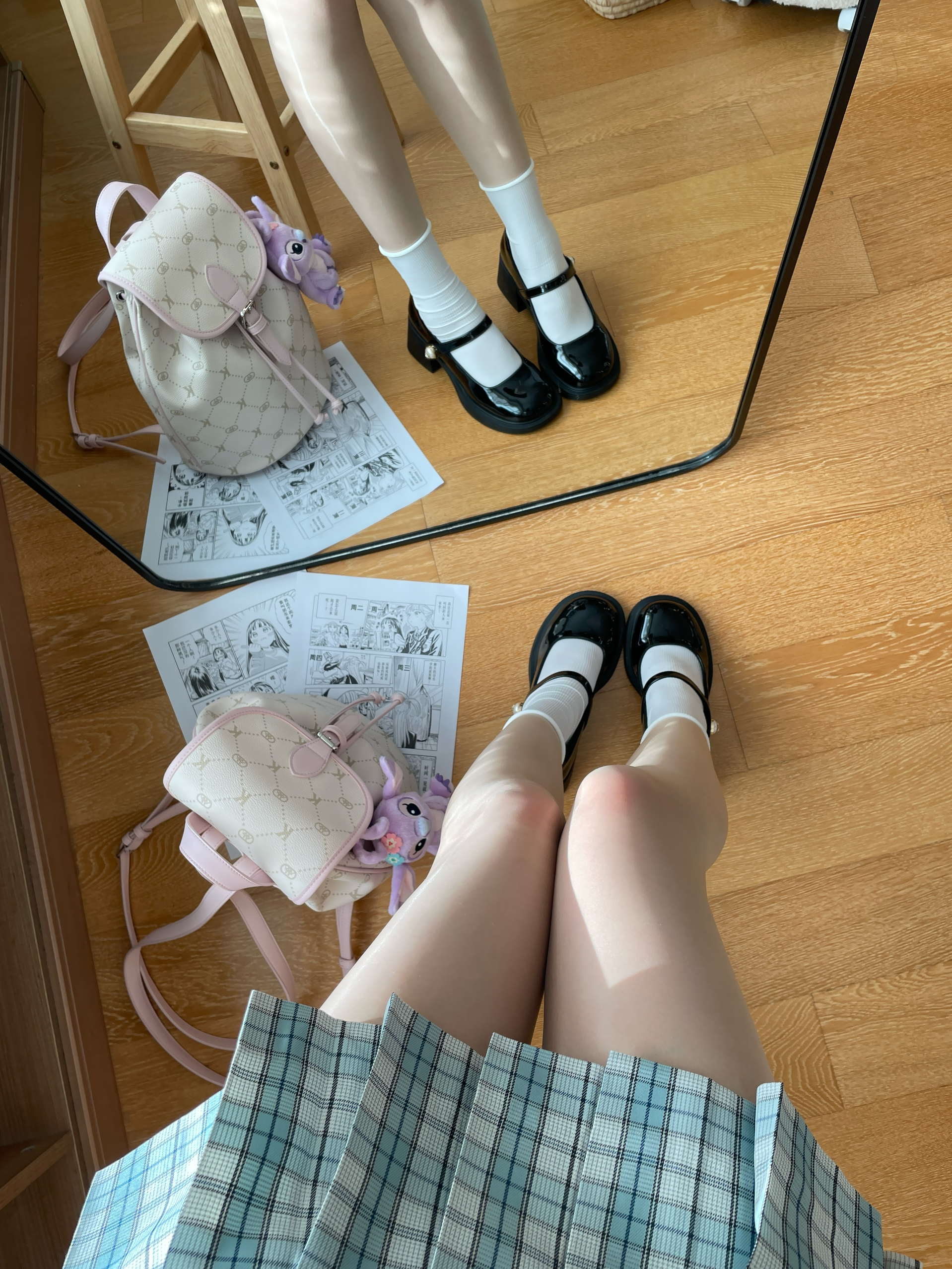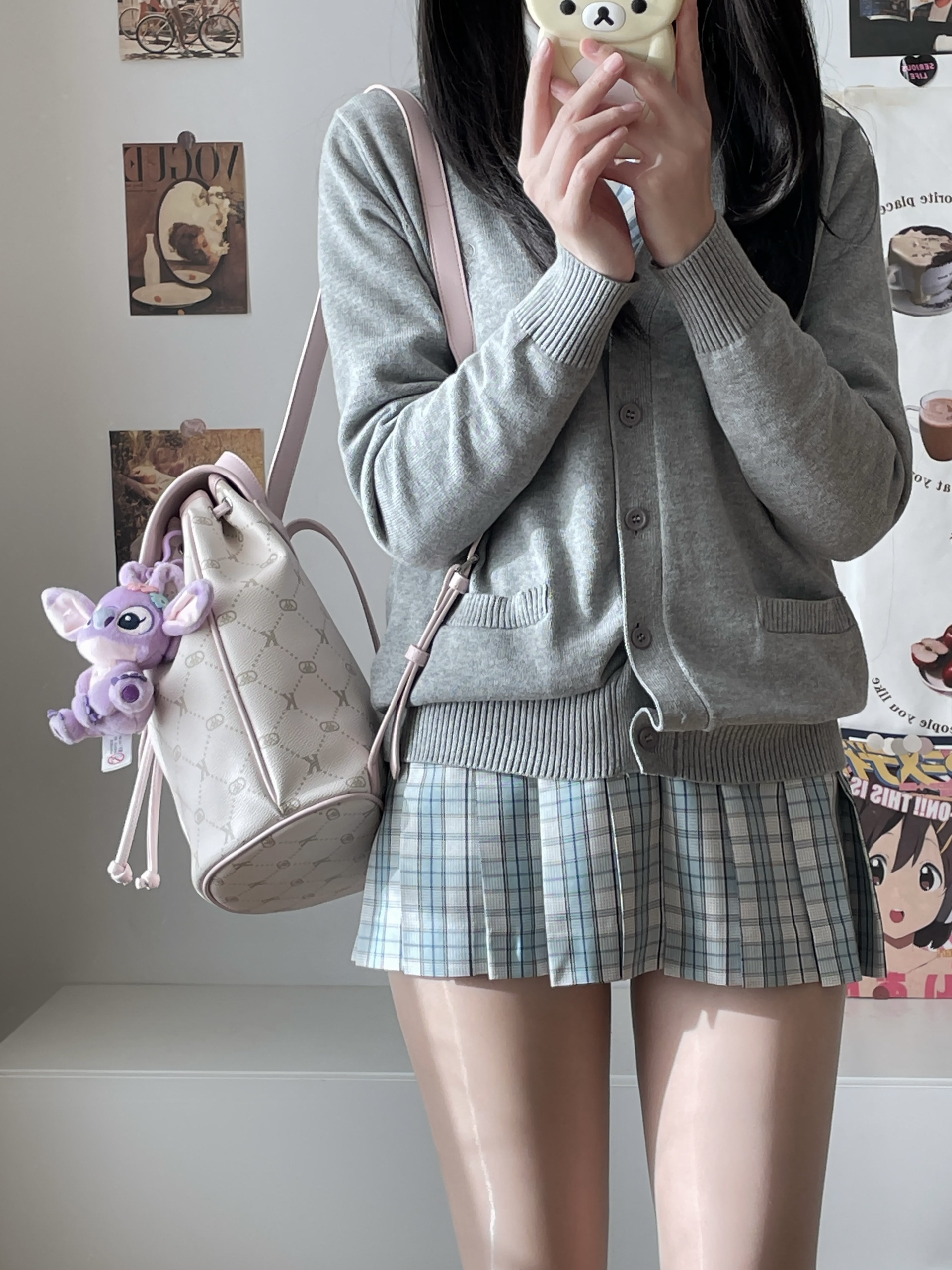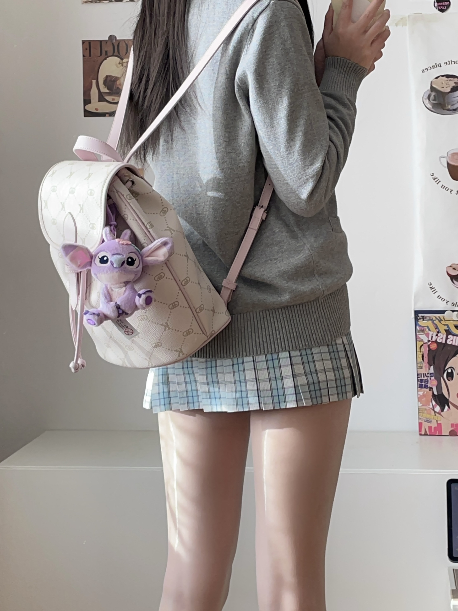 jk日常~ 今天是学院风的一身 jk套装搭了一个粉色双肩包 奶芙粉好少女的配色 大容量好适合早八 一套学院风get啦!