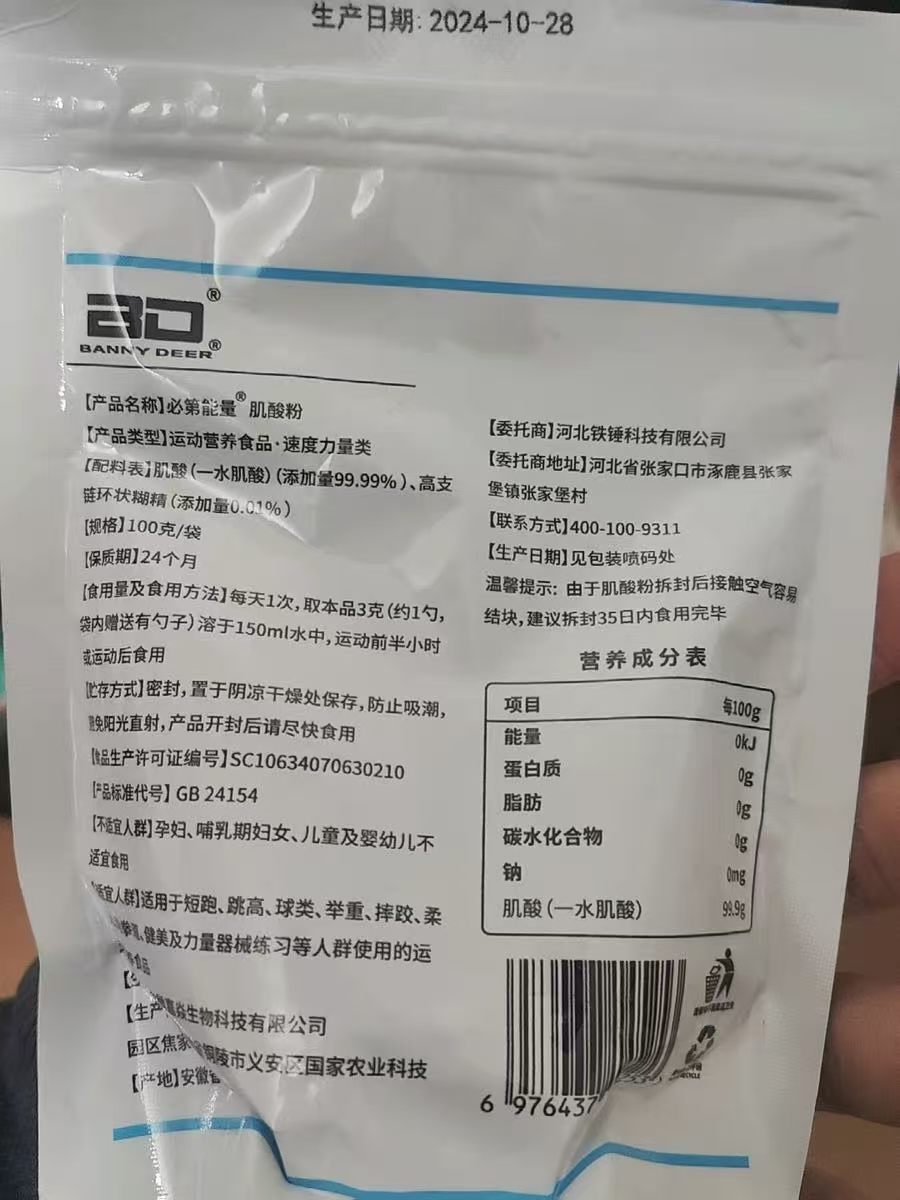 本篇笔记关联了BANNY DEER/BD能量 水肌酸粉 袋装 提高运动力量健肌提高耐力 100g等商品,为用户提供真实的使用体验和购买参考。