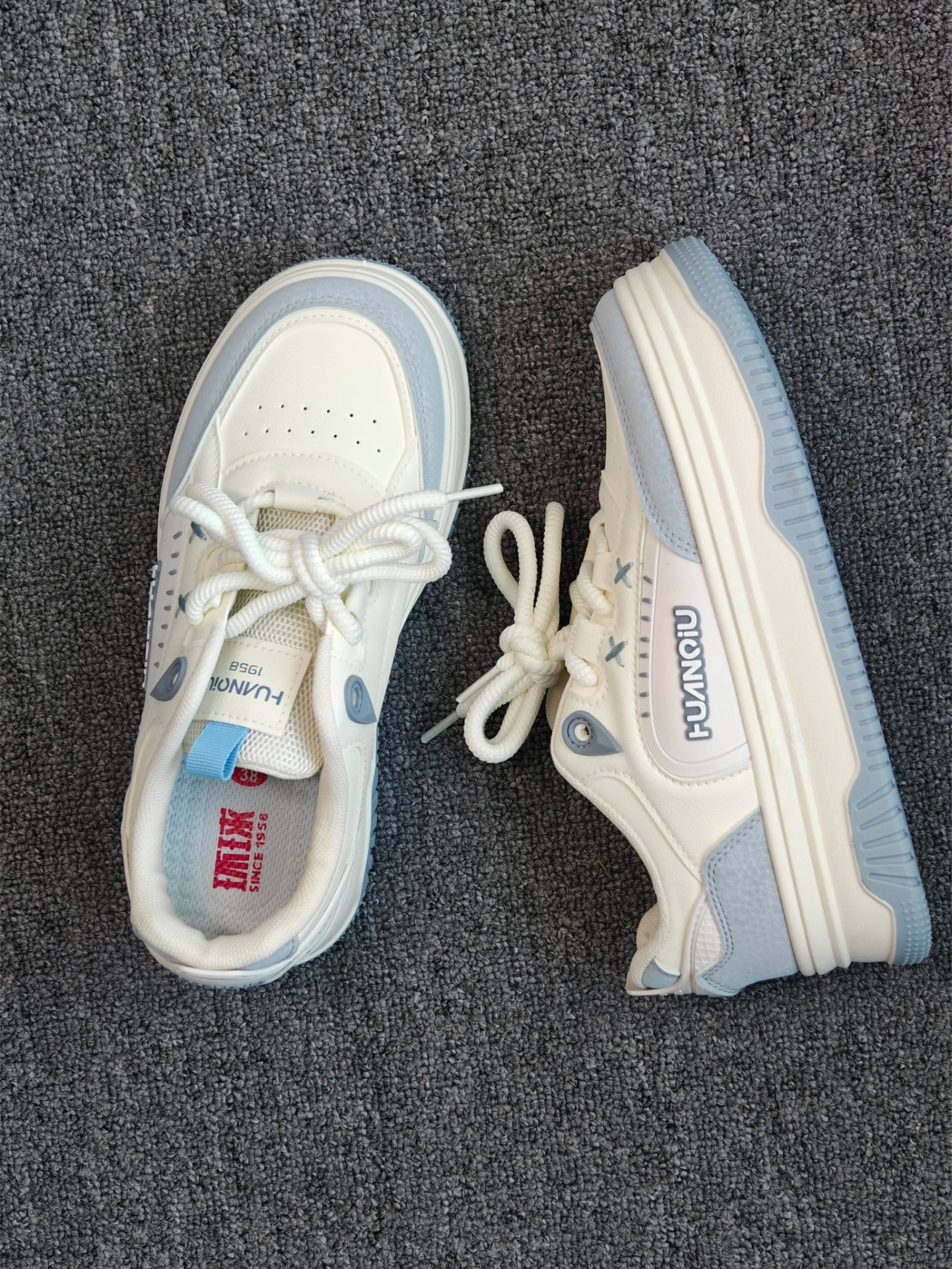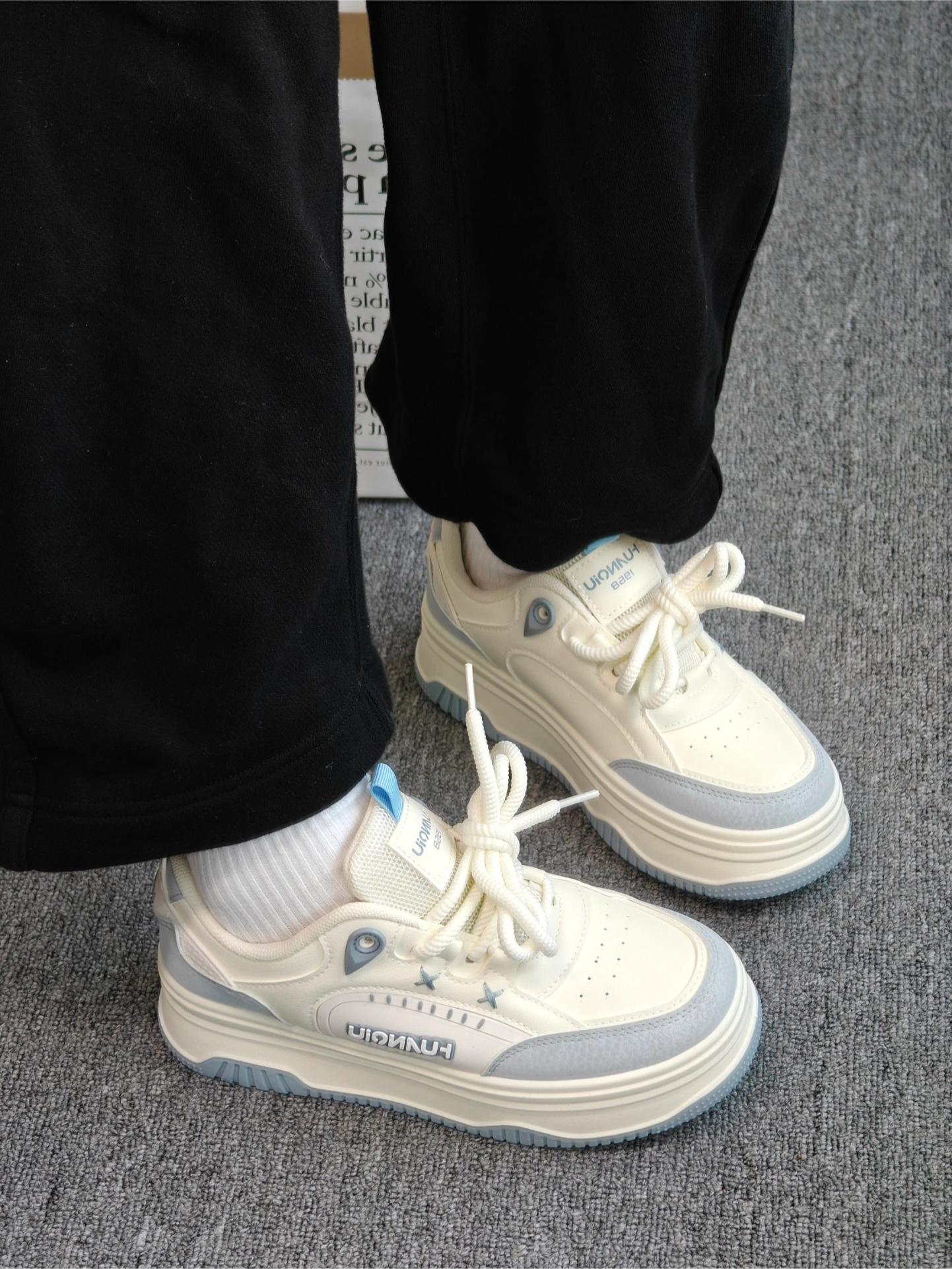 💙颜色是那种超级温柔的奶蓝色,就像蓝天白云的颜色被揉进了鞋子里,真的超级治愈。而且这种颜色很特别,穿上我感觉瞬间就变温柔了~ 厚底设计增高3-4公分左右,真的很贴心适合我这种小个子的女生,上脚鞋垫软软的,平常赶早八通勤穿也不会累脚。平常我会搭配休闲裤或者浅色牛仔裤以及同色系卫衣都不错。 #小个子女生增高鞋 #新年少不了不了这双鞋 #最近很喜欢的鞋 #甜酷女生宝藏板鞋 #秋冬鞋柜大焕新