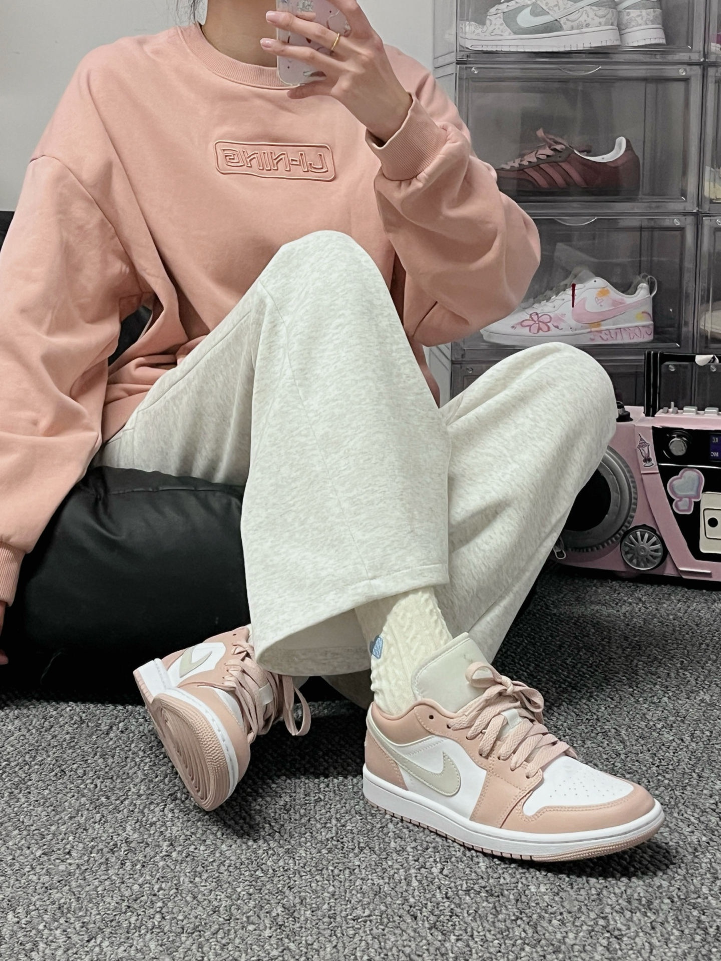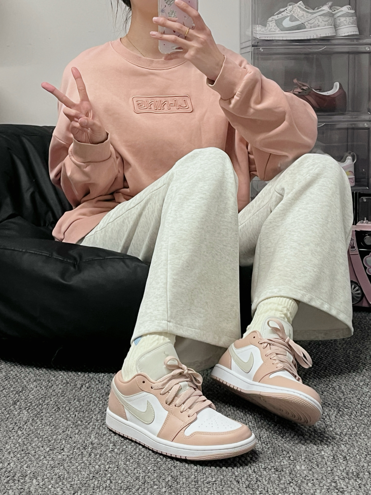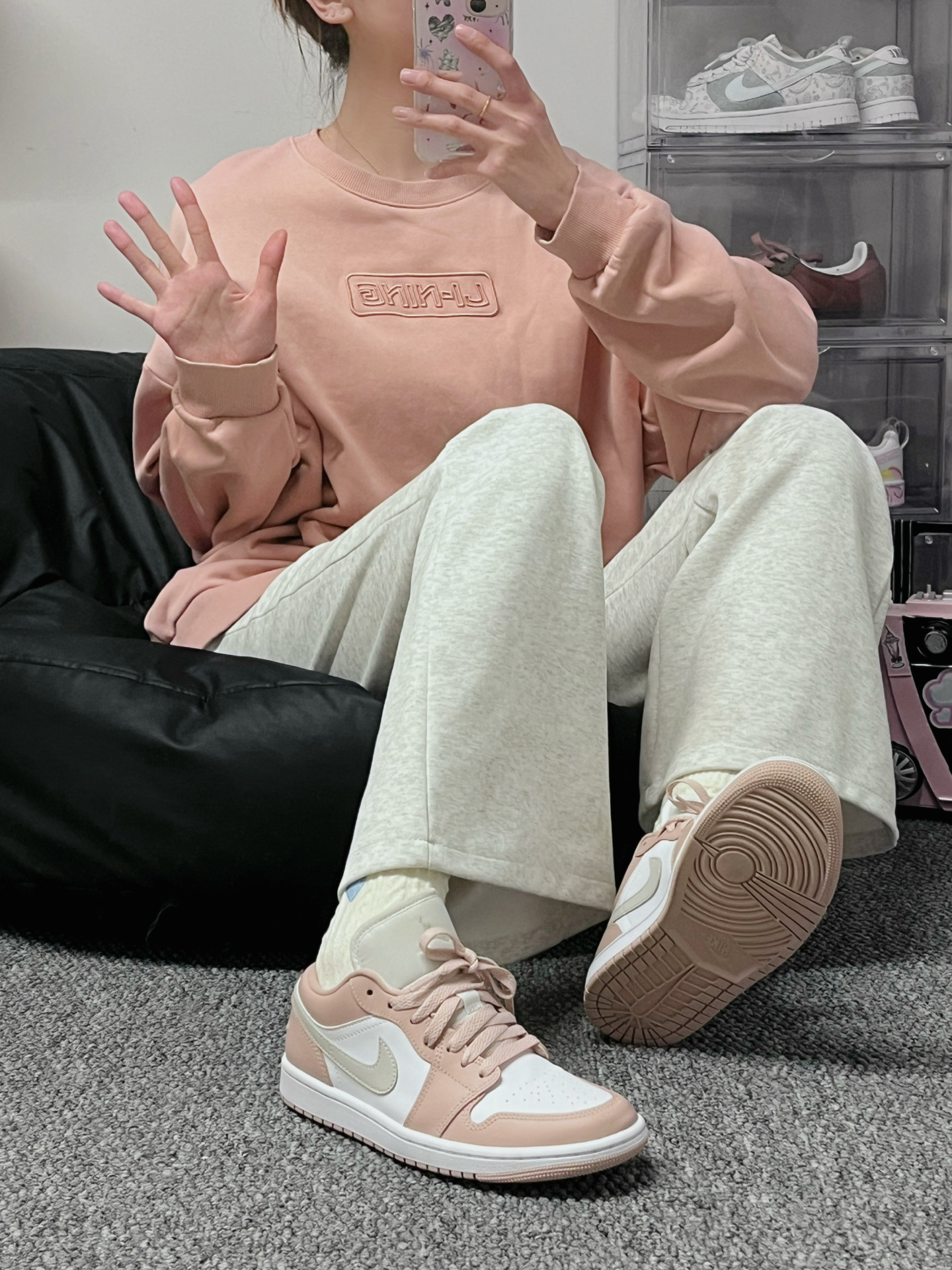 李宁的粉色卫衣➕粉色aj觉啦!! 这一套运动风也是少女心满满呀💗 #分享粉色少女感鞋品🎀 #休闲潮牌长袖无帽卫衣 #人人都是鞋类博主 #2024得物年度鞋王 #粉色系可爱