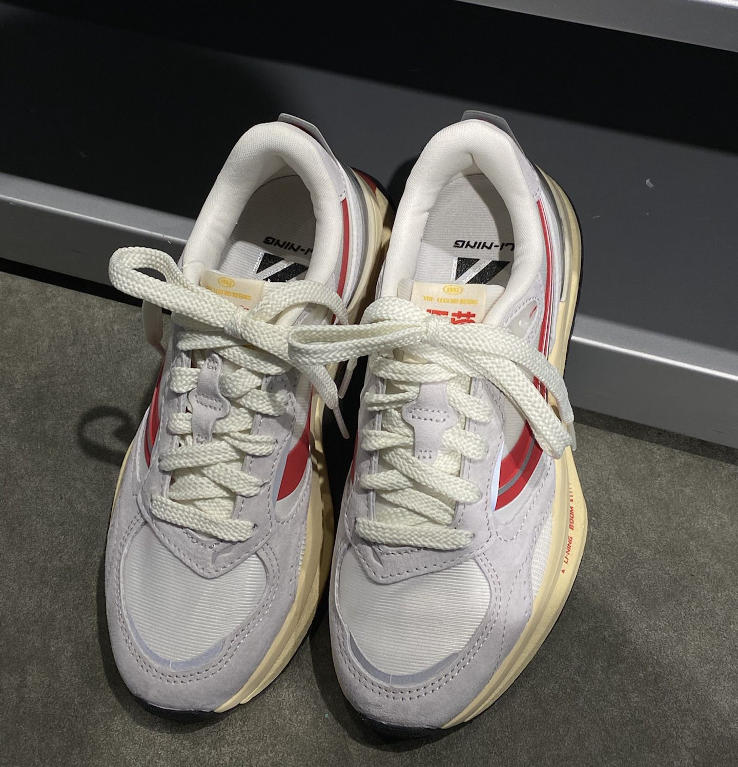 今天分享的是李宁的征荣系列的一双这款, 很适合新春穿搭!!! 这双鞋的外观真的非常好看!灰白搭配还配 过年气息拉满!后跟还有一块 上一点红色。 红色的刺绣,做工满满尽显高级感虽然价格廉价但是配置并不廉价这样的价格 给了这双鞋三个中底外加疆科技穿上软弹就 算走一天也不累脚。 因为三层中底的缘故给它带来的增高效果的 确不一般。但坏处是太高的底威脚的风险也 大大增加。如果你是日常穿搭用可以闭眼 入,但如...