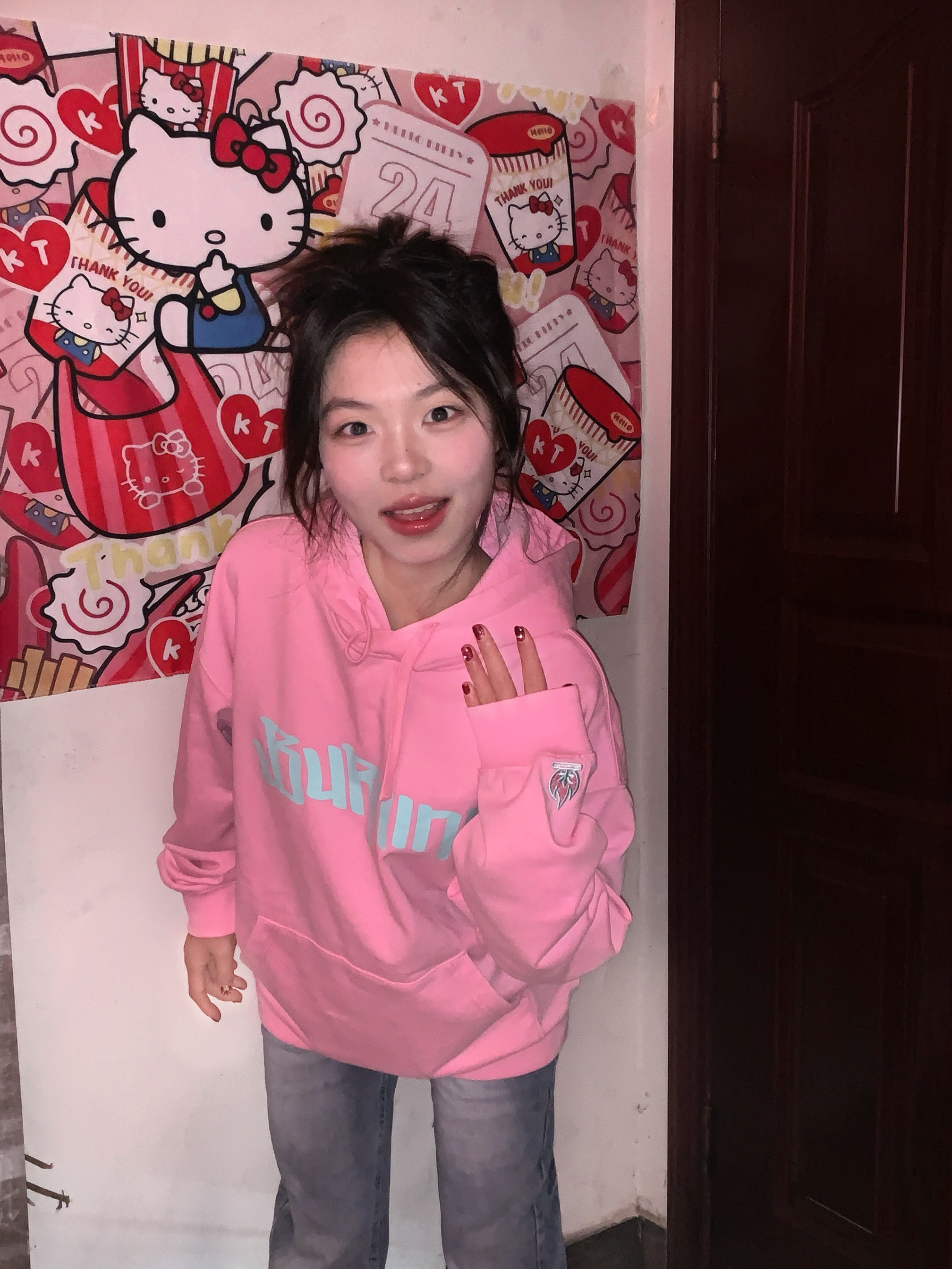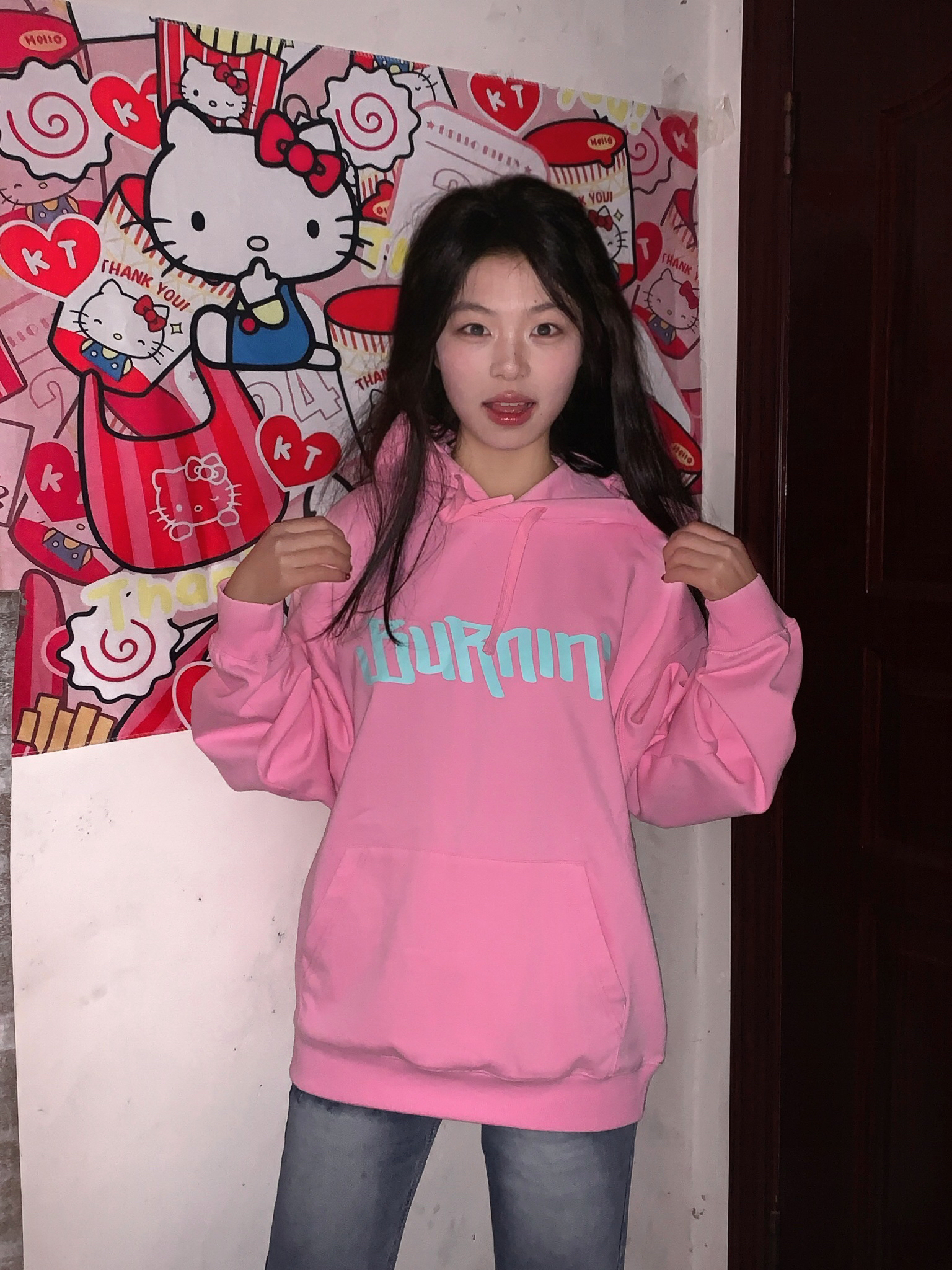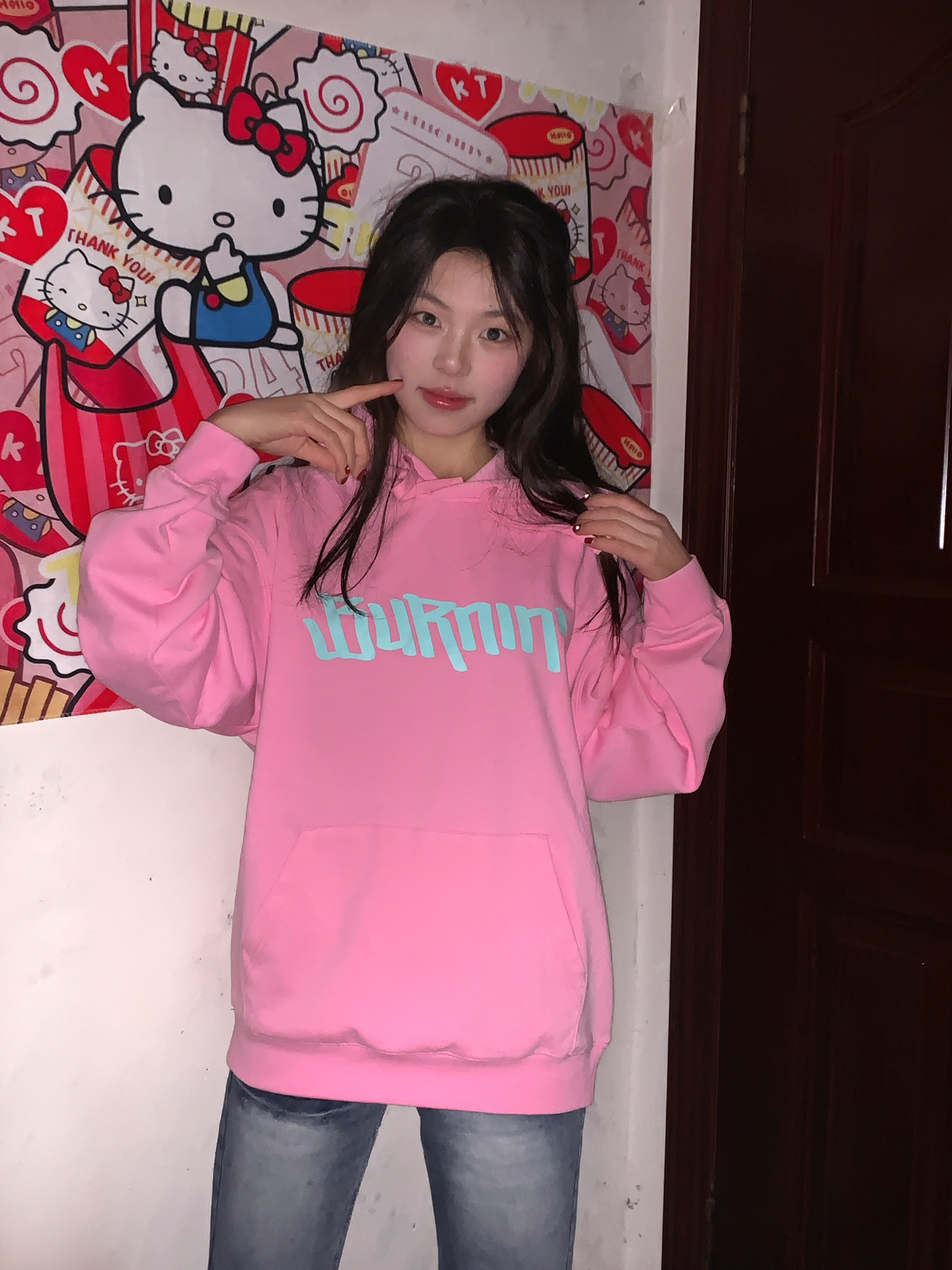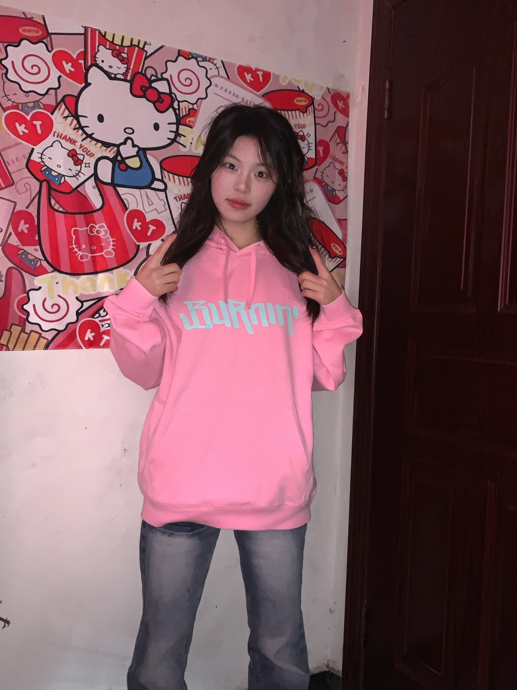 ^_^ Burnin 这件粉色卫衣我真的按头安利。 ^_^ 颜色是超正的甜酷粉,饱和度刚刚好,一点不俗气。面料厚实软糯,早春穿保暖又舒适。细节满分,袖口和下摆的收紧设计防风又利落,袋鼠兜兜增加了实用性和时尚感。 ^_^ 我搭配了一条牛仔裤,甜美的粉色与酷帅的蓝色碰撞,街头感十足。不管是逛街还是和朋友聚会,穿着它轻松成为人群焦点,Burnin 真的太会了!