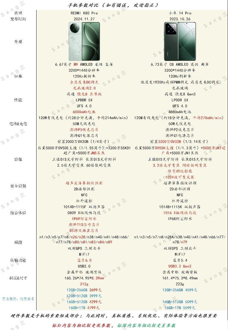 【REDMI K80 Pro「对比」小米 14 Pro:谁是性价比与高端的最优解?】,由用户 Sang三 分享,来自上海。这是一篇来自识货社区的真实用户分享笔记。