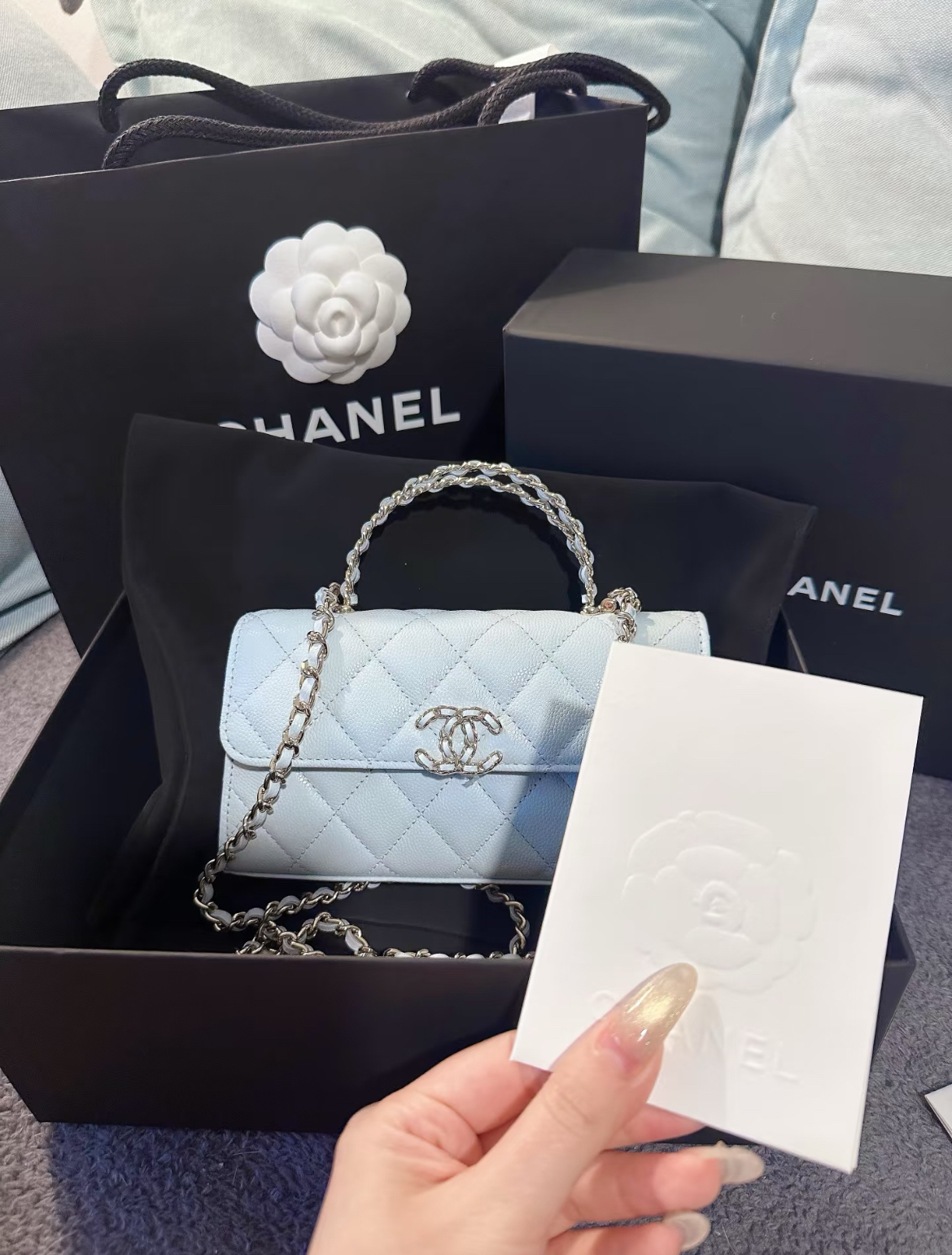 一开始去了太古店,都是些白色和其他颜色,31nano也只有很小的size,跟朋友一路走到中环太子大厦店,walk in问了一下居然直接就有黑kelly,谁幸福了!!黑色的饭盒包看别的客人手上拿了问了一下也有货 最后还是选了kelly 会比较耐看一些 #香奈儿 #香港 #香奈儿kelly