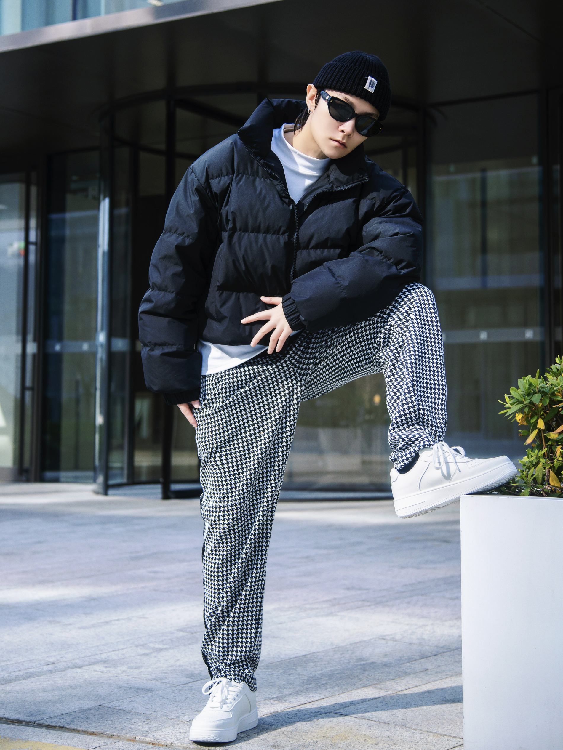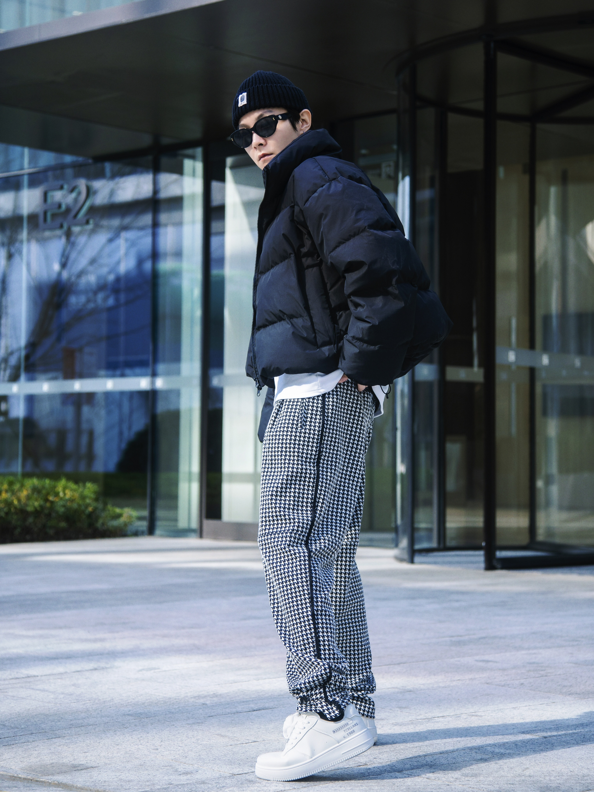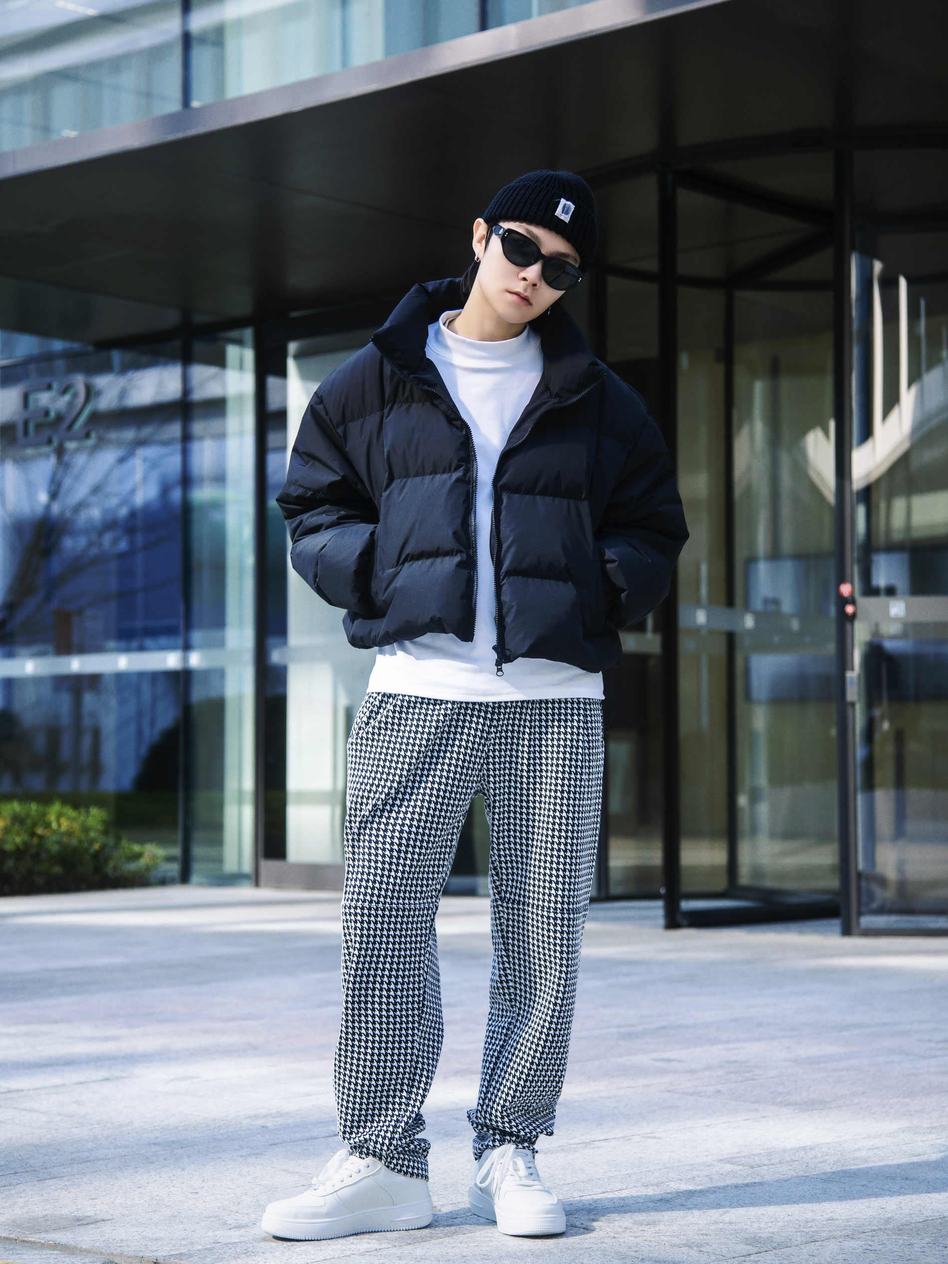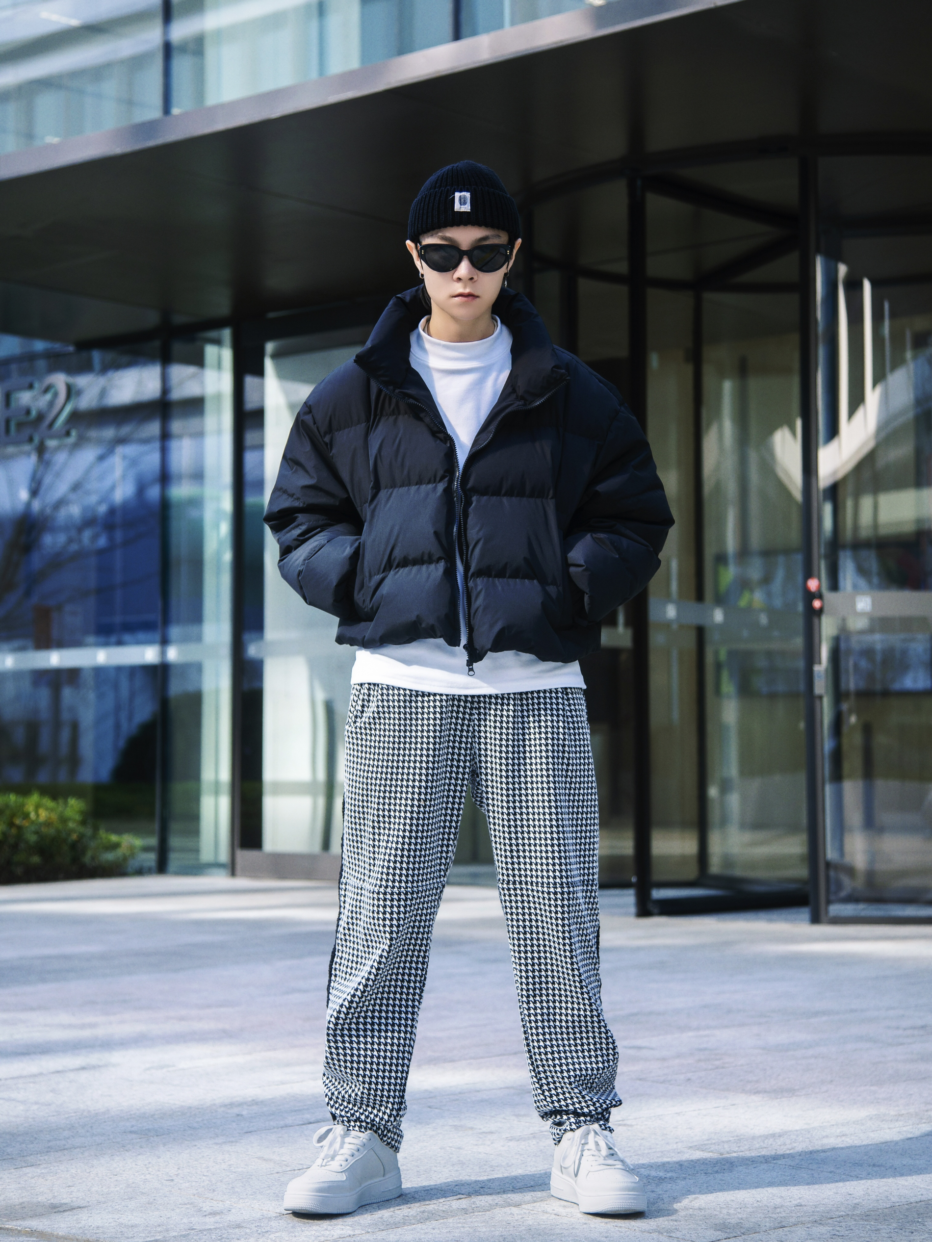 今天来跟着肯豆学羽绒服穿搭 穿搭指南: 上身一件半高领德绒打底 宽松版型 保暖的同时不失设计感 外搭一件黑色短款羽绒服 肯豆风腰线羽绒服今年火到不行 下身一条黑白格休闲裤 上脚一双tcellars白色板鞋 小板鞋可以说是四季百搭哦 鞋身轻盈 逛街不累脚 整套基础色搭配 简约而不简单