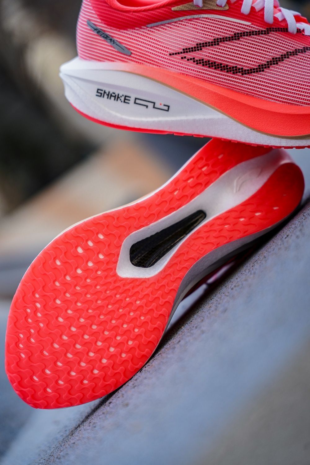 作为李宁甚至国产所有品牌跑鞋的销量T0级别,飞电C系列,对于学生党的吸引力,实在是太强了。即使他们很多自己也知道,穿一整天碳板鞋是不好的,但谁叫飞电的颜值和后期的性价比都很高呢。 这次5C我感觉也是特意降低了一些,碳板的刚性和整体的驾驭门槛,上脚的压力是没有那么大了。这双蛇年限定采用了贪吃蛇的一个设计灵感,整体颜值还是不错的,但是设计上感觉是稍微差了点意思的。