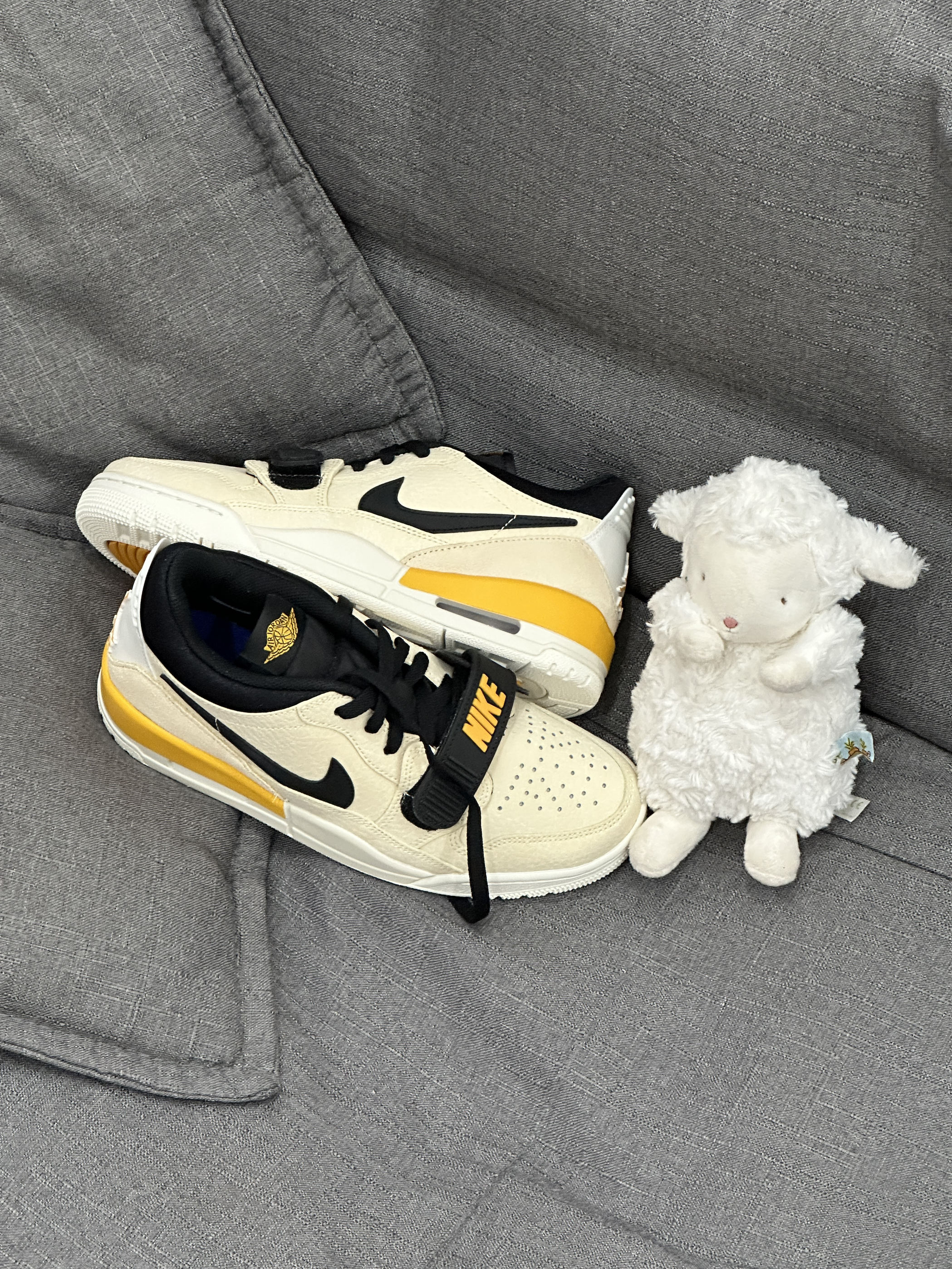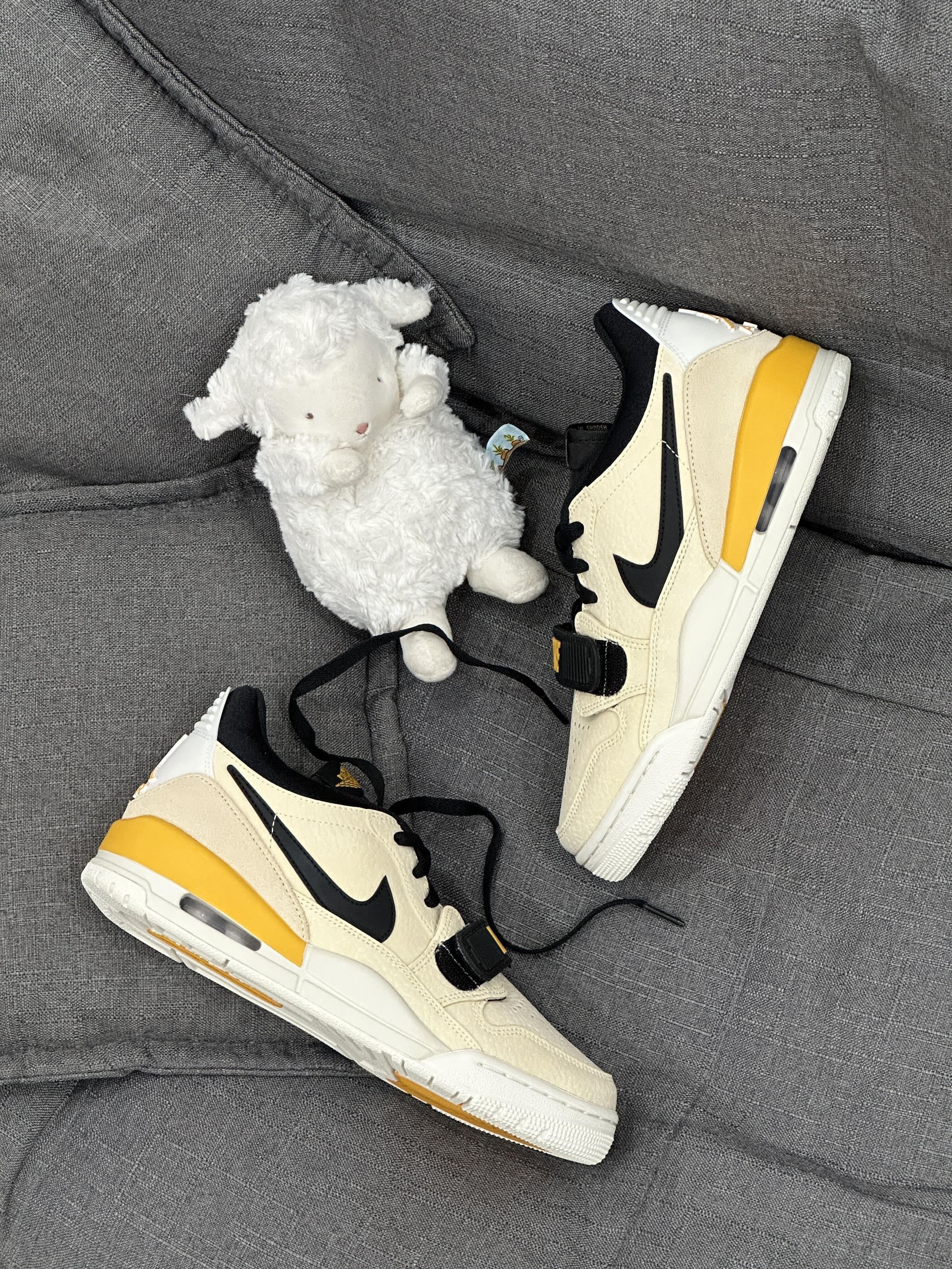 👟:Air Jordan Legacy 312 low "pale vanilla" 橘黑色 hello,这里是陈白羊🐑! 我又来分享情侣鞋啦~ TA的鞋面以奶黄色为主调,搭配黑色框架以及SWOOSH,细节部分则以亮眼的橘色点缀,既有复古的感觉,又非常的清新靓丽,真得hoho看呀! 荔枝纹路皮革与翻毛皮材质组合鞋面,质感也是敲在线的。奶huhu的配色日常搭配起来更是随意,无论搭配阔腿裤工装裤...