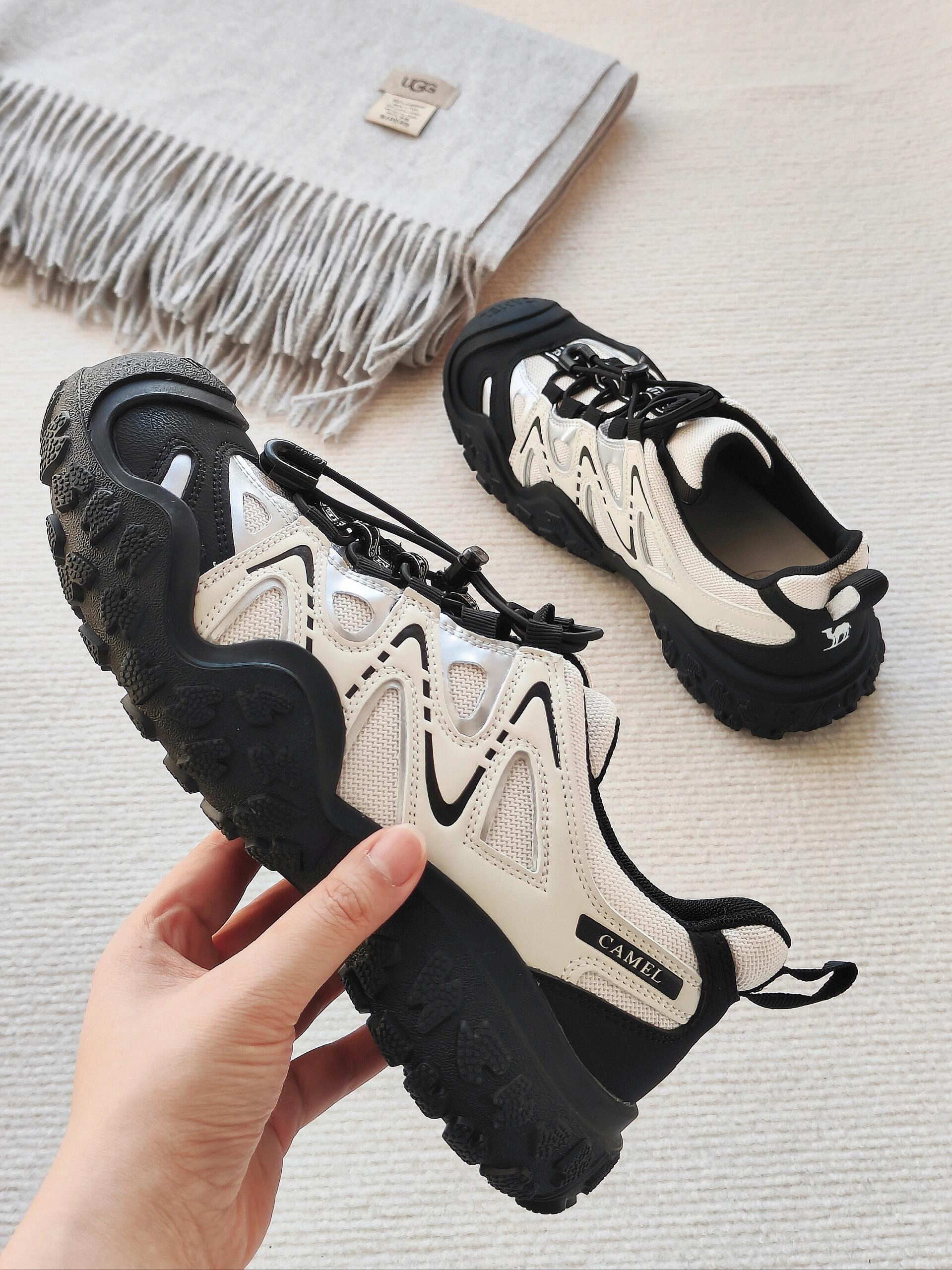 👟骆驼黑白鞋,丑萌超百搭! 特点: ● 透气舒适 ● 防滑耐磨 ● 搭配多样 街头户外皆相宜,助你成潮流达人! 户外穿,真的很青春!