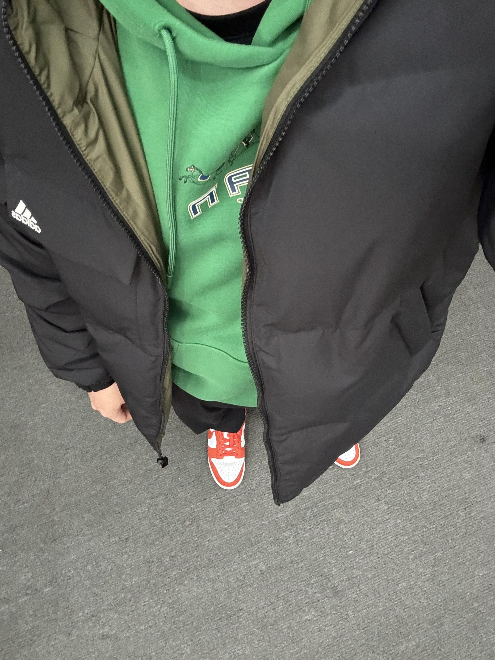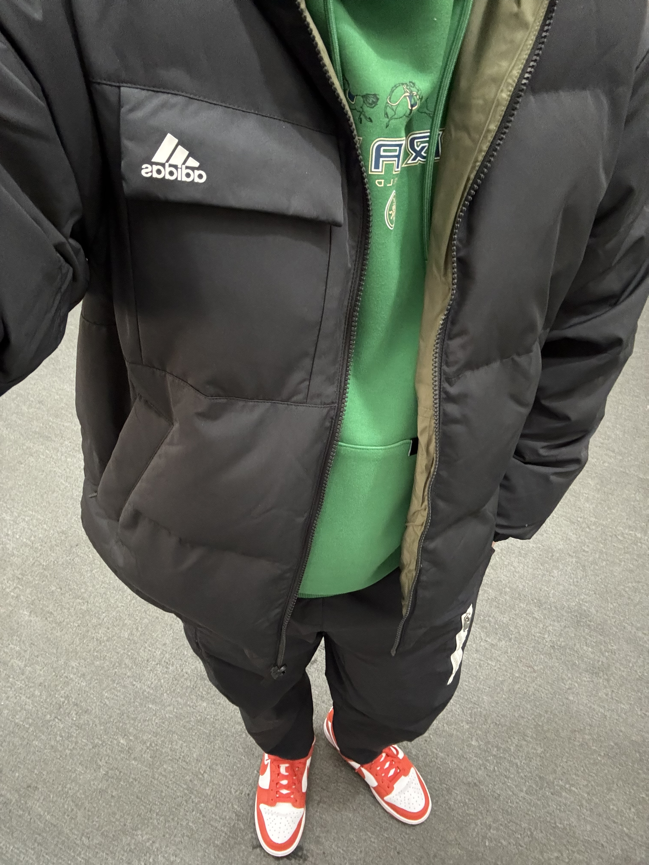 #2025开年Fitcheck #新年fitcheck #韩系穿搭羽绒服自adidas #羽绒服就买它 #冬日羽绒服已就位 #dunk分享 #板鞋才是万金油 #人人都是得物博主 这几天温度下降好几度 刚好拿出前些天买的羽绒服趁冷上位 像我这种粗糙的男人,选黑色准没错 双面穿里边豆绿也不怕脏 冬天保险的暗色系是绝大多数男生首选 但一双鲜艳的鞋履也必不可少 近期这双Dunk常伴左右 白蓝aj1...