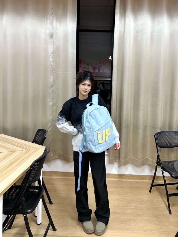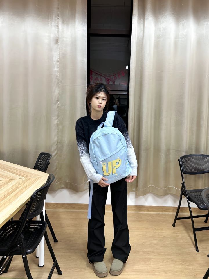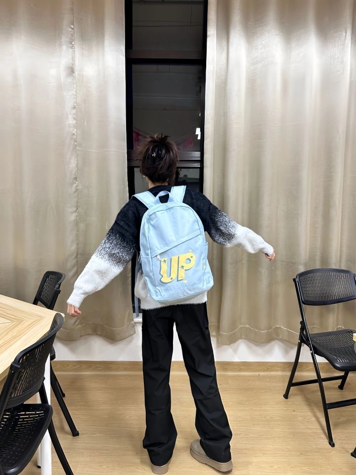 这只书包我喜欢好久啦~ 颜色真的很耐看,包包容量也蛮大的 很适合早八学生党!嘻嘻嘻 我觉得它很显年轻 浅蓝色很文静呢 背上这只包包我感觉自己都重返女高啦💥