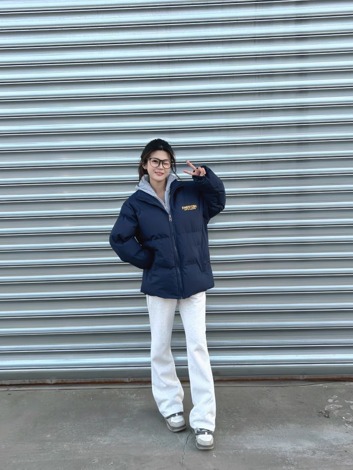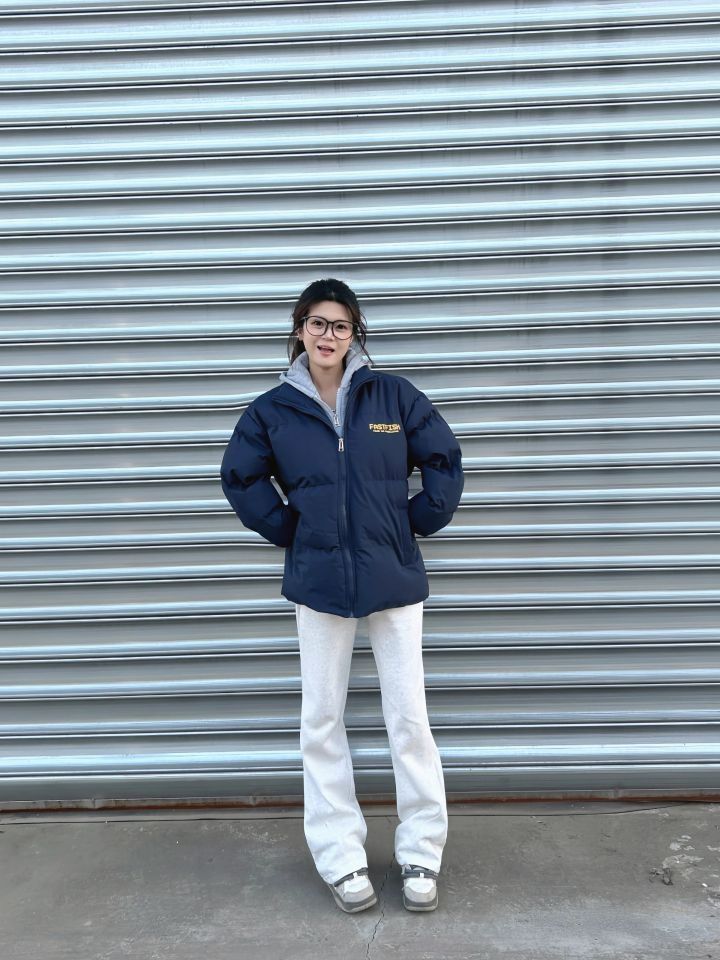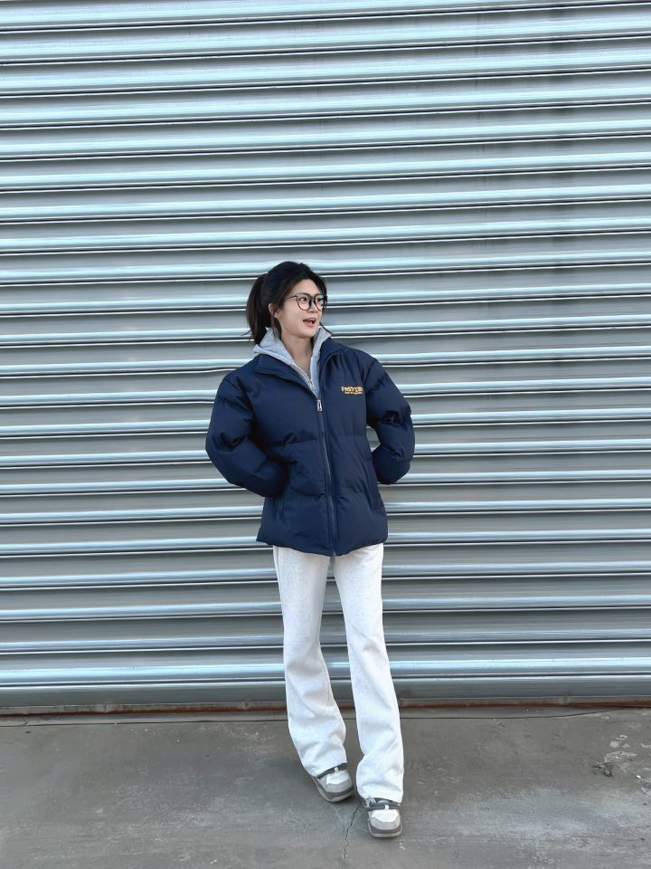 假两件好好穿呀!很厚很保暖! 假两件棉服也太保暖了 而且藏青色真的显白! 衣服的印花设计感也很好 搭配灰色休闲裤很慵懒日常~ 衣服颜色是真好看妥妥百搭款了 秋冬这样穿针不戳💥