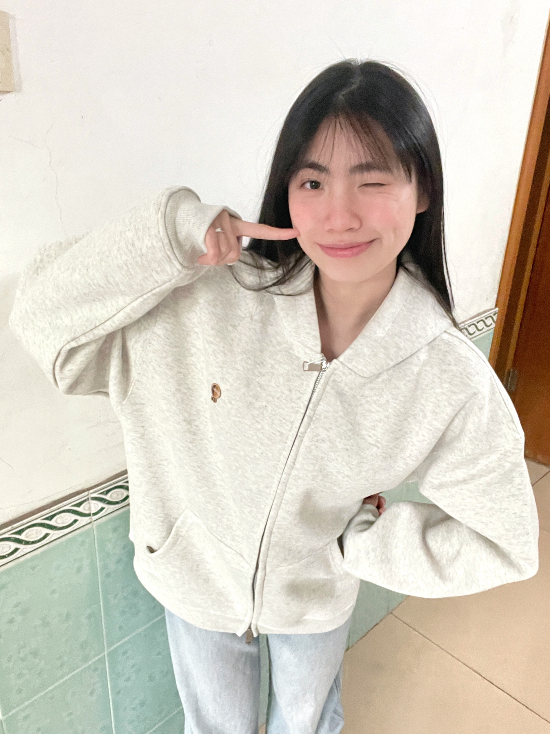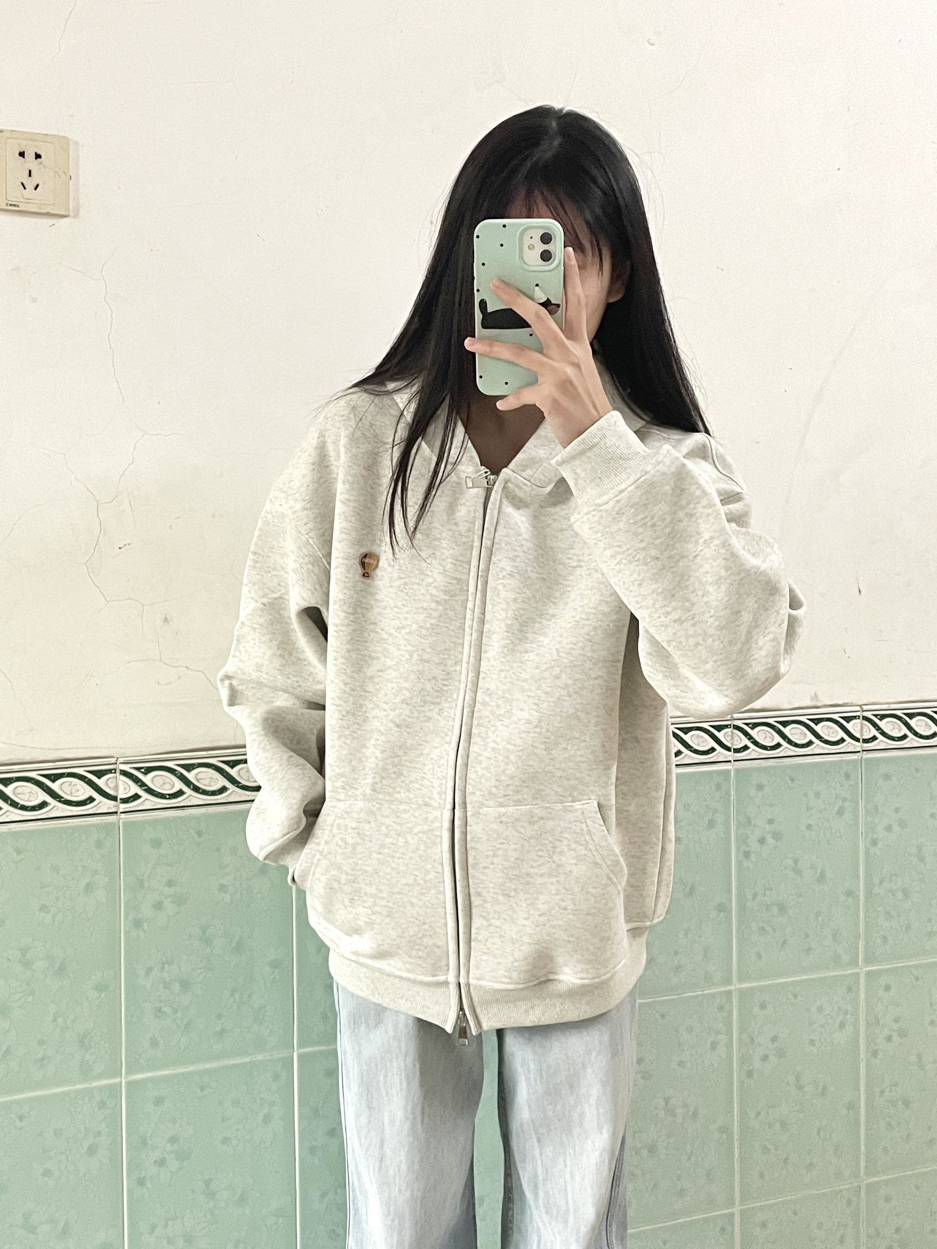 166 102穿的是M码 是双拉链的哦 纯色的话搭配起来就更加简单 不用怕出错 我是搭配牛仔裤穿的喜欢的宝宝可以参考一下哦