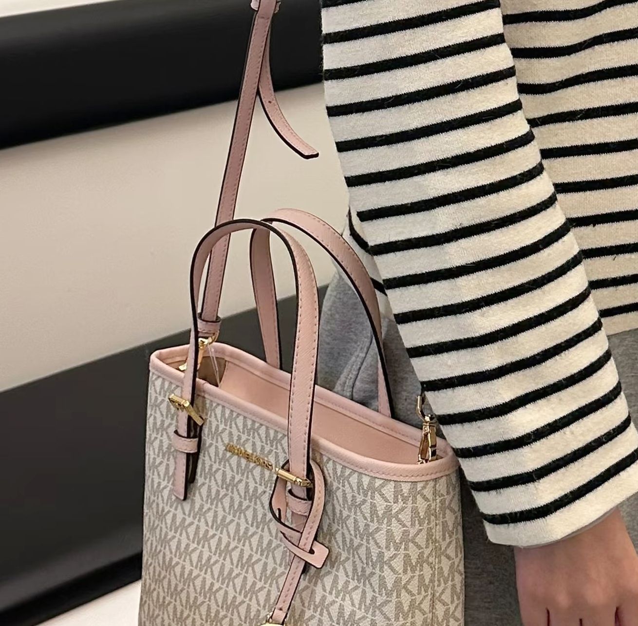 本篇笔记关联了Michael Kors Jet Set 迷你 老花满印LOGO徽标拼色复古菜篮子托特包涂层配牛皮拉链开合斜挎单肩手提包 香草白色等商品,为用户提供真实的使用体验和购买参考。