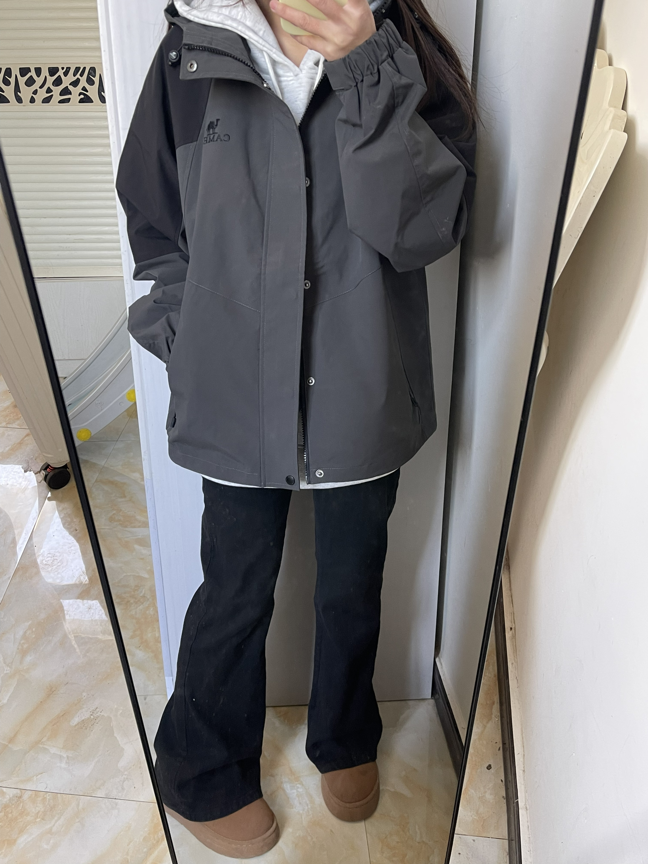 本篇笔记关联了【baby同款】Camel/骆驼 进藏工装风抗撕裂抗静电防泼水防风加绒加厚户外单冲透气长袖硬壳冲锋衣 M13CA6V040 页岩灰/幻影黑等商品,为用户提供真实的使用体验和购买参考。