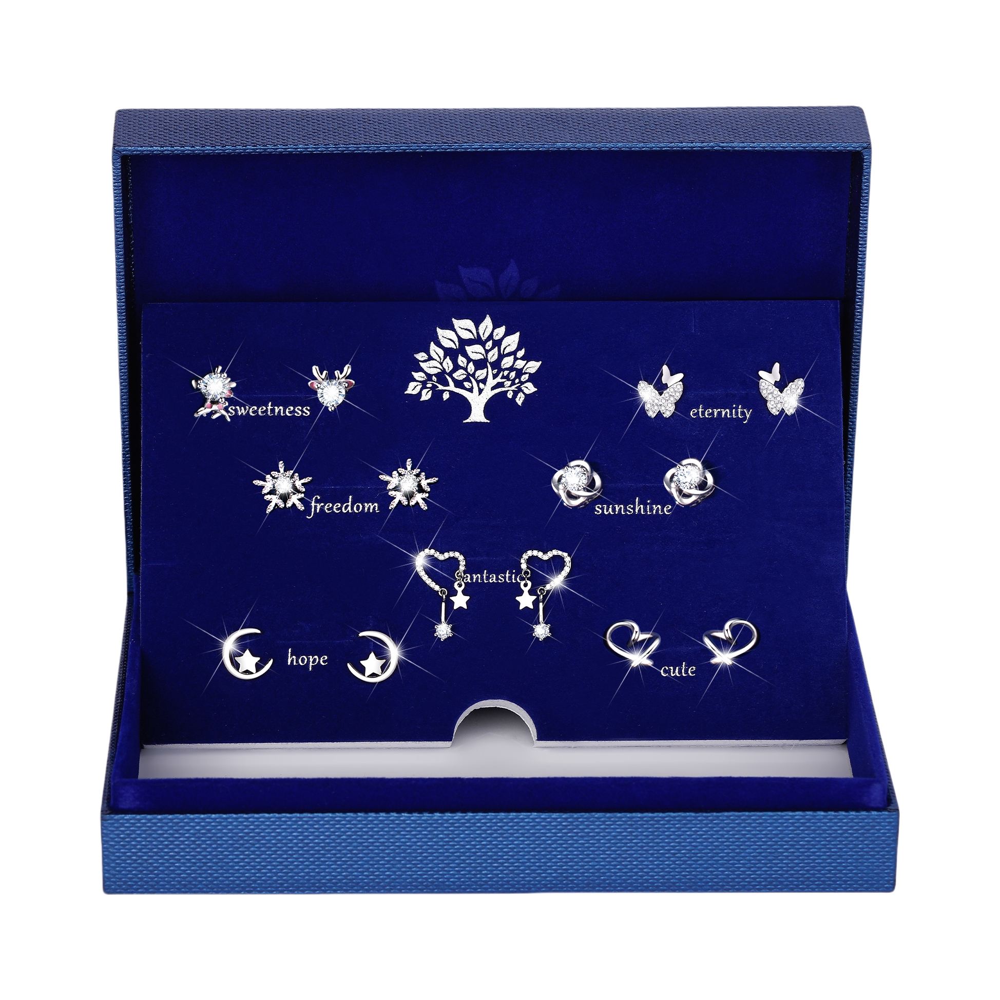 终于不用选择困难啦! 这个幸运星期给我安排好了一周不重样耳饰。 一共七对耳钉,不同风格。 可爱麋鹿,精致的蝴蝶,简约大气的爱心等……还可以自己随意组合,适配不同妆容。 耳钉做工也很好,精致有质感,S925银针,佩戴也不怕过敏。