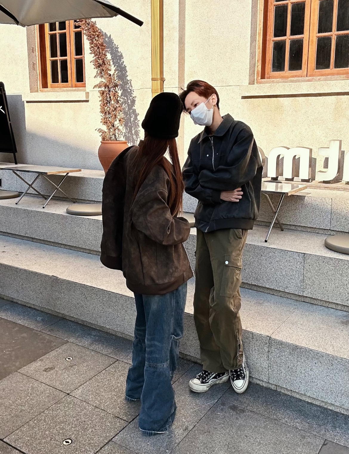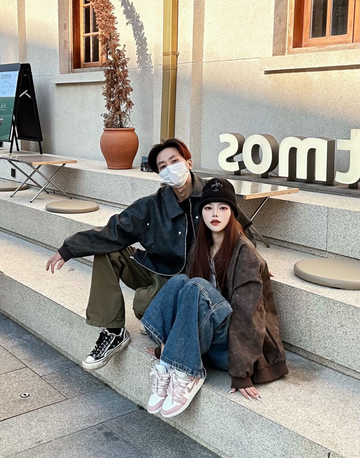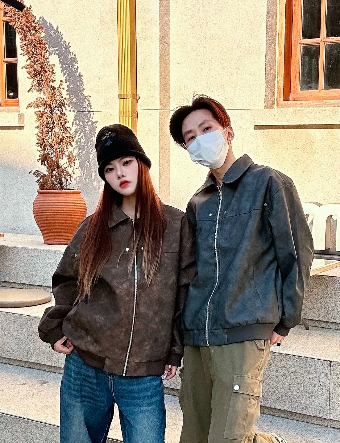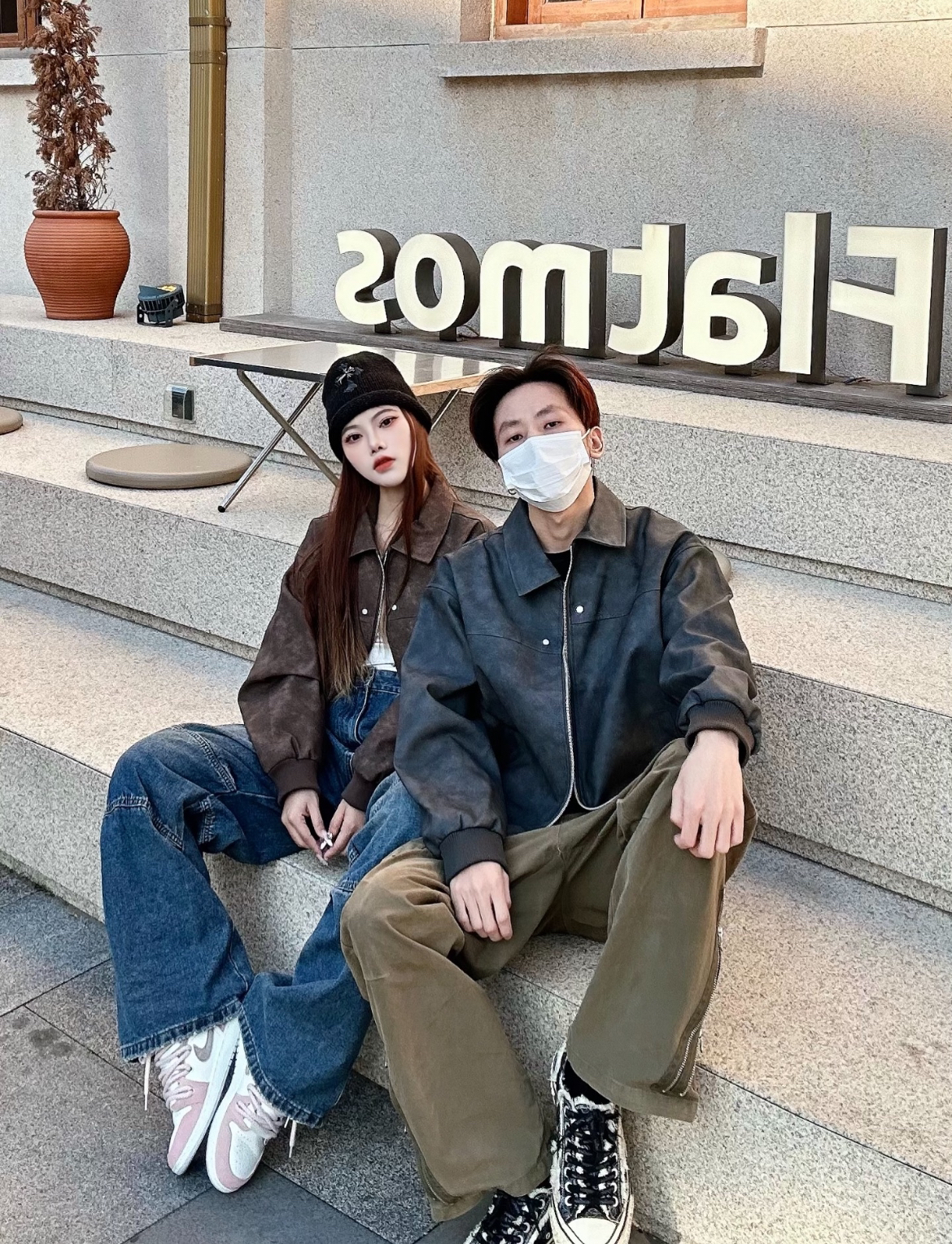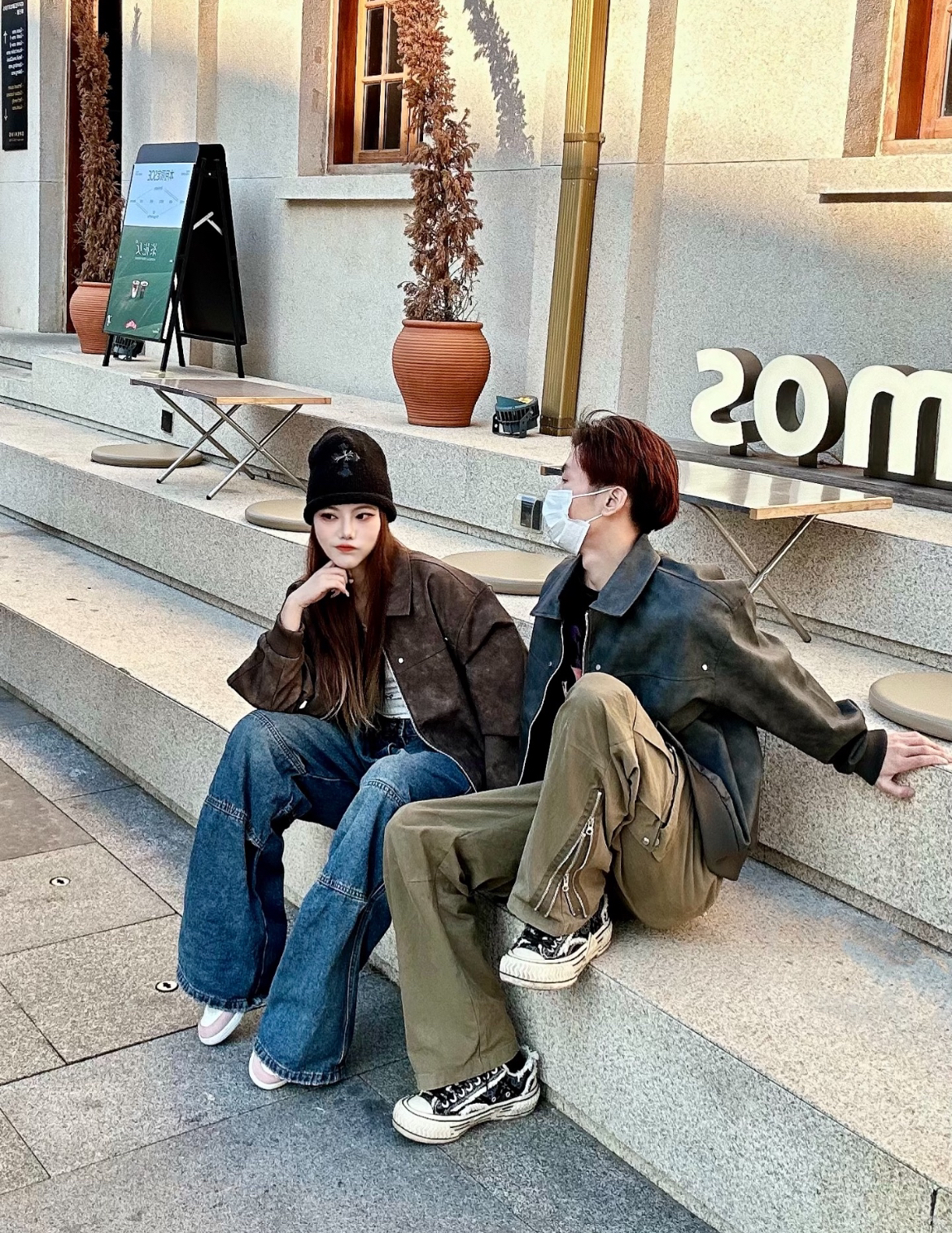 和男朋友很搭 很酷的一天美式高街情侣 怎么舒服怎么来 复古机车皮衣简直不要太帅啦 版型挺阔有型 简约又很高级 完美得诠释了我们超A的酷飒感 日常逛街拍照简直不要太出片