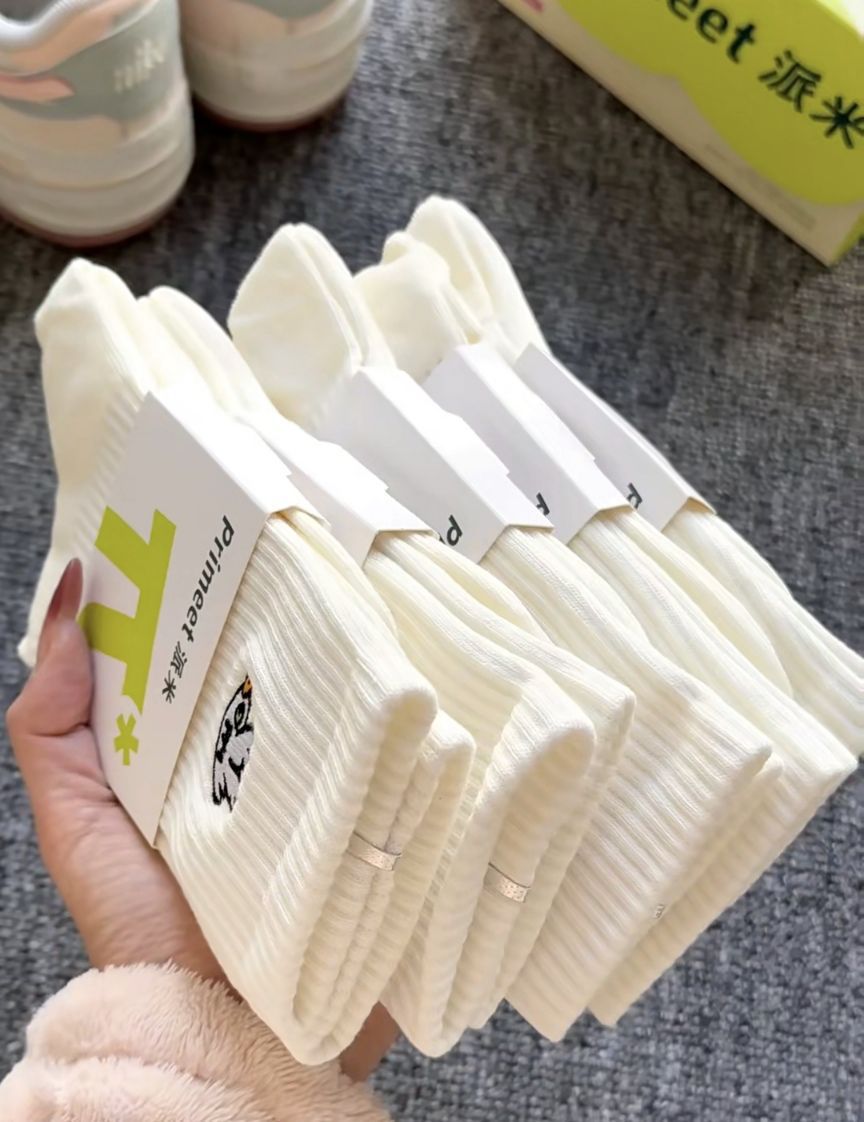 奶乎乎的小白袜和我的新鞋也泰搭啦袜子是纯棉的材质 我觉得穿起来蛮舒服滴 一盒里面有五双 随便一双搭配我的鞋鞋都吼吼看 #袜子简直不要太百搭#又发现宝藏白袜