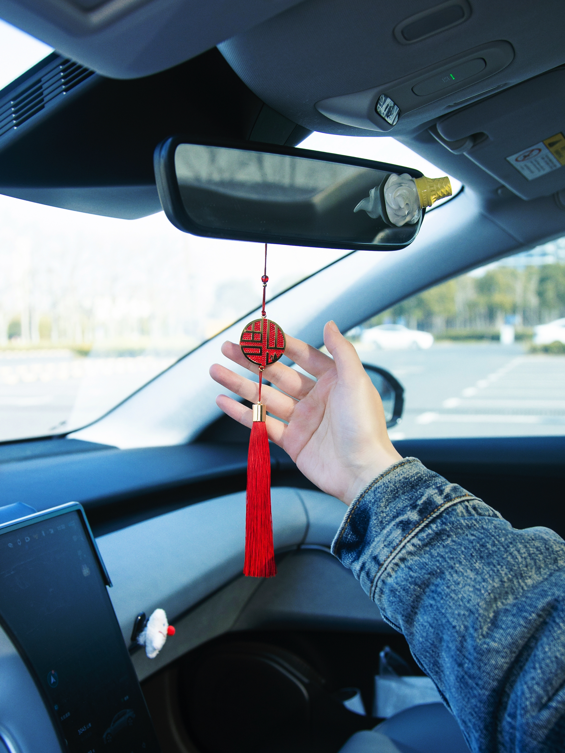 马上就要过春节啦🧨 给我的小灰🚗也准备了新年礼物🎁 平时就喜欢在车上放各种内饰 新年换上了施华洛世奇的福到新年挂饰 红色水晶上有倒写的金色“福”字 拿在手上也蛮有分量感的 有质感有寓意 给2025添福气 要快乐要暴富呀 把它挂在中央后视镜上 新年氛围感这不就有了嘛🧧 那就祝自己和大家 蛇🐍年 福气绕哦~