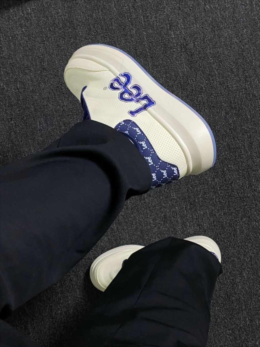 嘻嘻(*/\*),快来快来,偷偷告诉你们。 懒人一脚蹬,真的超爱 Lee白色的鞋面后跟加了蓝色的这两个色系搭配起来就没有那么单一。 出门脚一蹬,直接就穿上了,穿起来嘎嘎方便,而且上脚脚感舒服。 重点是十分好打理,不用担心清理的问题一擦就干净了。