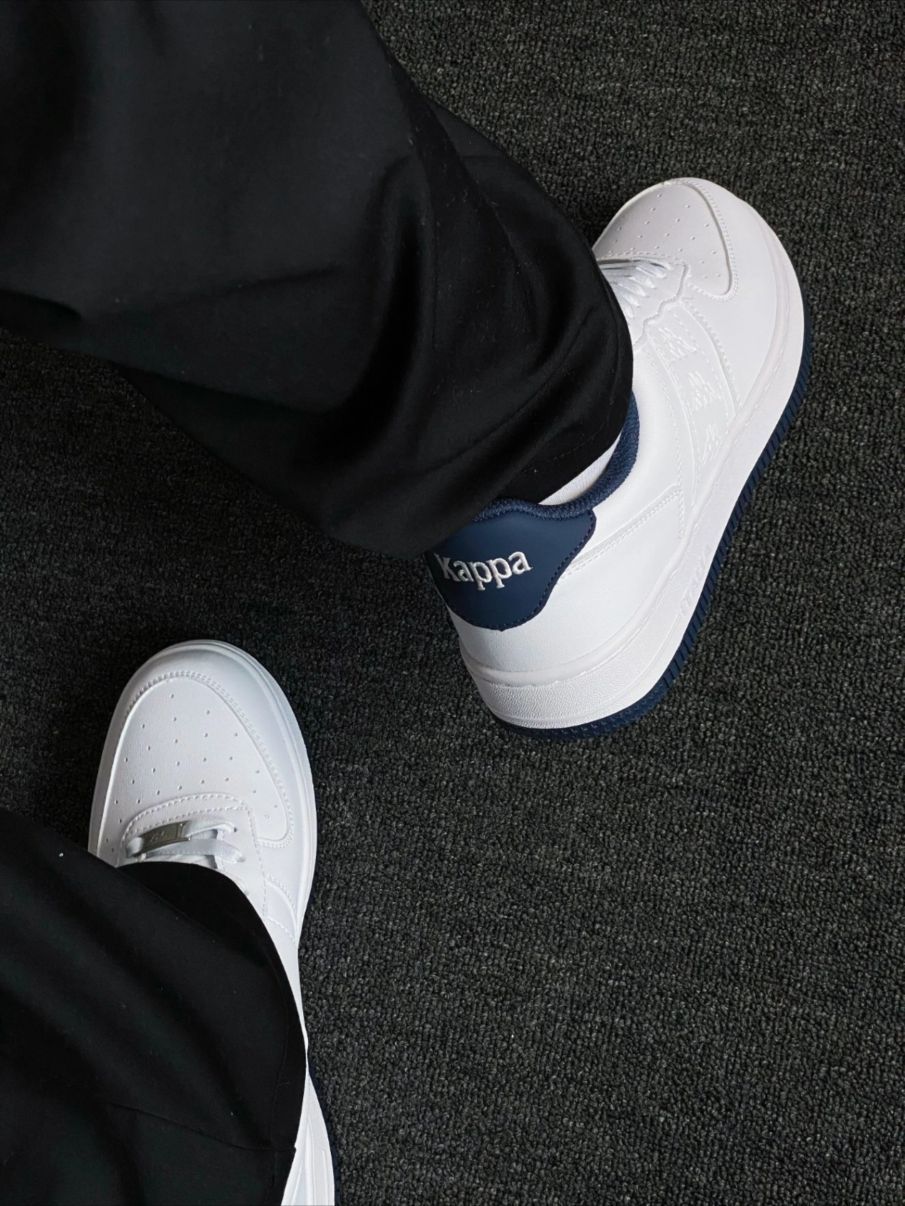啊啊啊啊啊啊!快看俺新入手的kappa小白鞋,真的超爱,不用说又是能穿到烂的一双。 白色皮质鞋面好打理!下雨也不怕湿鞋√ 鞋底感觉软乎乎的,还透气,现在穿也不闷脚丫。 它蓝色大底,内衬也是蓝色,有一点点厚度鞋底还有点小增高,搭配个拖底西裤很飒就。