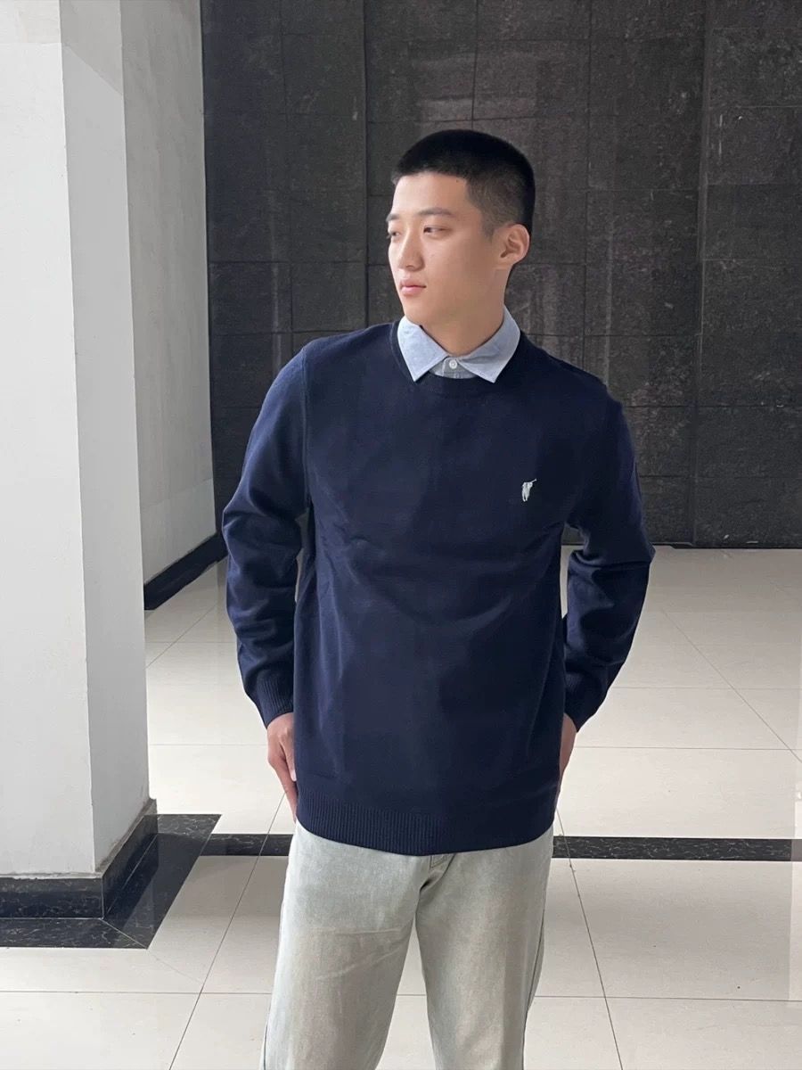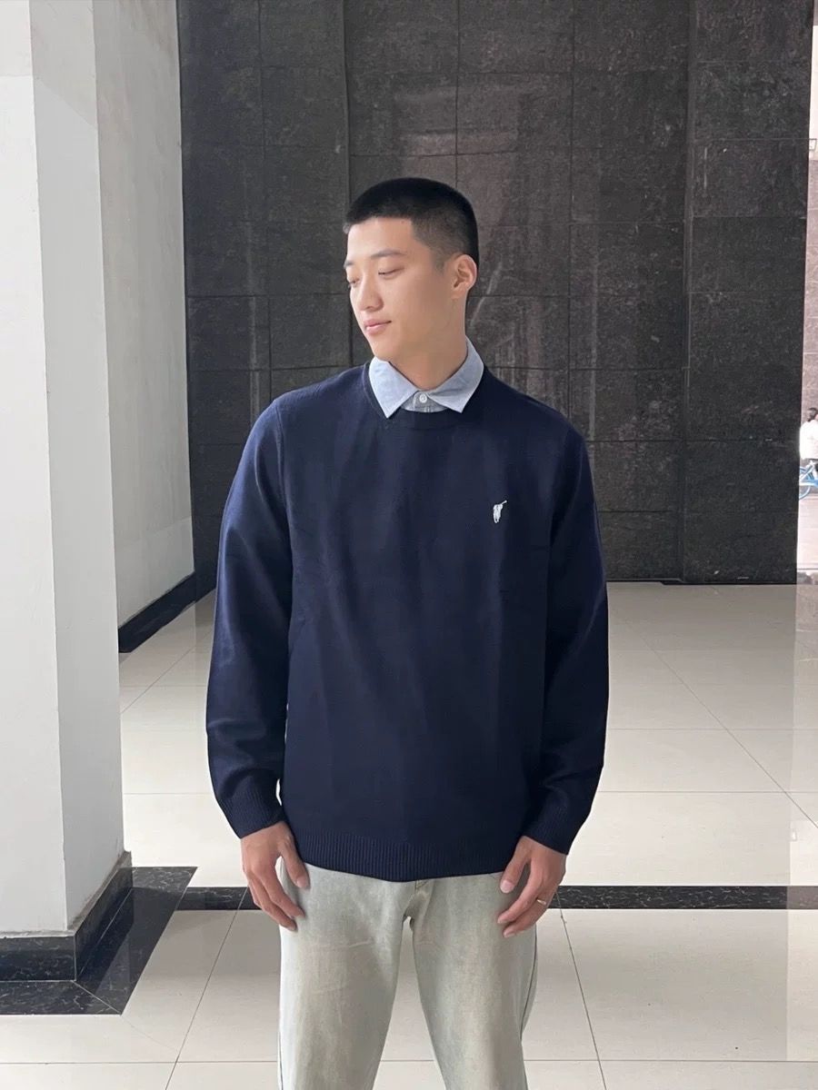 今日份OOTD 上身蓝色羊毛衫 显白的很 又显年轻 男大学生必备的上衣,非常的文艺范~配一个牛仔裤绝了!