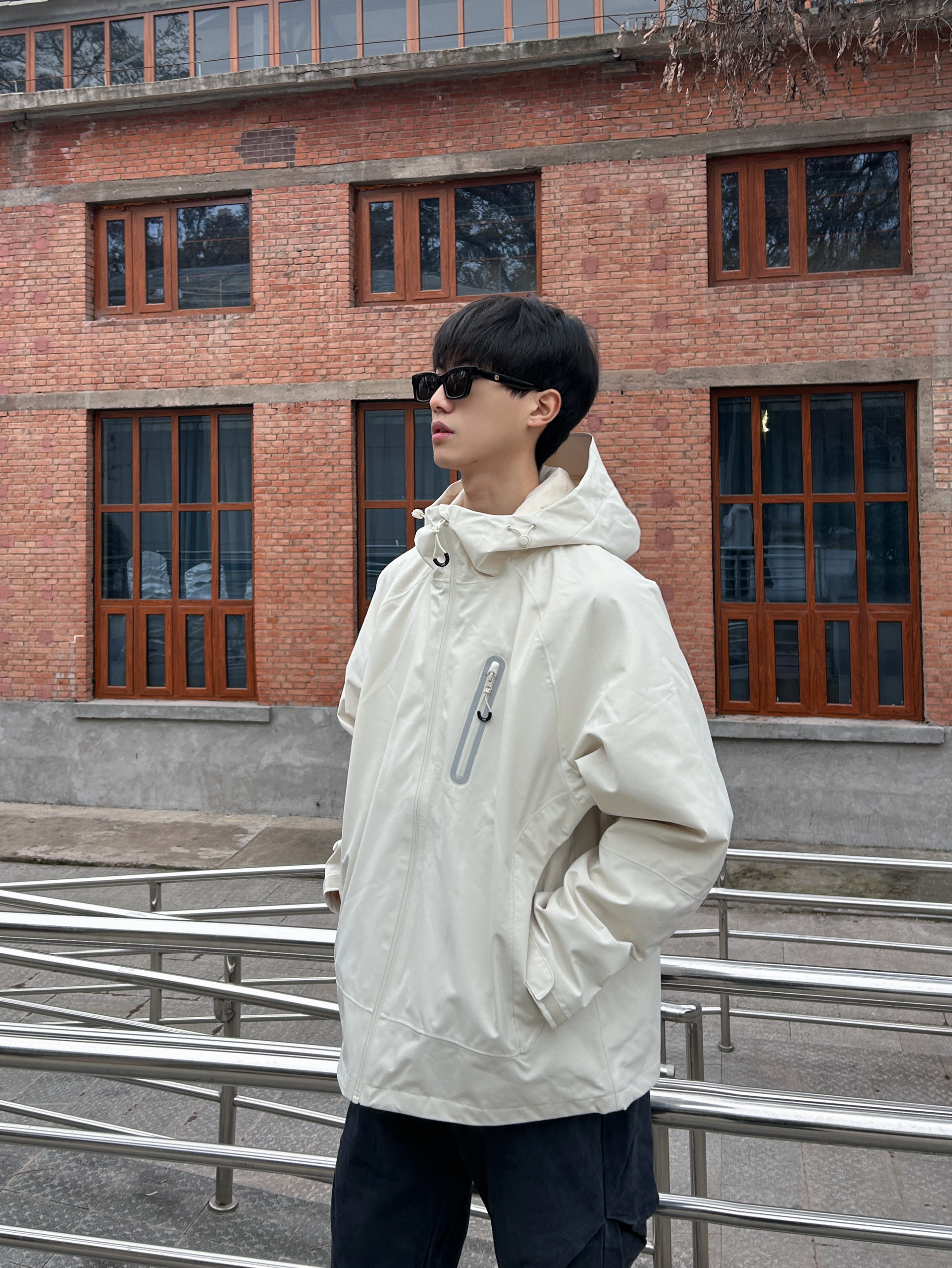 哪怕是严酷的冬天也不能抵挡我们 去不了远方的高山那也可以到户外散散心 穿着一件白色的冲锋衣 穿起来给人又酷又有种清冷感 不得不说冬天还是很适合穿白色的冲锋衣 得这件衣服不论是户外还是日常都很适合穿 偏工装的简约风格设计很百搭 简约但该有的三防属性依旧很顶 加上内胆就可以应对更恶劣的天气了 去掉内搭穿在身上又是一件很不错的外套 衣服上的大口袋也让我可以随便装装装 再搭配一条复古水洗色的工装裤 我很喜...