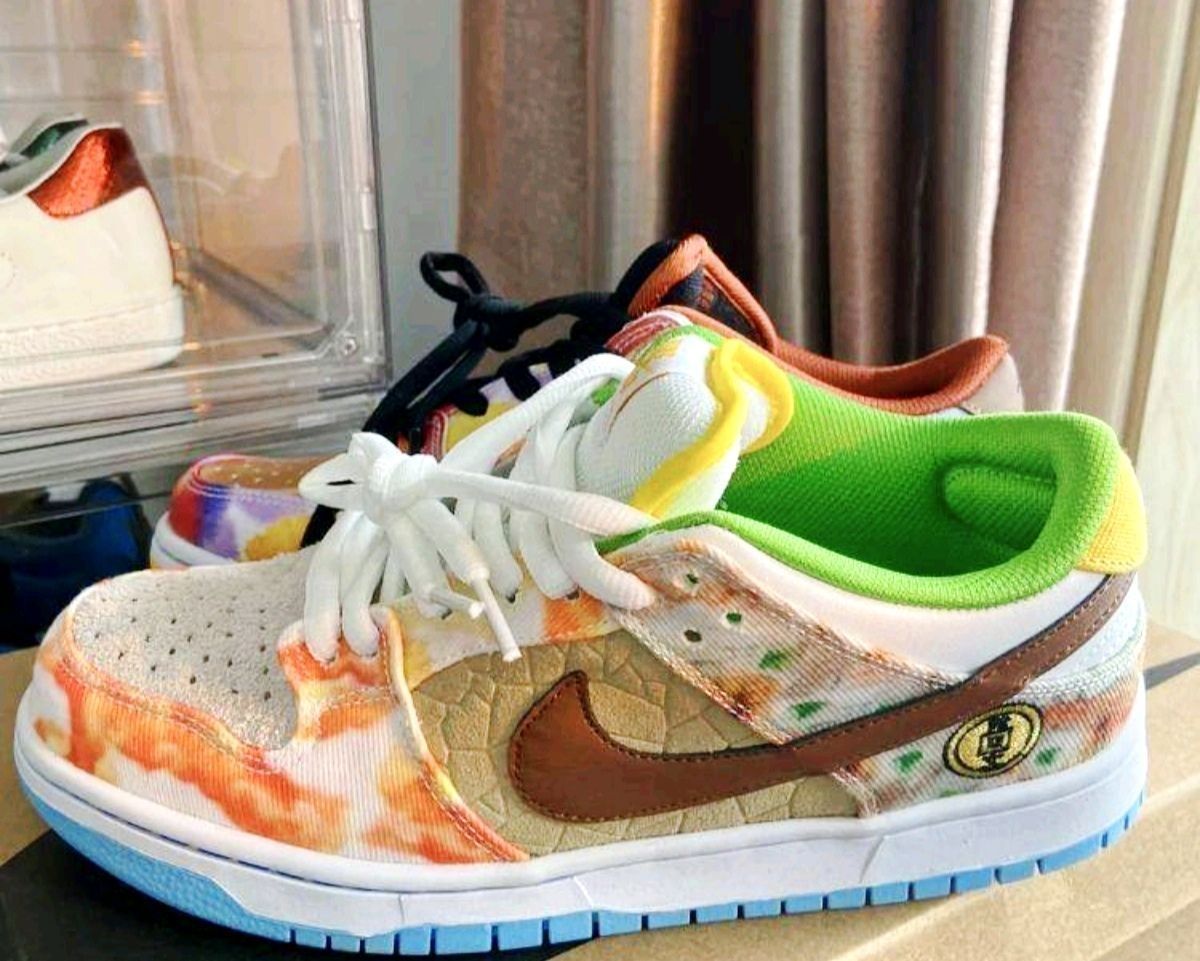 🎊🎊一双设计细节超级多的dunk,鞋盒方面设计灵感源于成 都城市特色火锅的设计灵感,让人一眼就直观的能感受到 设计师的用意。 🐲🐲🐲鞋子本身用各种材质拼接而成,并且每种材质都隐藏着不同城市的美食,北京豆汁、成都火锅、西安羊肉泡馍、上海阳春面、台湾刨冰,细节满满的一双鞋。 鞋头有透气孔,整体的透气性还算不错,加上低帮设计,一年四季都可以穿,我在南方十多度左右的天气,穿双袜子在室外出街也没啥问题。 💞...
