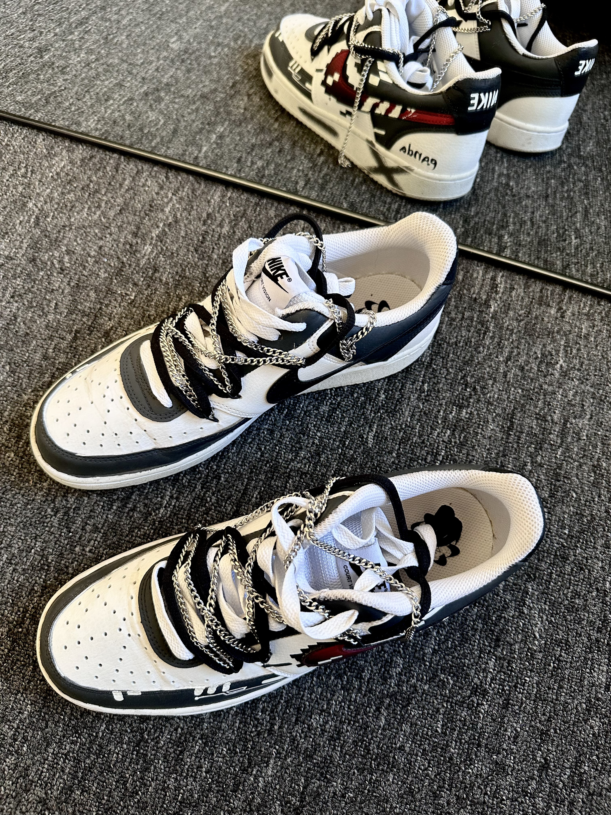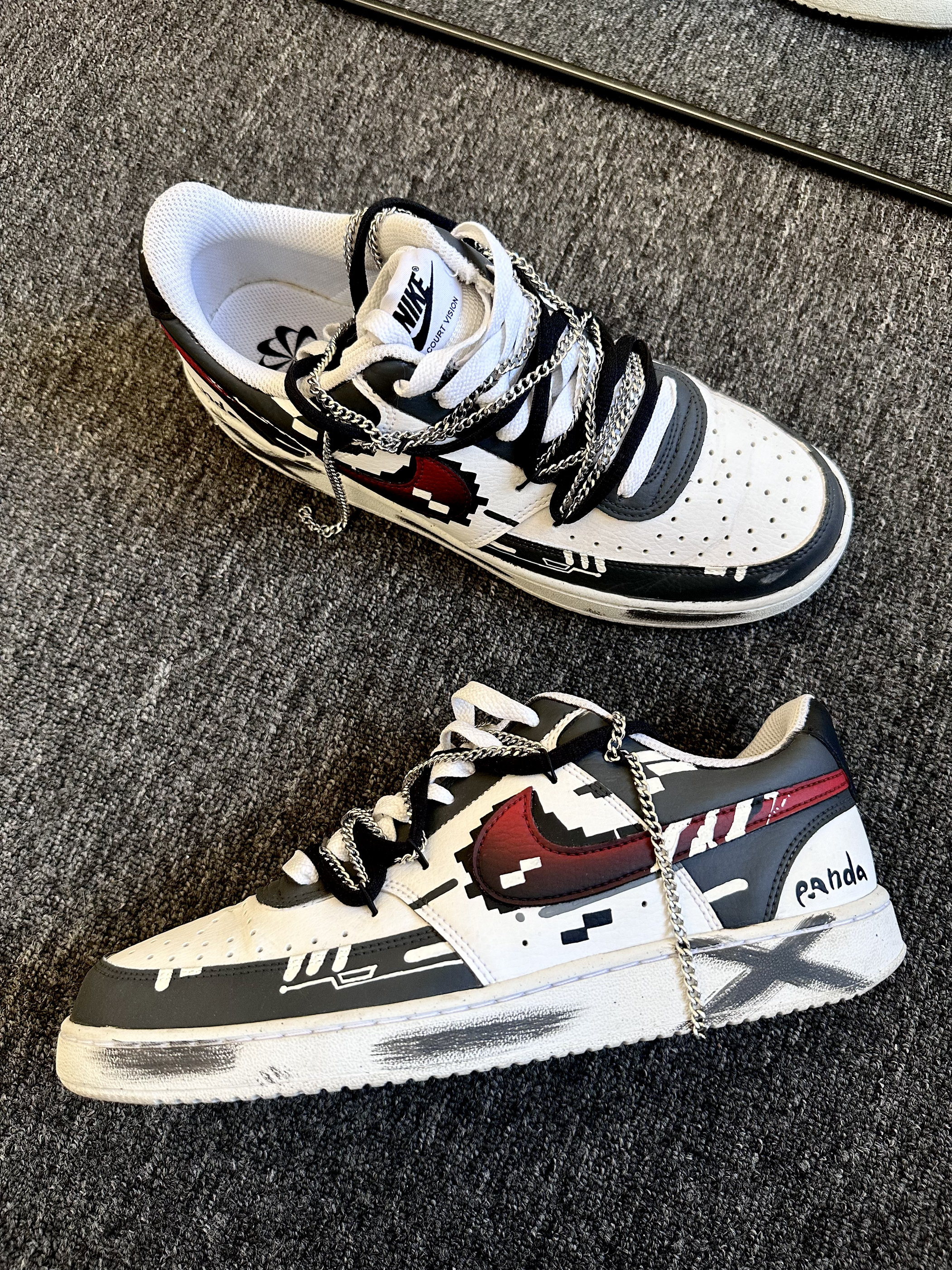 本篇笔记关联了【定制球鞋】 Nike Court Vision 1 板鞋 防水美式简约防滑减震复古 男款/赛博竹林 等商品,为用户提供真实的使用体验和购买参考。