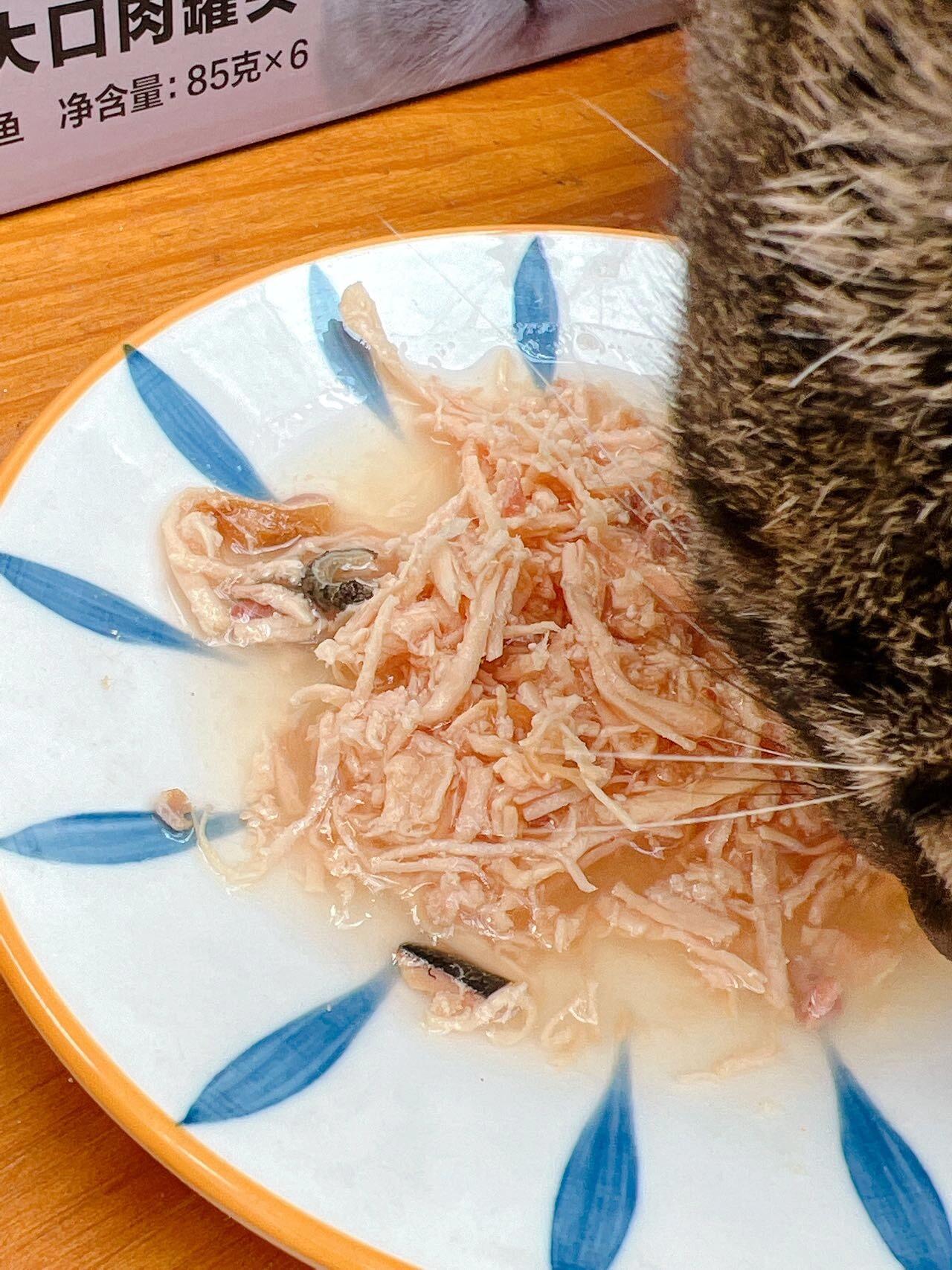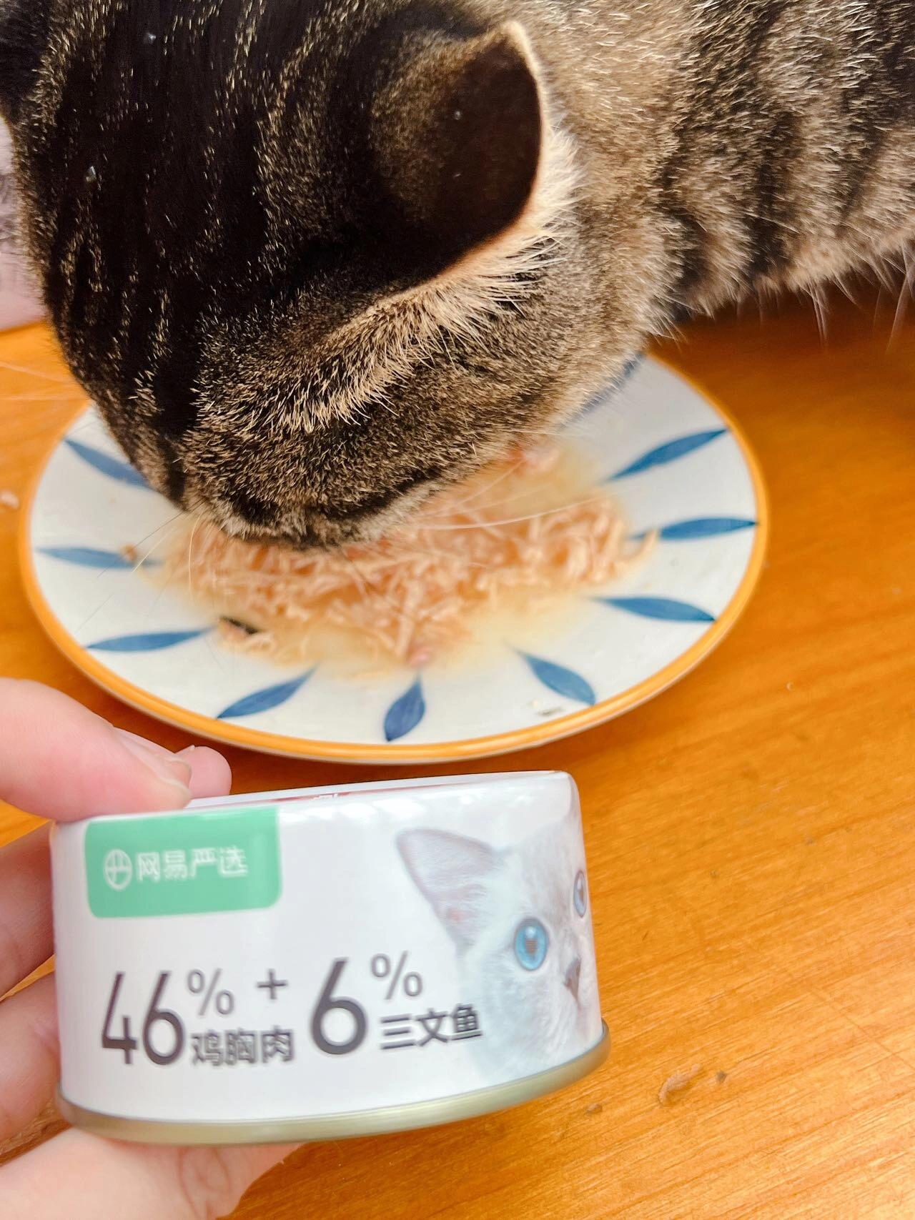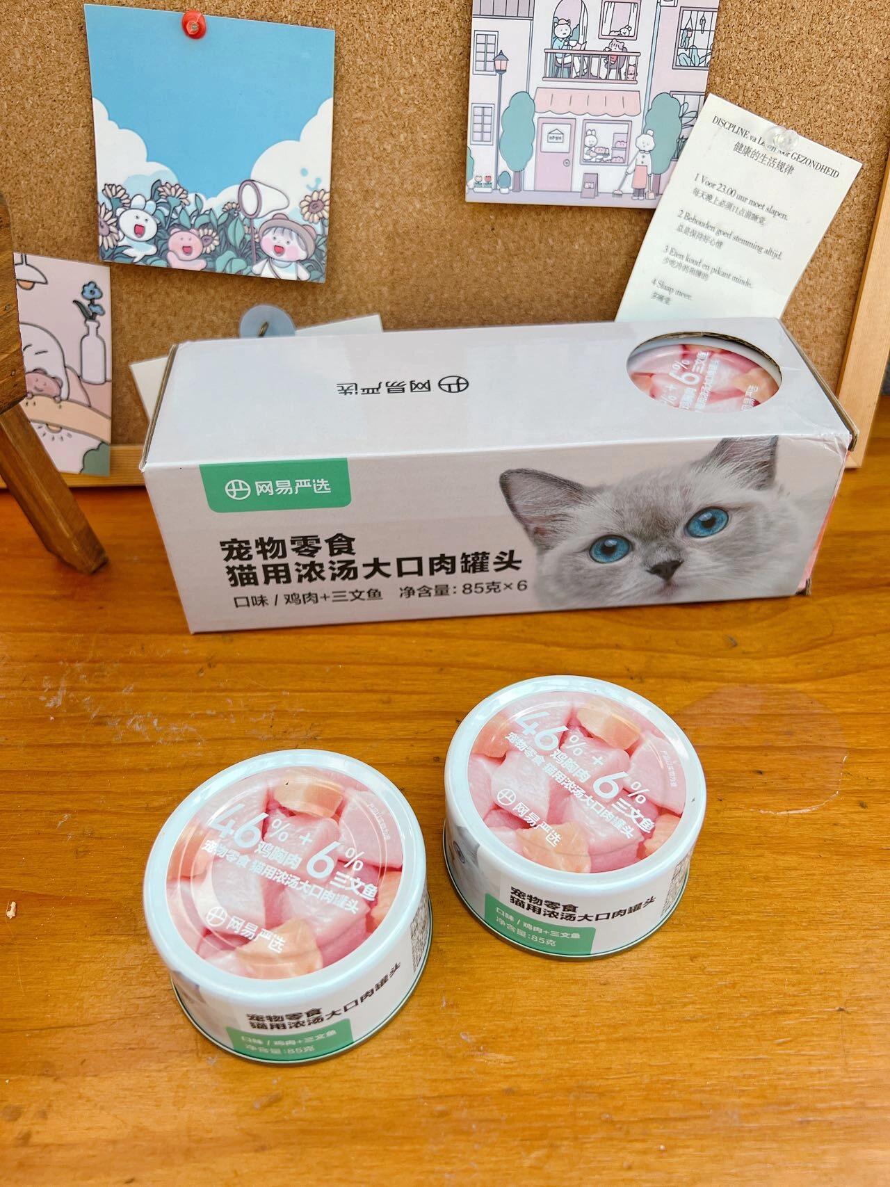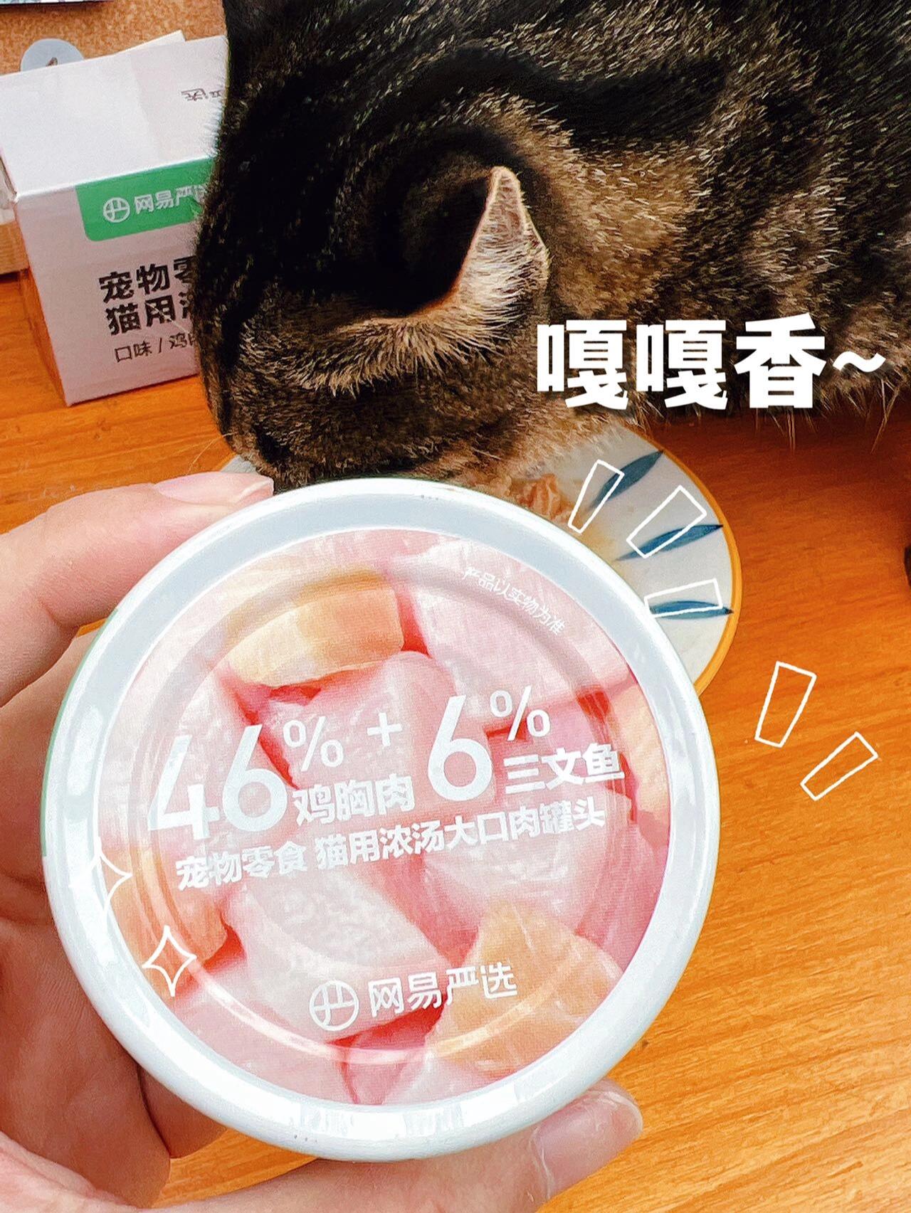 家里猫咪很挑食 没办法只能用罐头给它补充营养了 这次买的网易严选浓汤大口肉罐头真的超爱吃 46%鸡胸肉+6%三文鱼 肉眼可见的超多肉肉 一开罐头就跑过来了 含水量很高,还可以补充水分 再也不用担心猫猫不爱喝水了! (图源网络侵删)