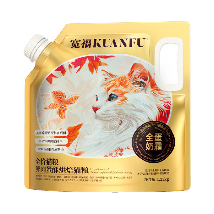 本篇笔记关联了Kfcat/宽福 全阶全价段全蛋奶霜 烘焙猫粮 美毛亮毛呵护肠胃 1.25kg等商品,为用户提供真实的使用体验和购买参考。